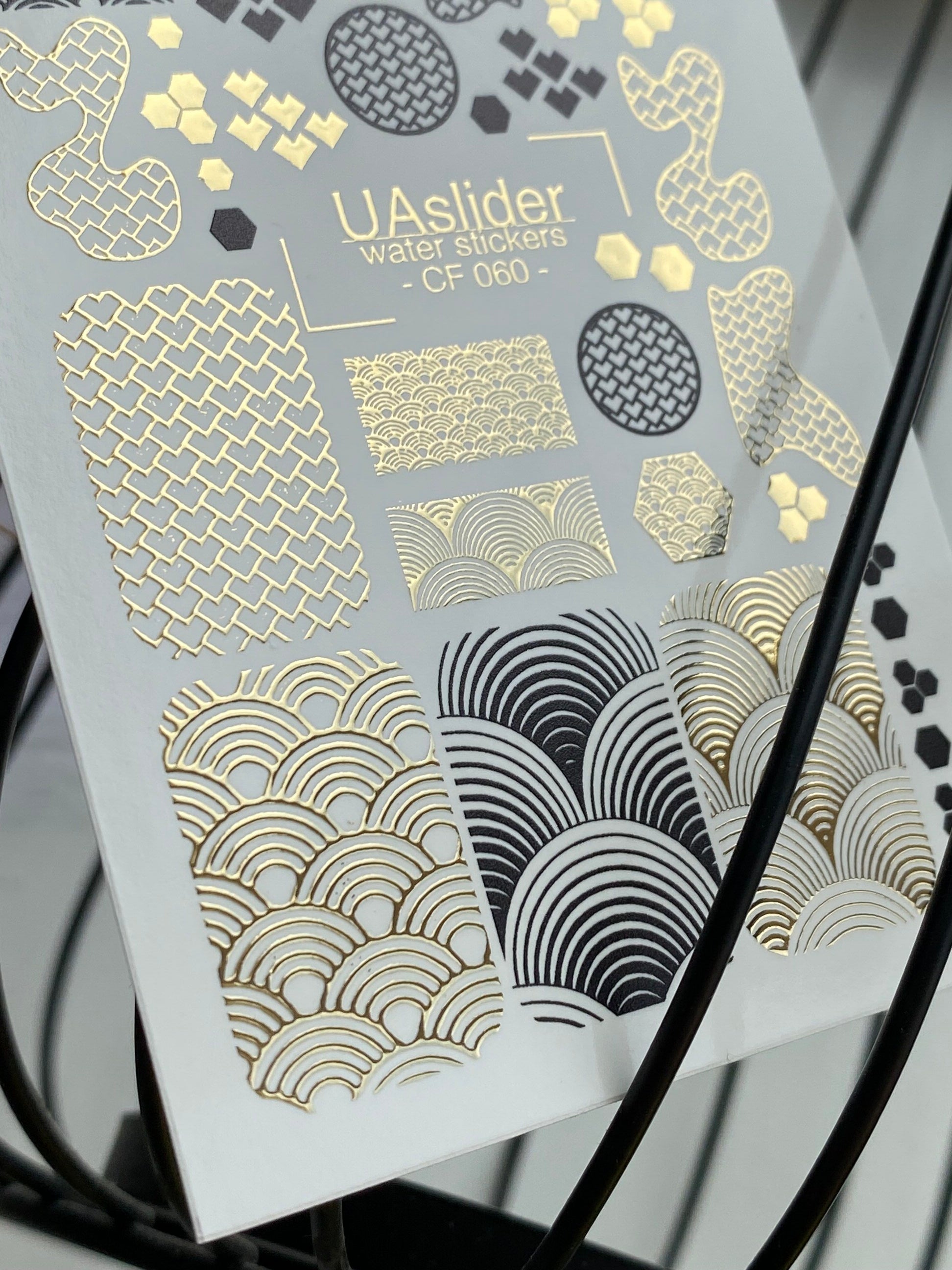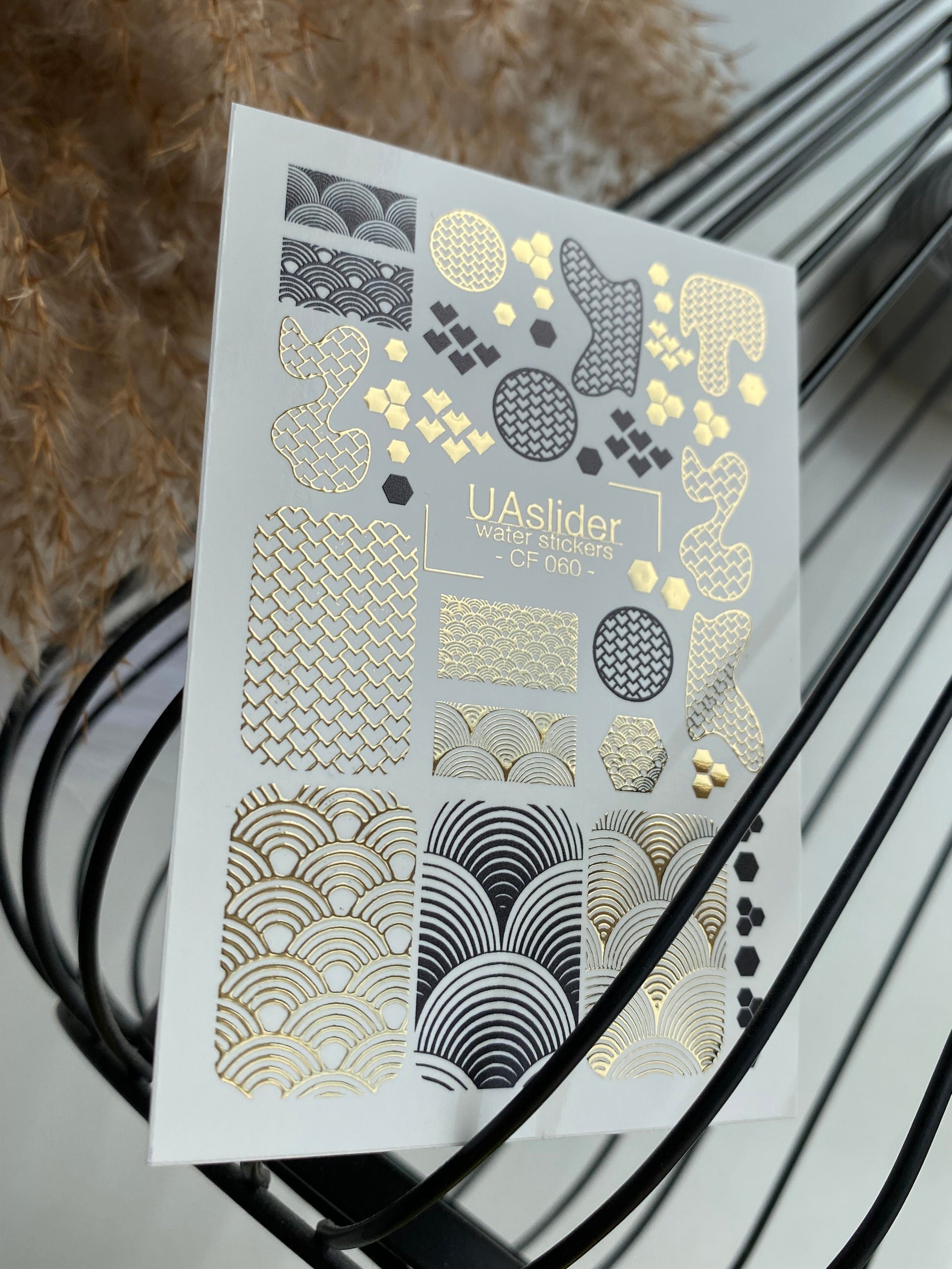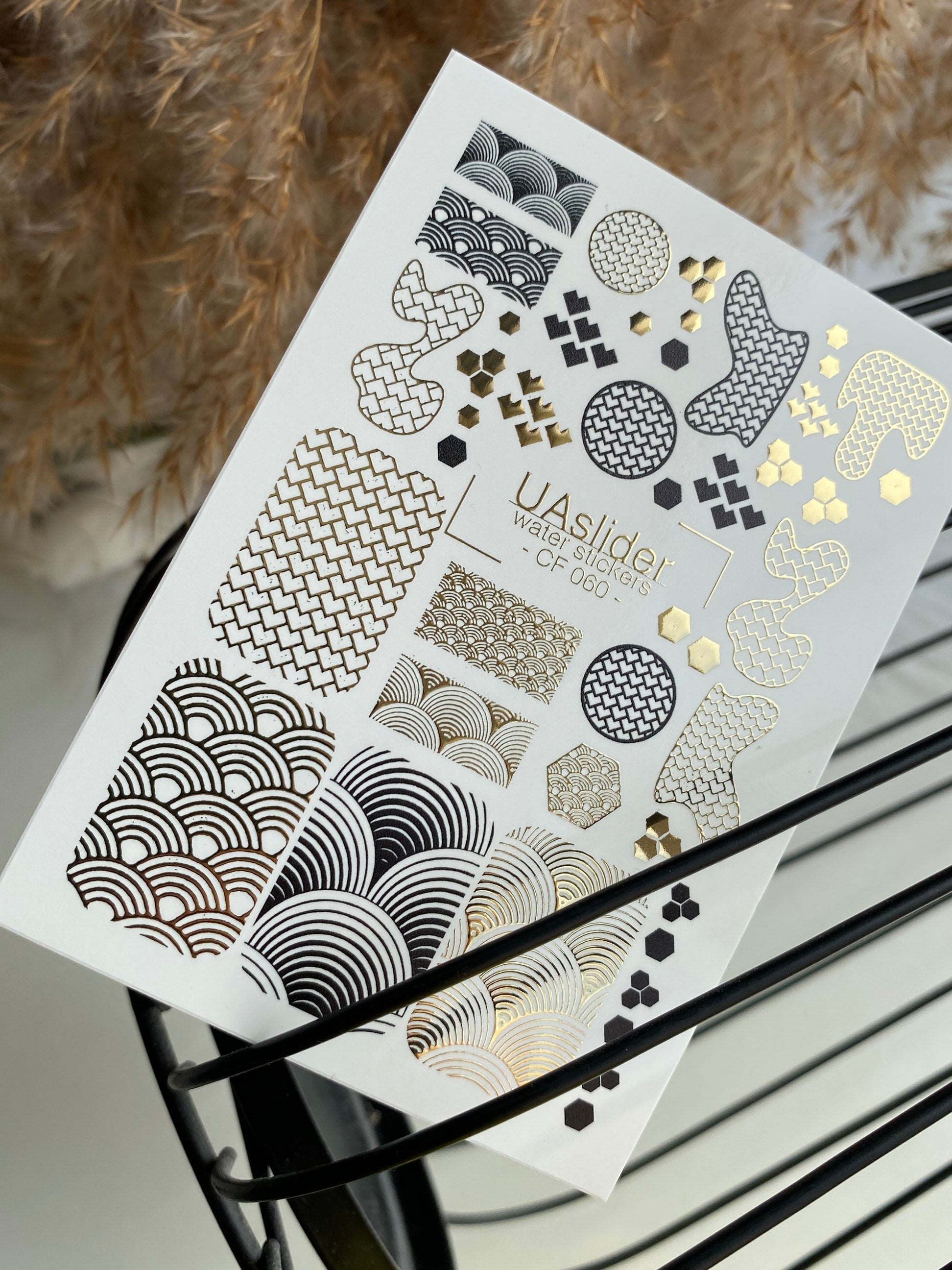 Naklejka wodna na paznokcie CF-060 | Geometryczne naklejki wodne na paznokcie | Japońskie fale i wzory z złotą foliąCF_060