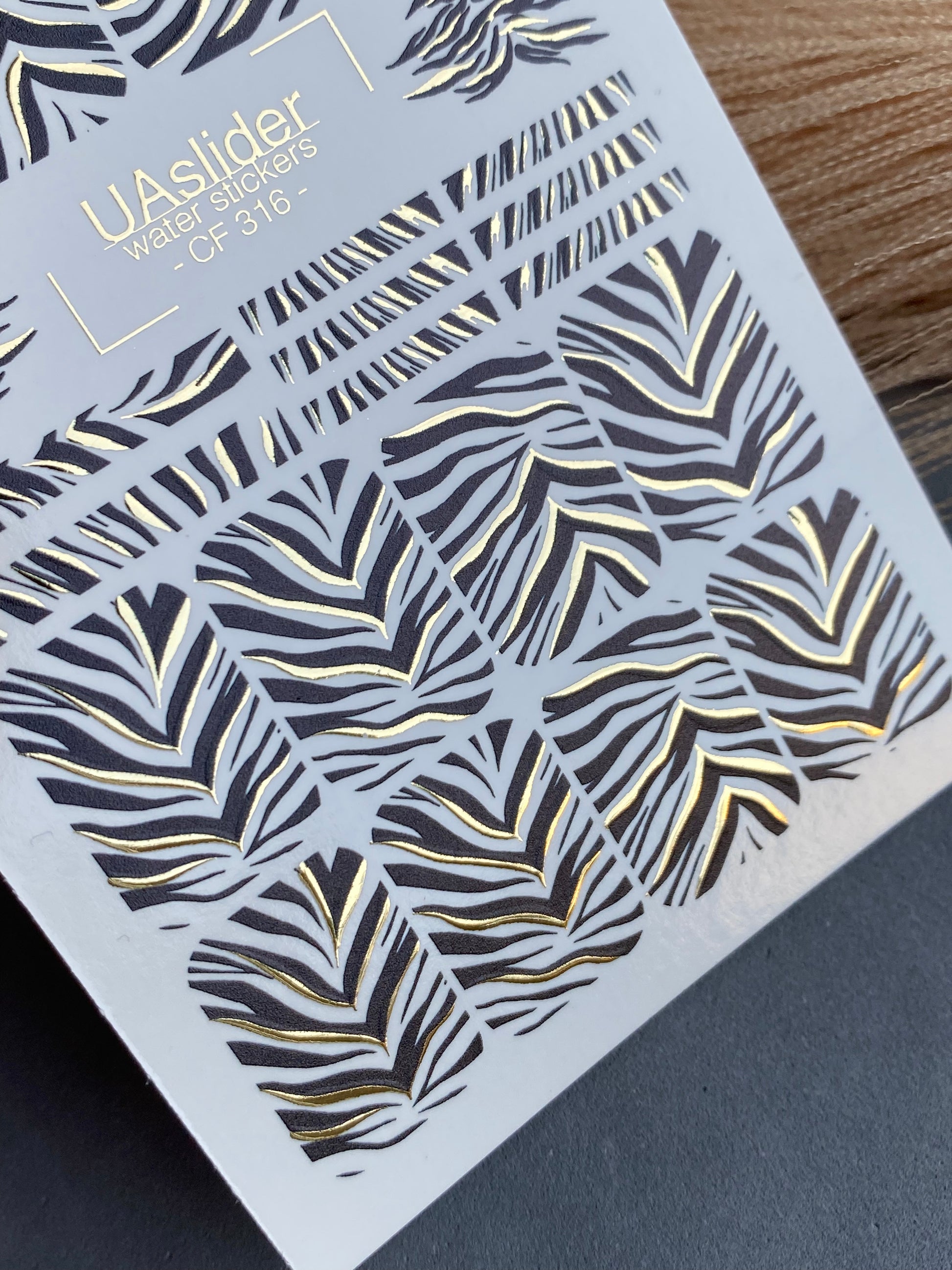 Naklejki wodne na paznokcie CF-316 | Naklejki wodne na paznokcie w wzór zebry | Czarno-złote naklejki w zwierzęcy wzór