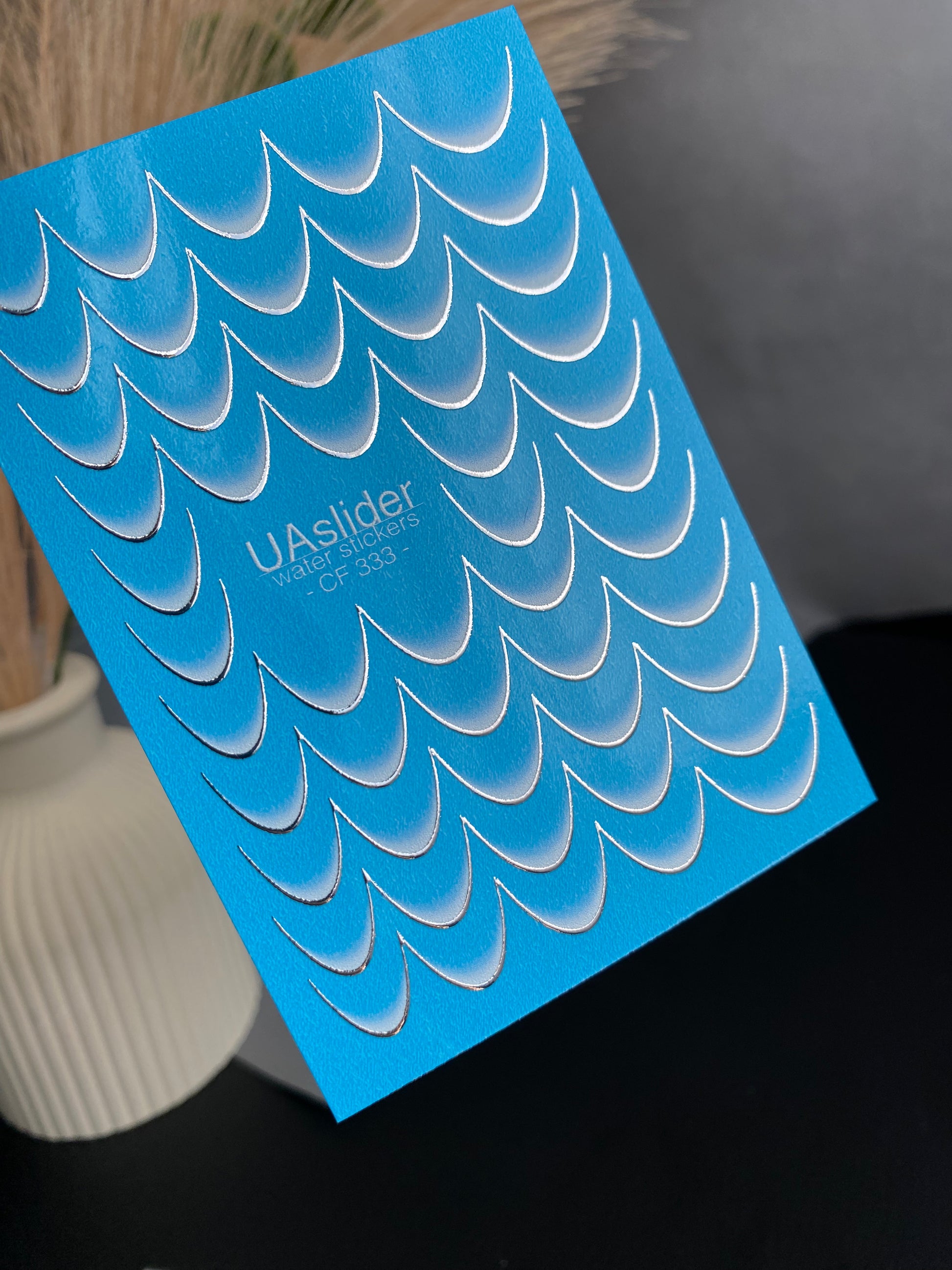 Te wodne naklejki na paznokcie aktywują się w wodzie — wystarczy namoczyć, aby je nałożyć. Wytnij wybrany element przed namoczeniem. Wzór łatwo oddziela się w wodzie i gładko przenosi na powierzchnię paznokcia. Dla łatwiejszej aplikacji można użyć ciepłej wody.