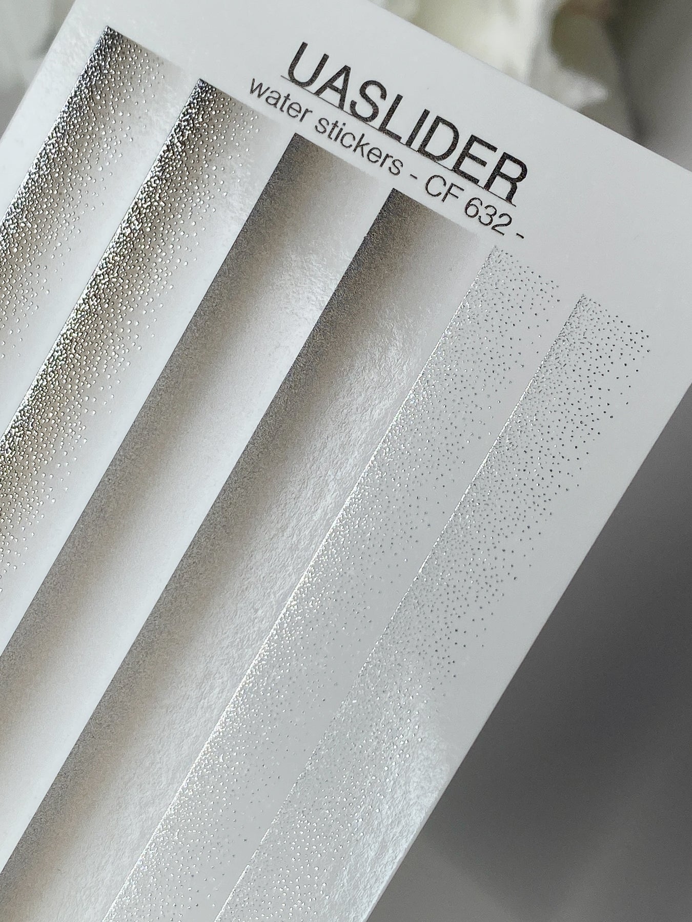 Naklejka na paznokcie CF-632 | Gradientowe naklejki wodne na paznokcie | Biało-srebrne ombre z brokatemCF_632
