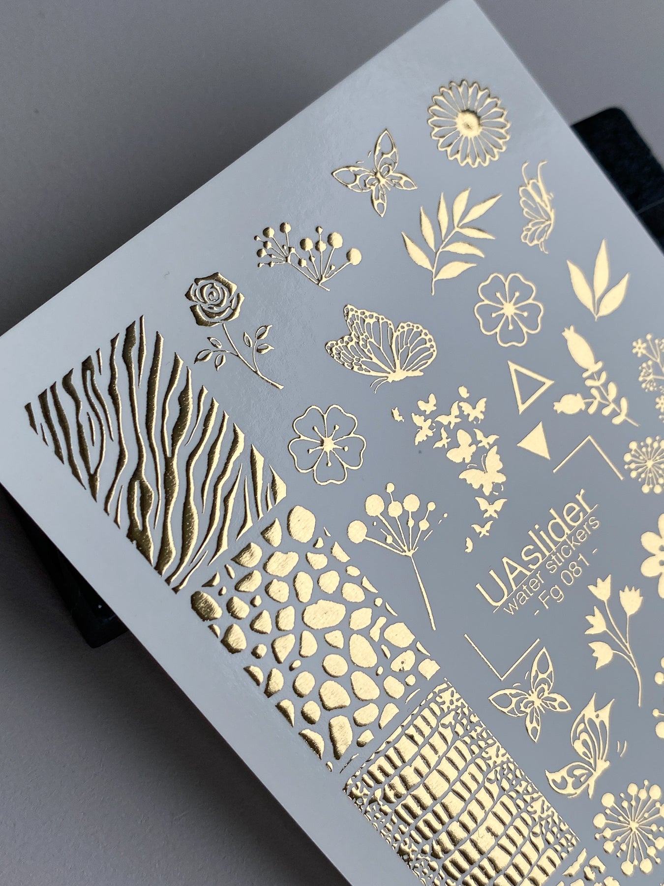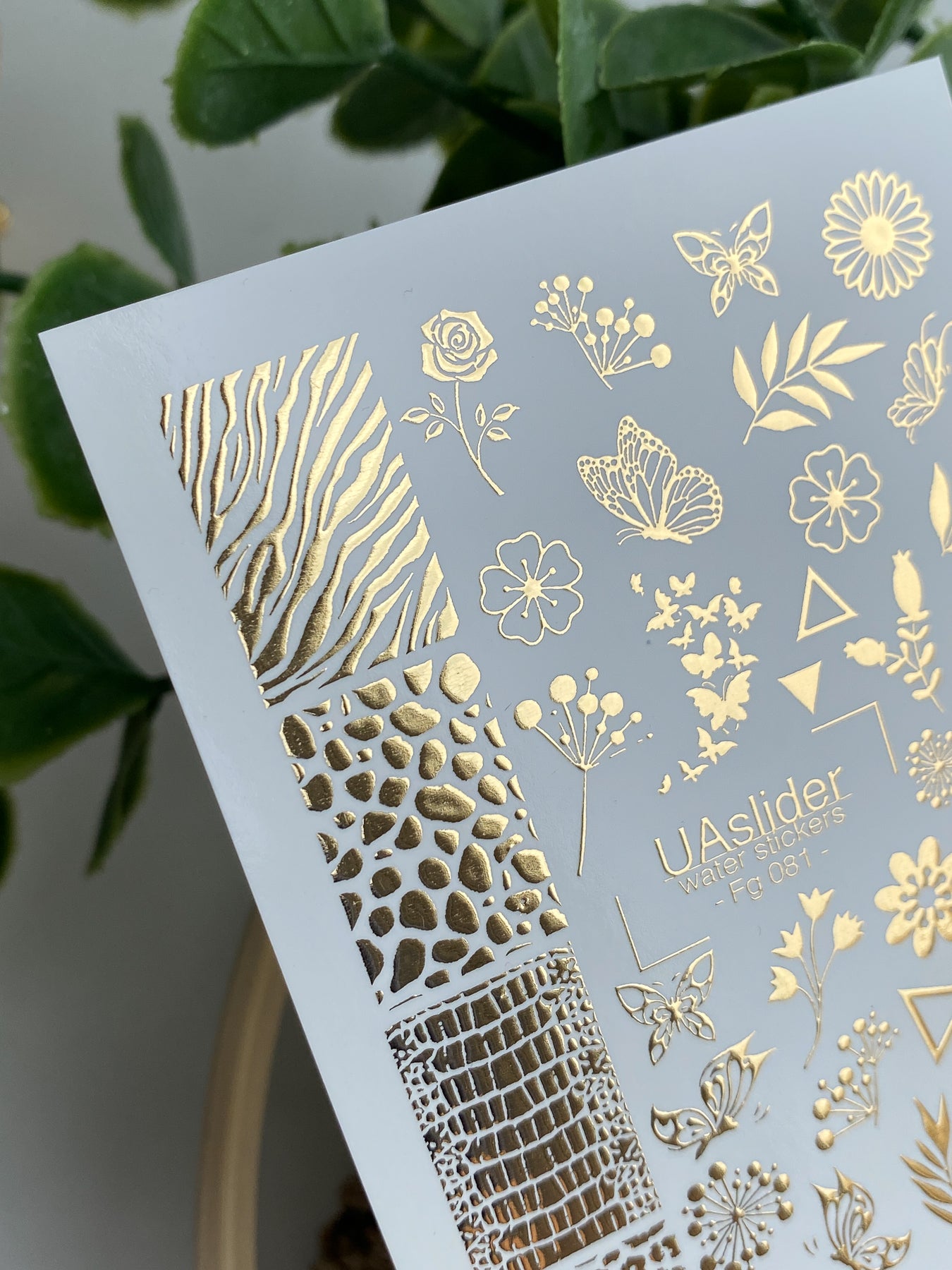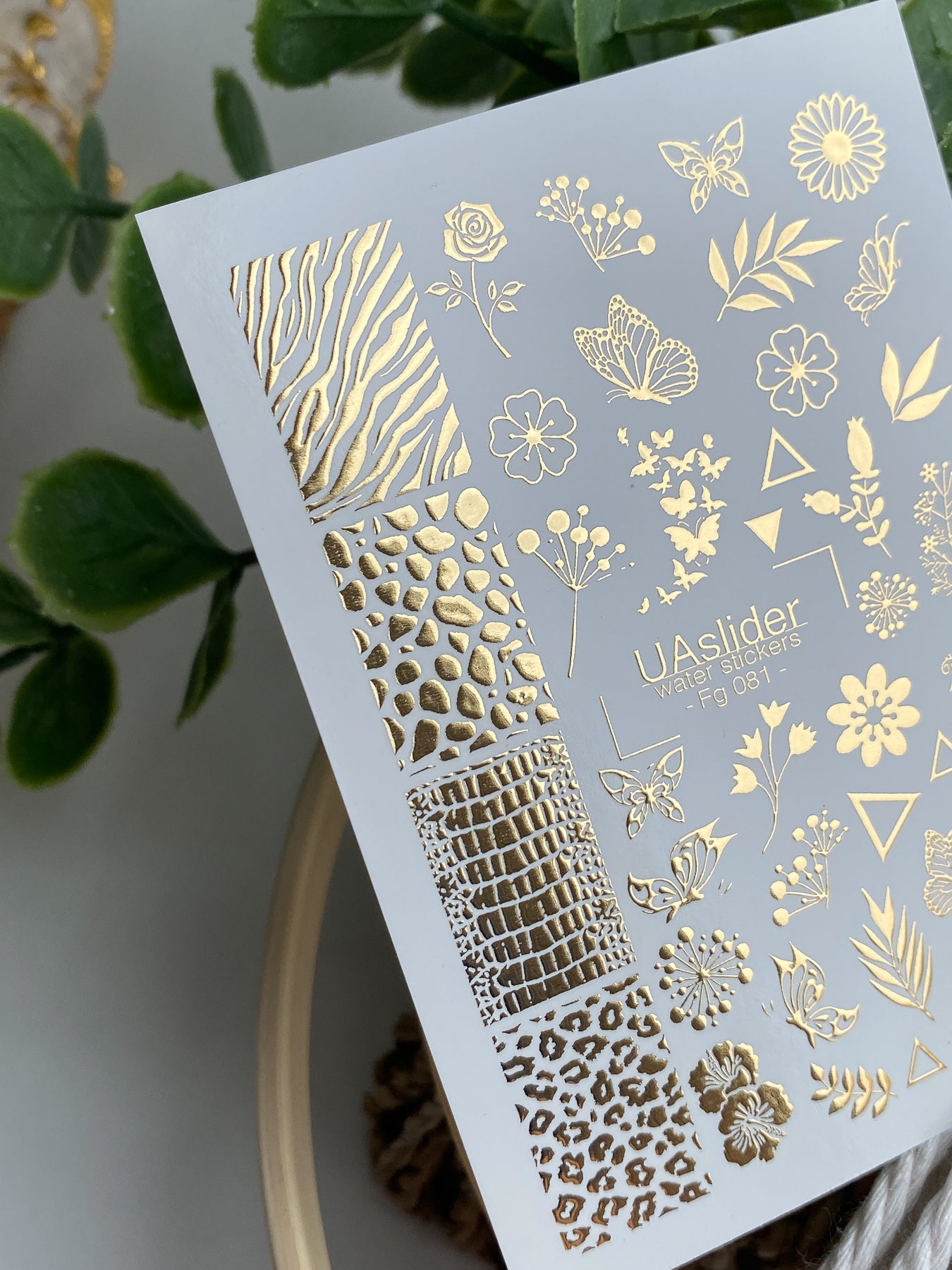 Naklejki wodne na paznokcie Fg-081 | Złote folie do naklejek wodnych na paznokcie | Mieszanka kwiatowych i zwierzęcych wzorówFg_081