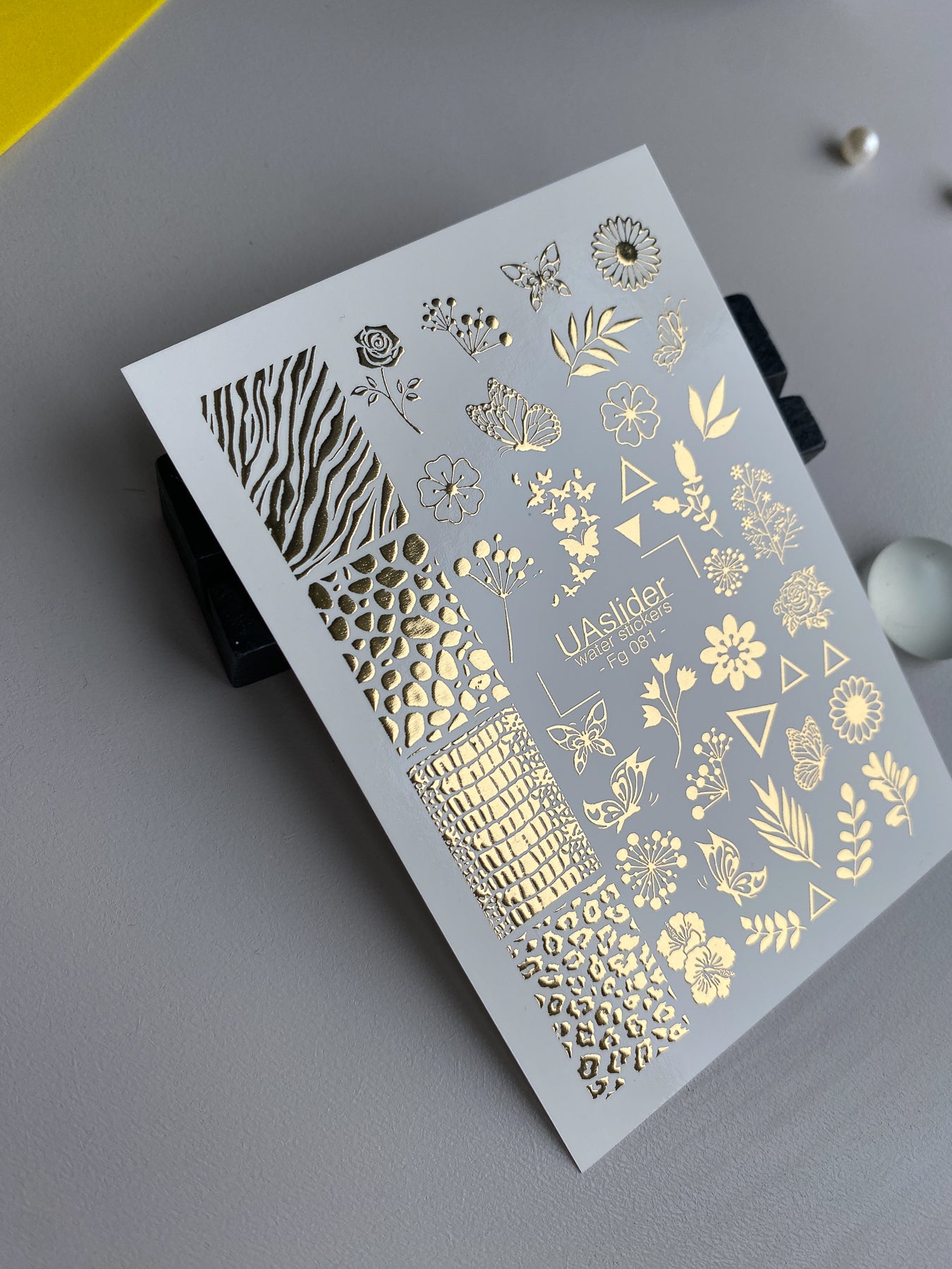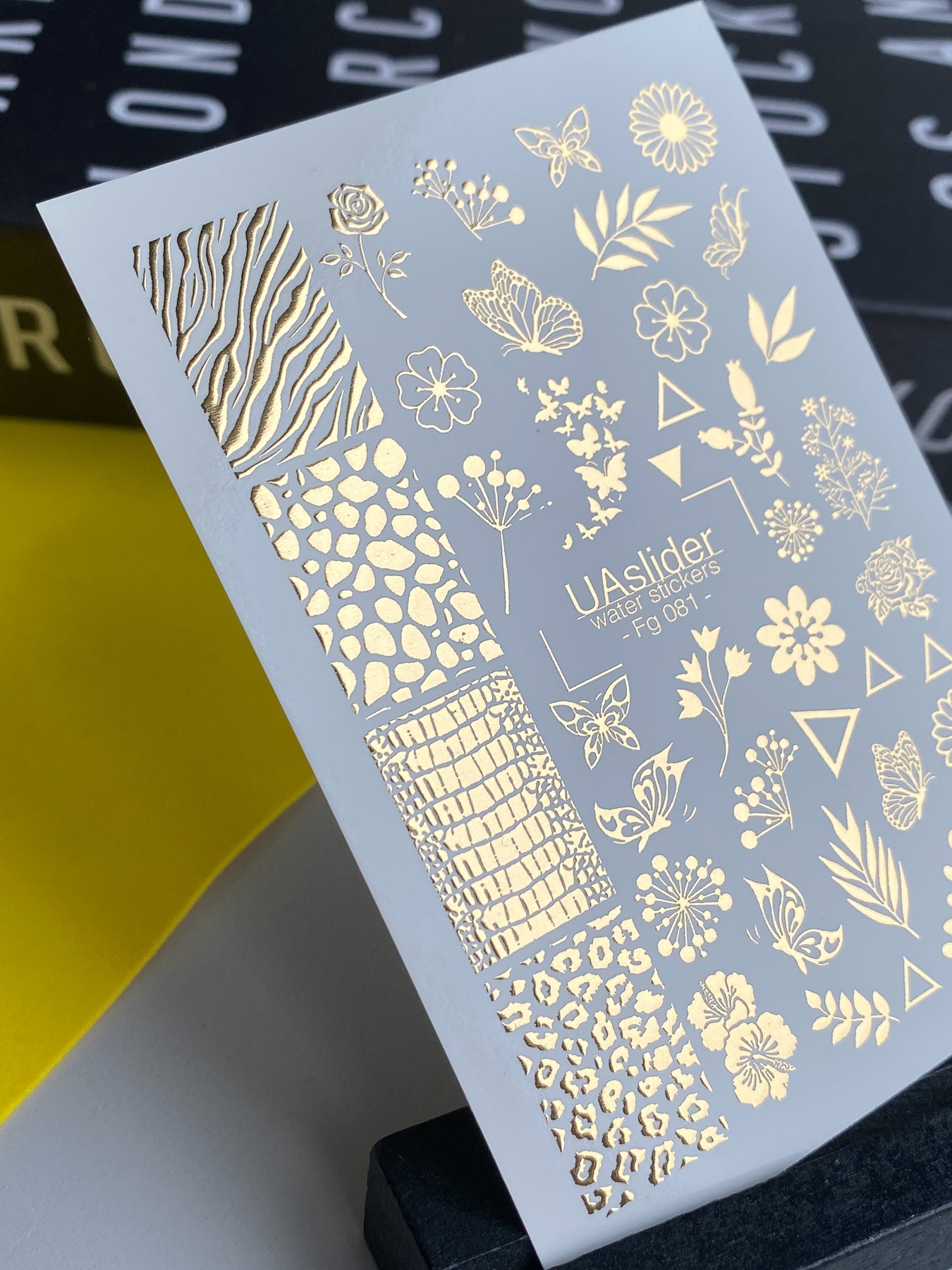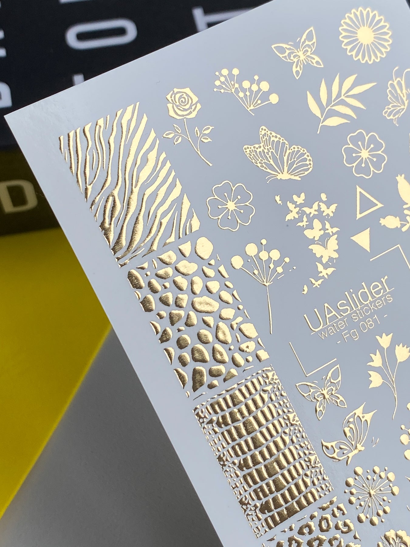 Naklejki wodne na paznokcie Fg-081 | Złote folie do naklejek wodnych na paznokcie | Mieszanka kwiatowych i zwierzęcych wzorówFg_081