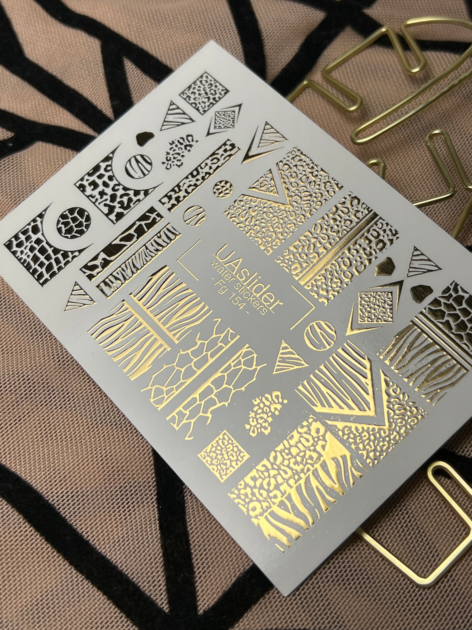 Naklejki na paznokcie wodne Fg-154 | Złote folie do naklejek wodnych na paznokcie | Wzory zwierzęce i geometryczneFg_154
