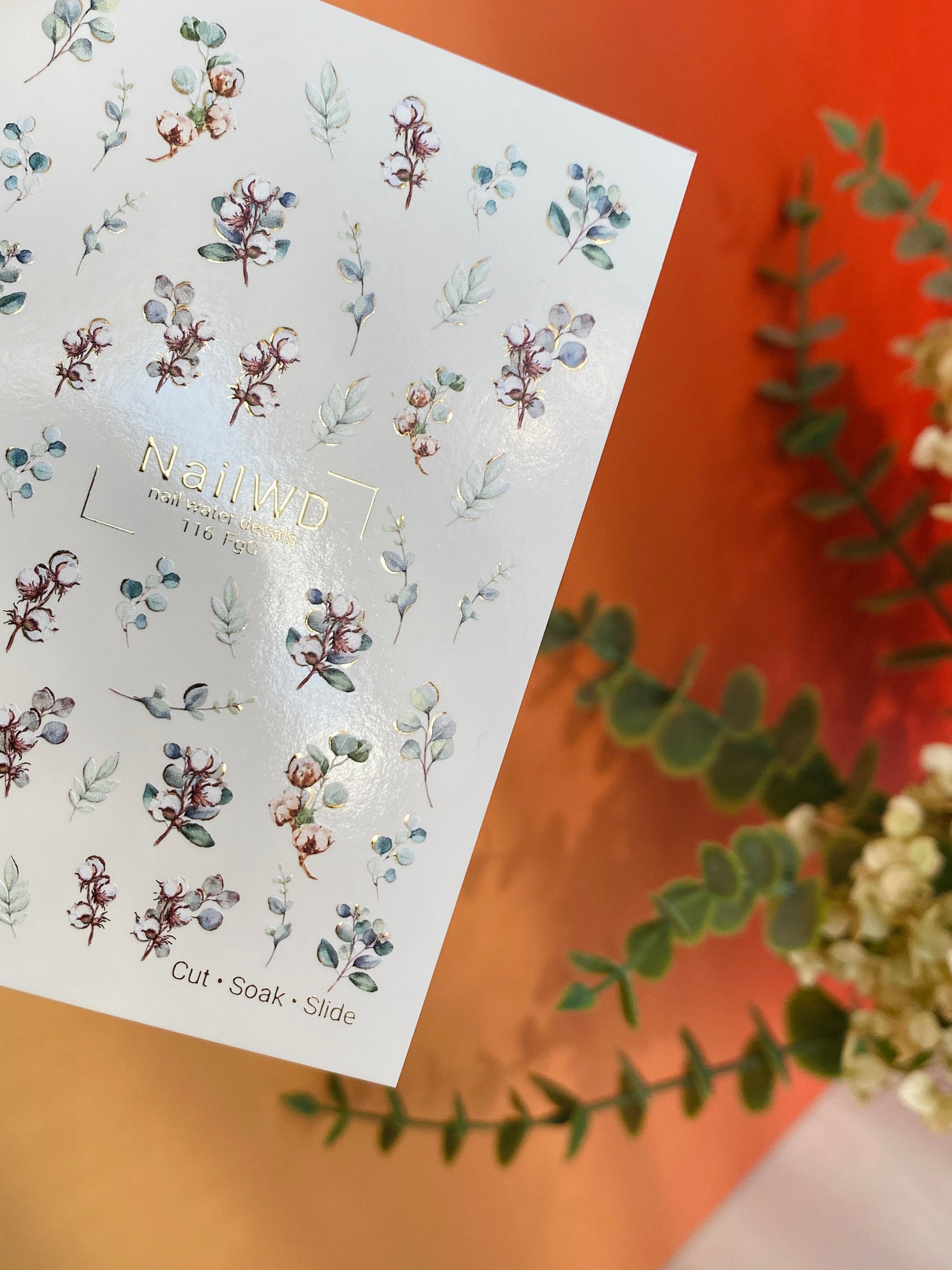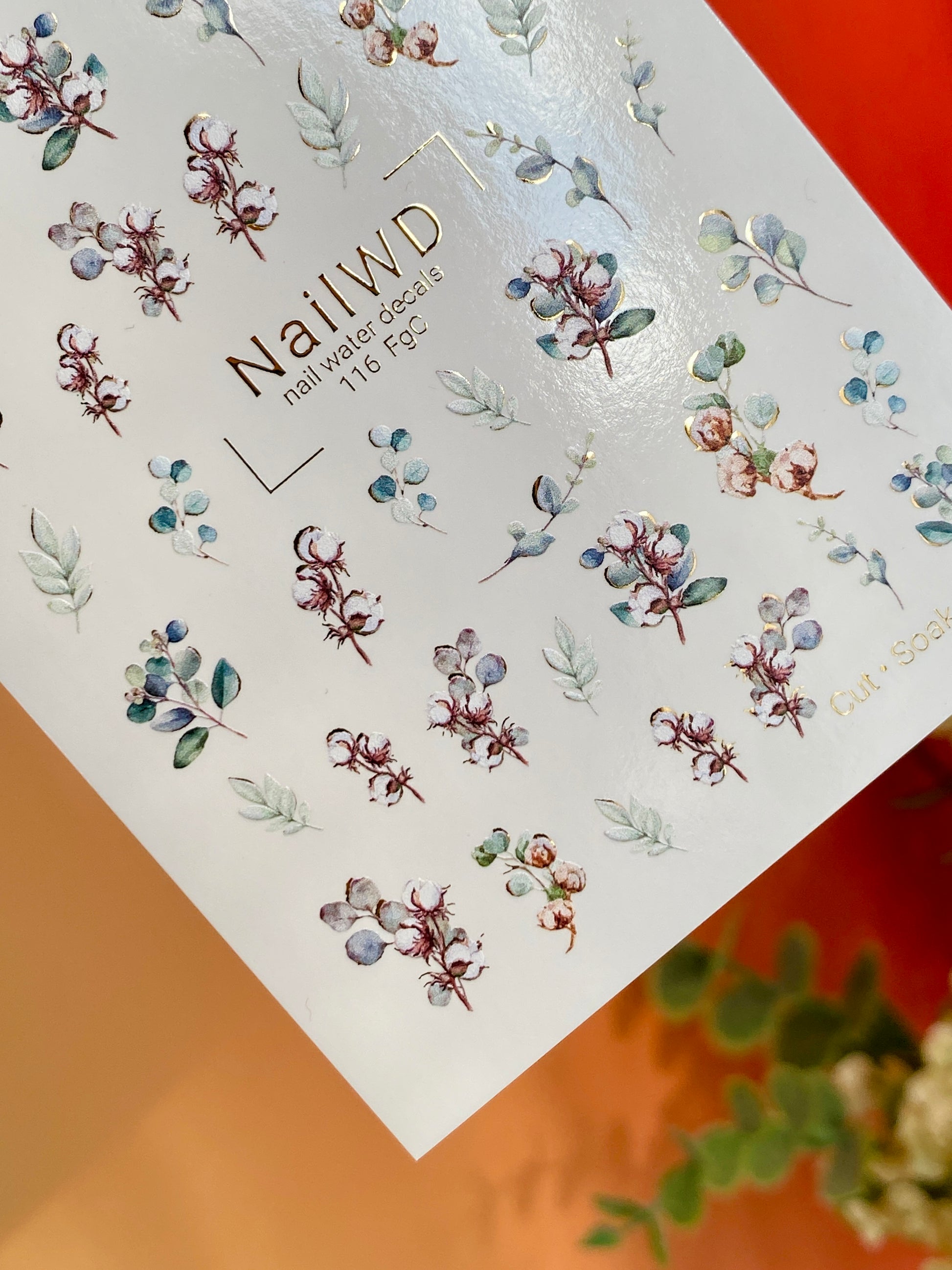 Nail Water Decal 116 NailWD | Water Slide Nail Decals Cotton and Eucalyptus | Botanical Nail Art