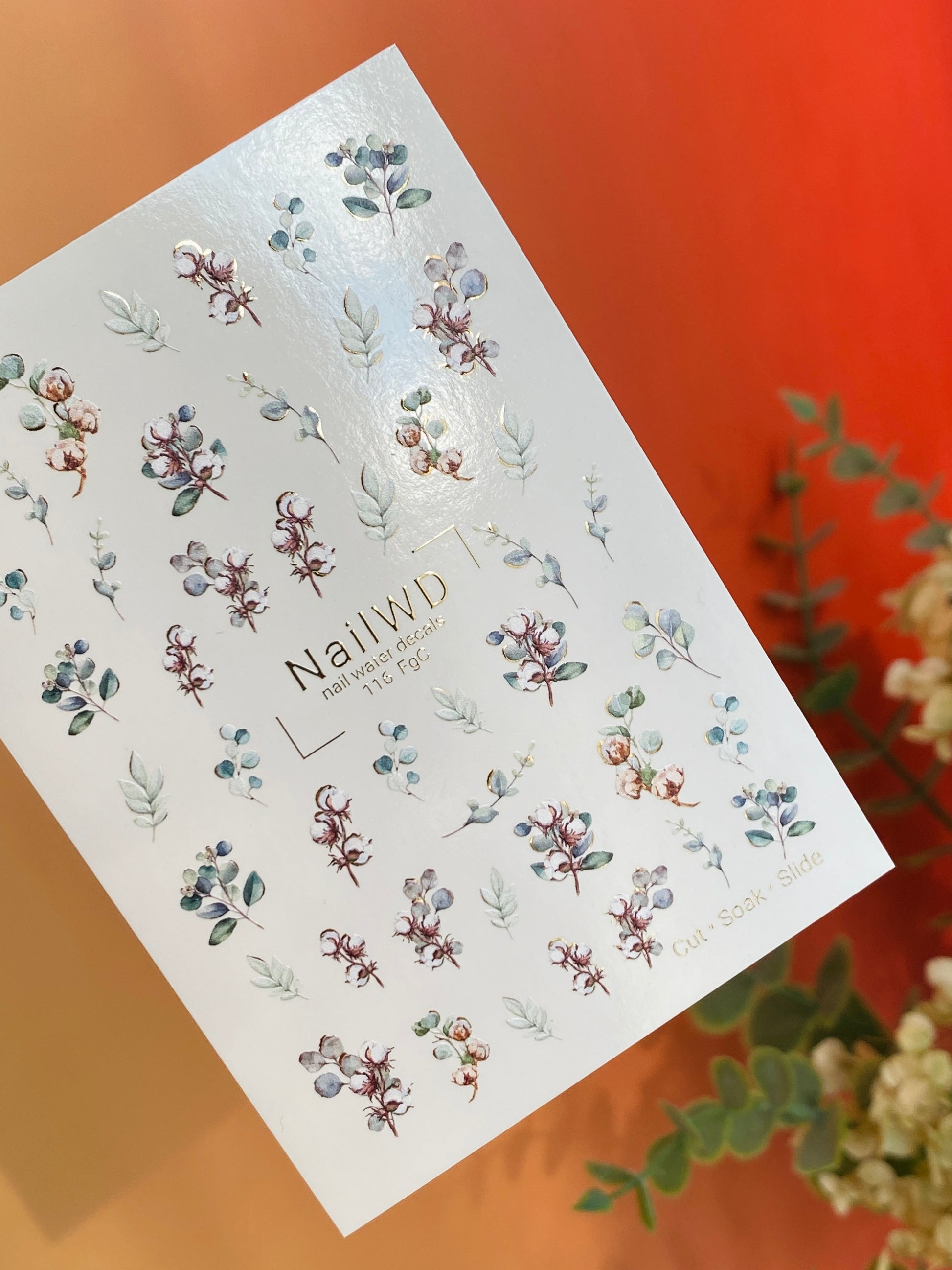 Nail Water Decal 116 NailWD | Water Slide Nail Decals Cotton and Eucalyptus | Botanical Nail Art0116_FgC
