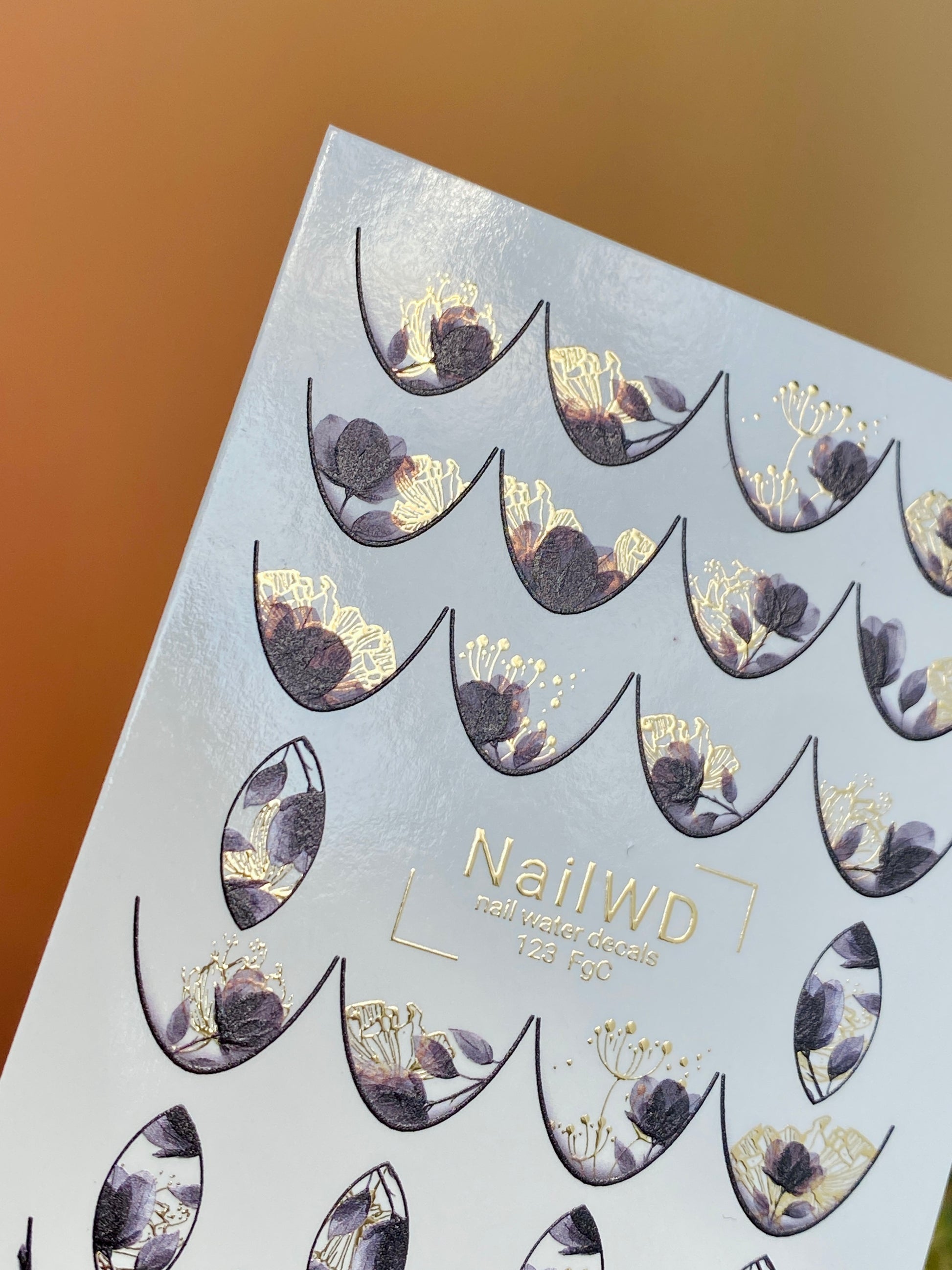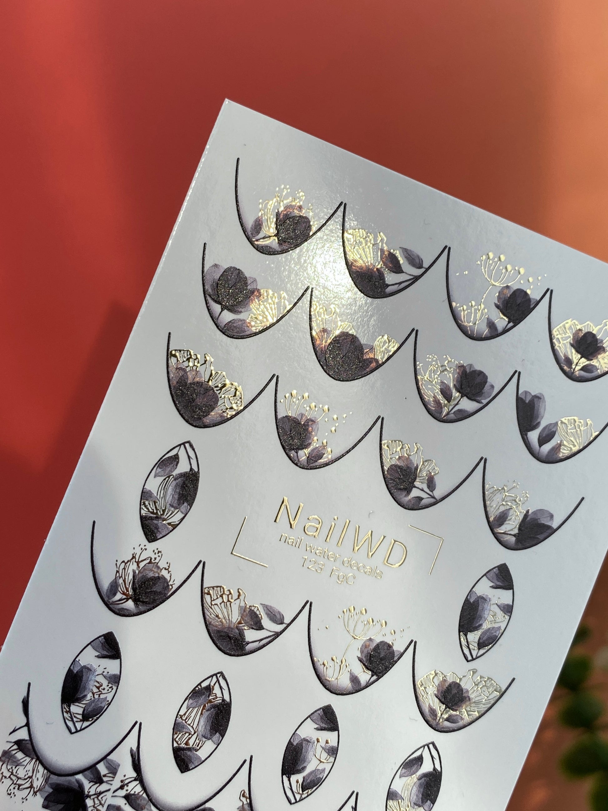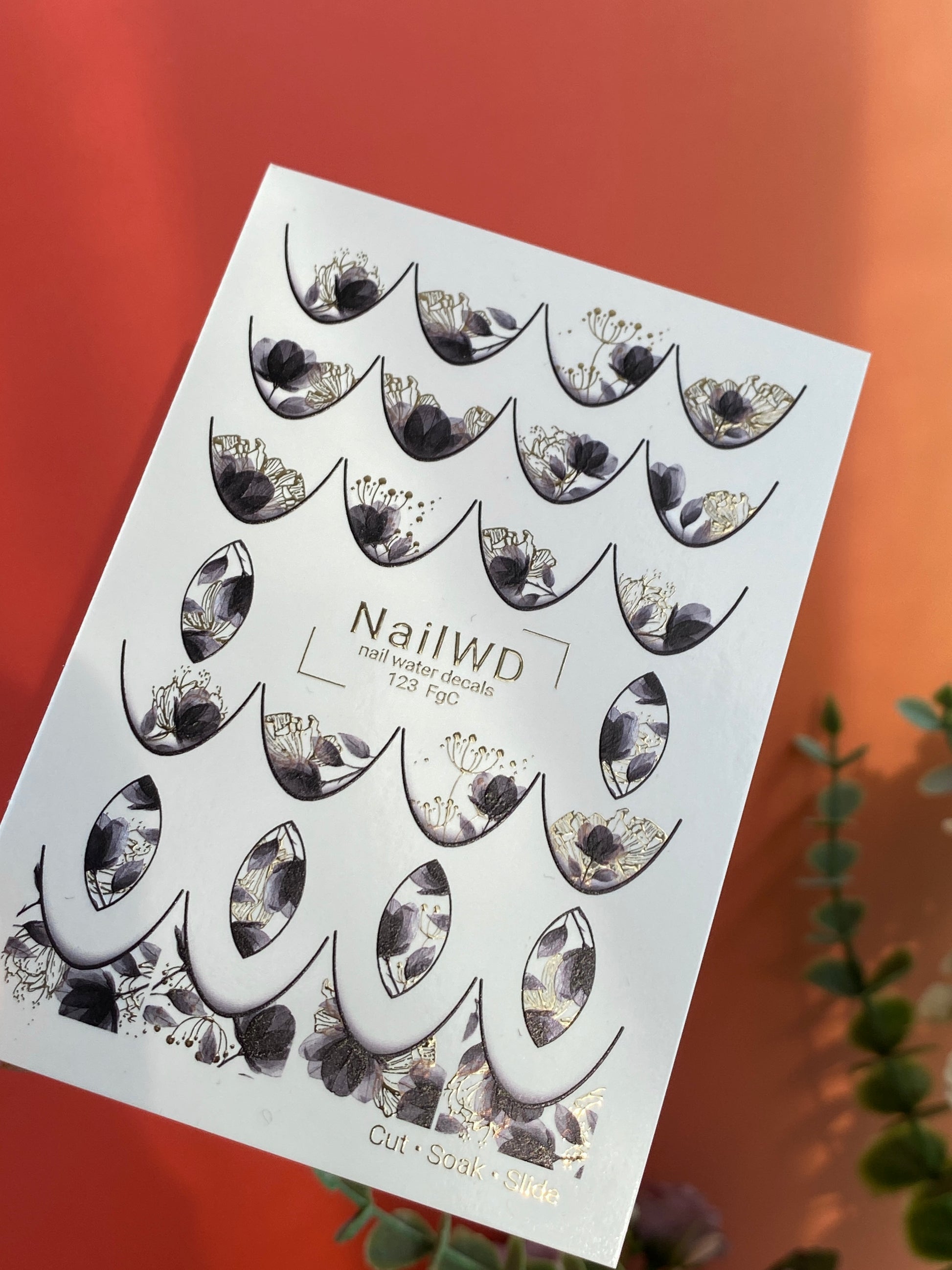 Nail Water Decal 123 NailWD | Water Slide Nail Decals Floral French | Black & Gold Botanical Design