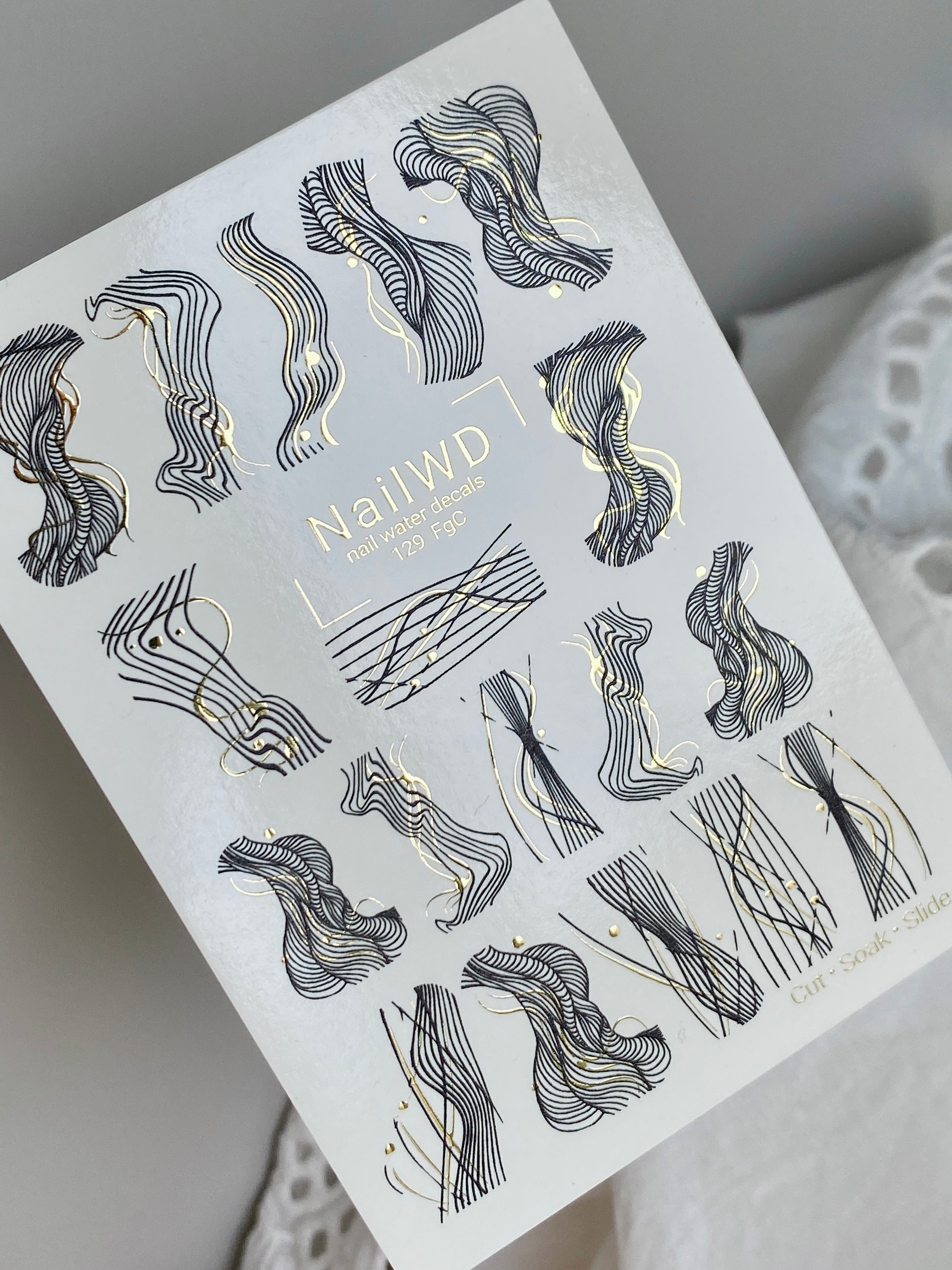 Nail Water Decal 179 Nail WD | Water Slide Nail Decals Abstract Black & Gold Lines | Nail Water Decals Minimalist Modern Art0179_FgC