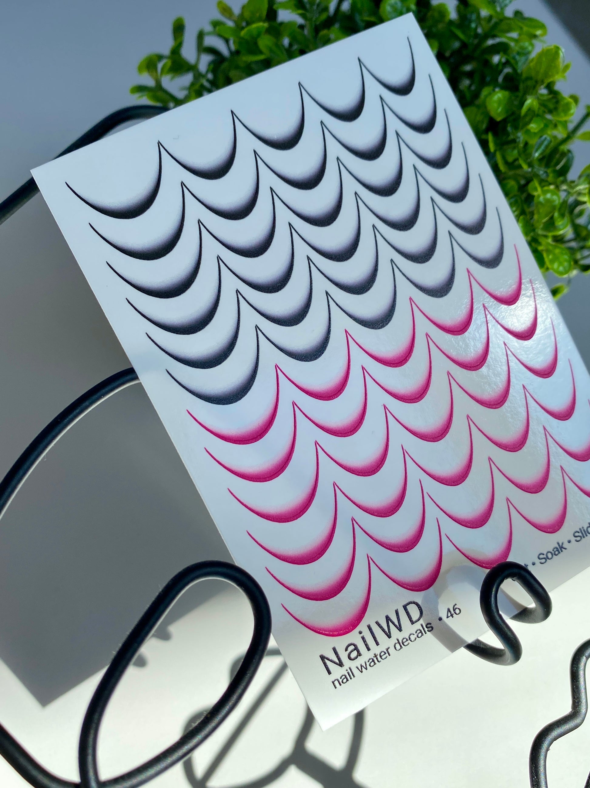 Nail Water Decal 46 NailWD | French Water Slide Nail Decals | Black & Pink Gradient Tips
