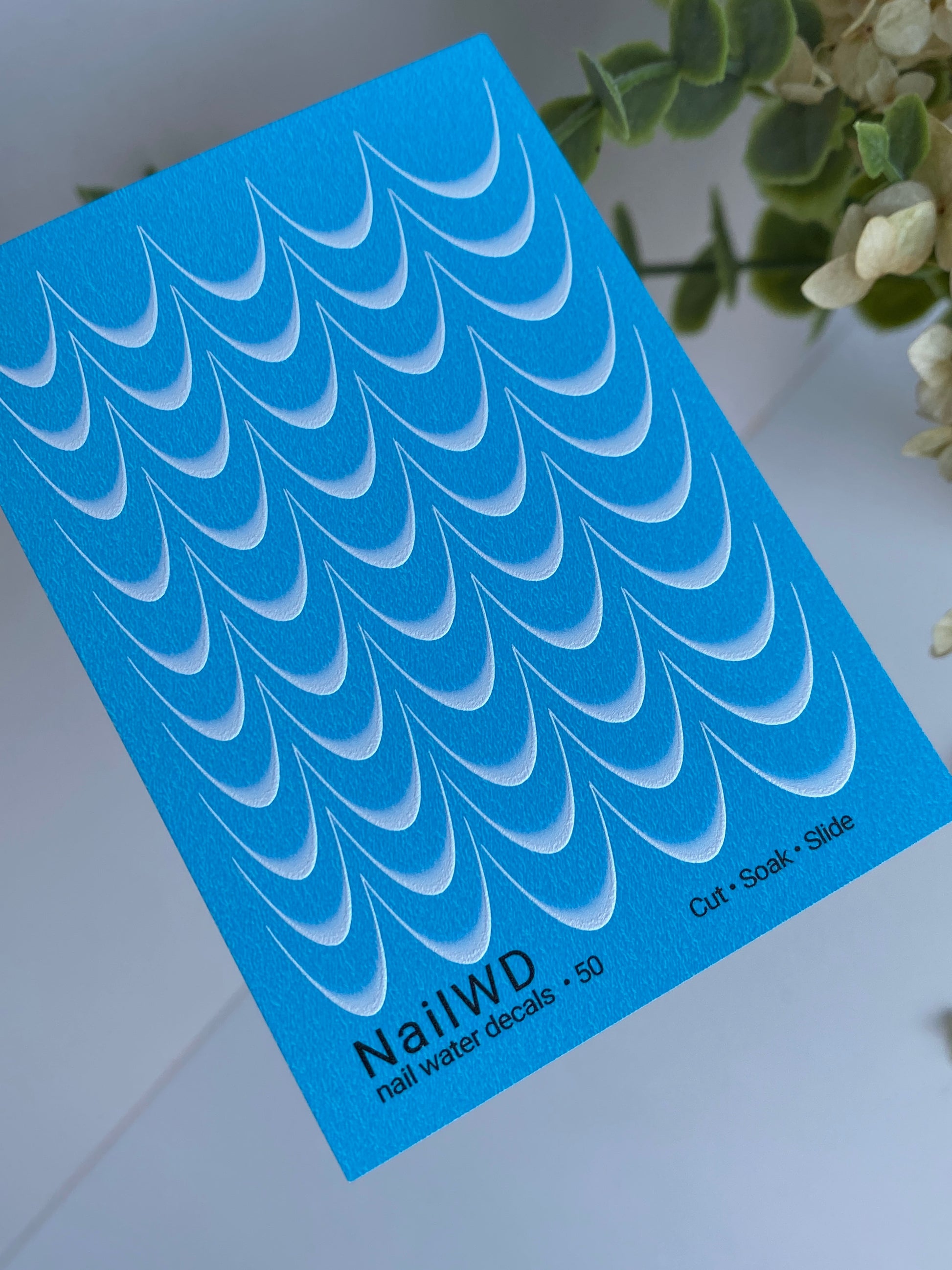These nail water decals are water-activated — soak to apply. Each curved line releases in water and slides off smoothly for precise placement. Cut the chosen line before soaking to ensure accurate application.