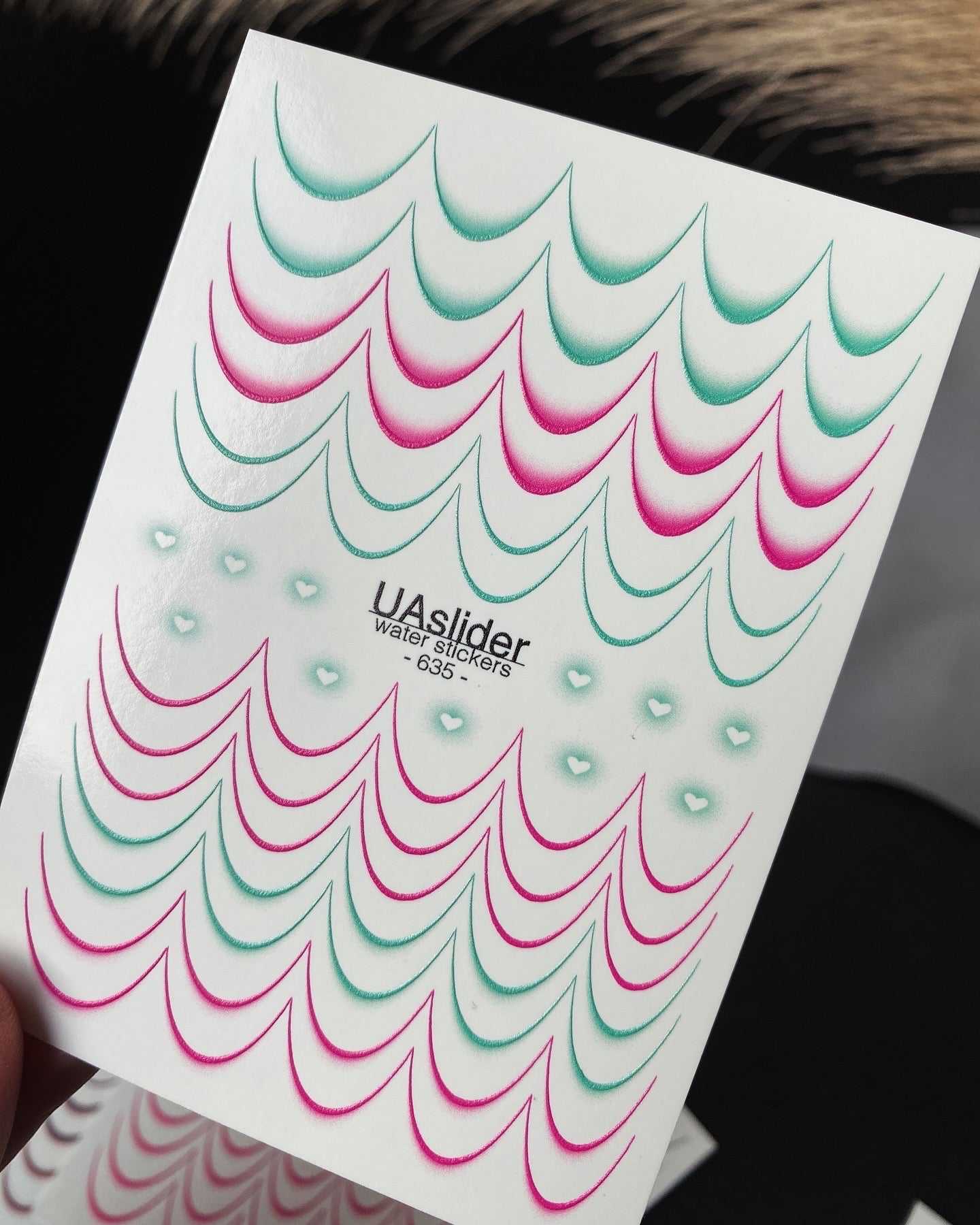 Water slide nail decals with a white backing work beautifully over any gel polish shade, ensuring vivid and crisp designs.