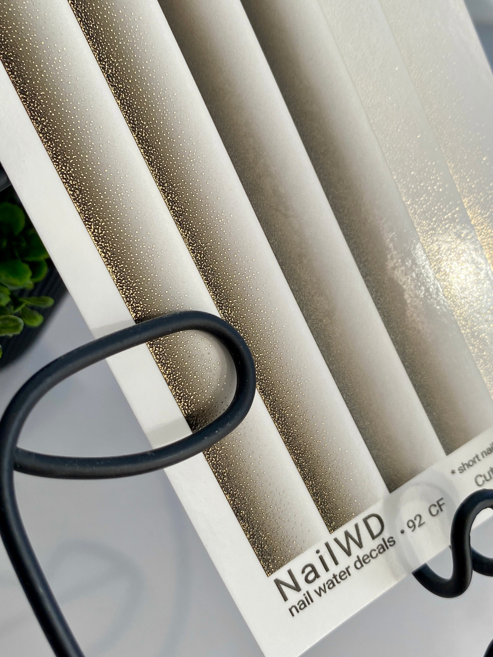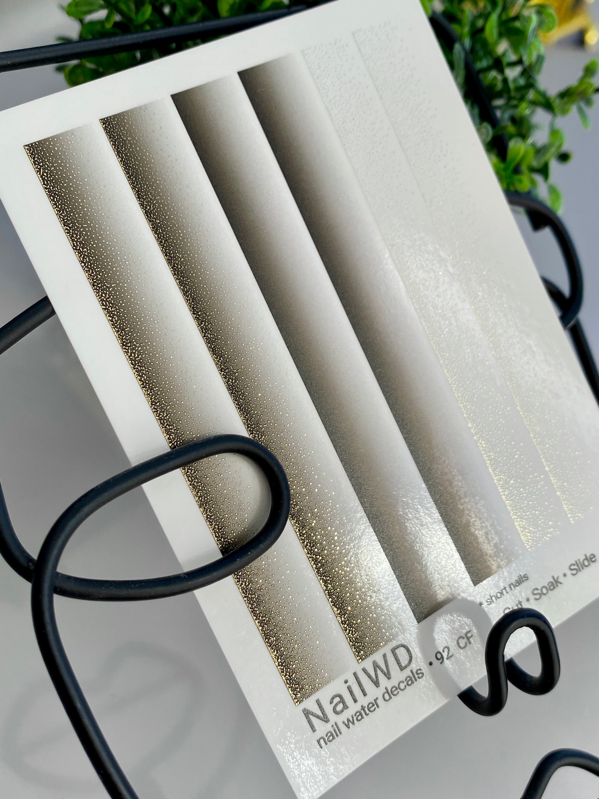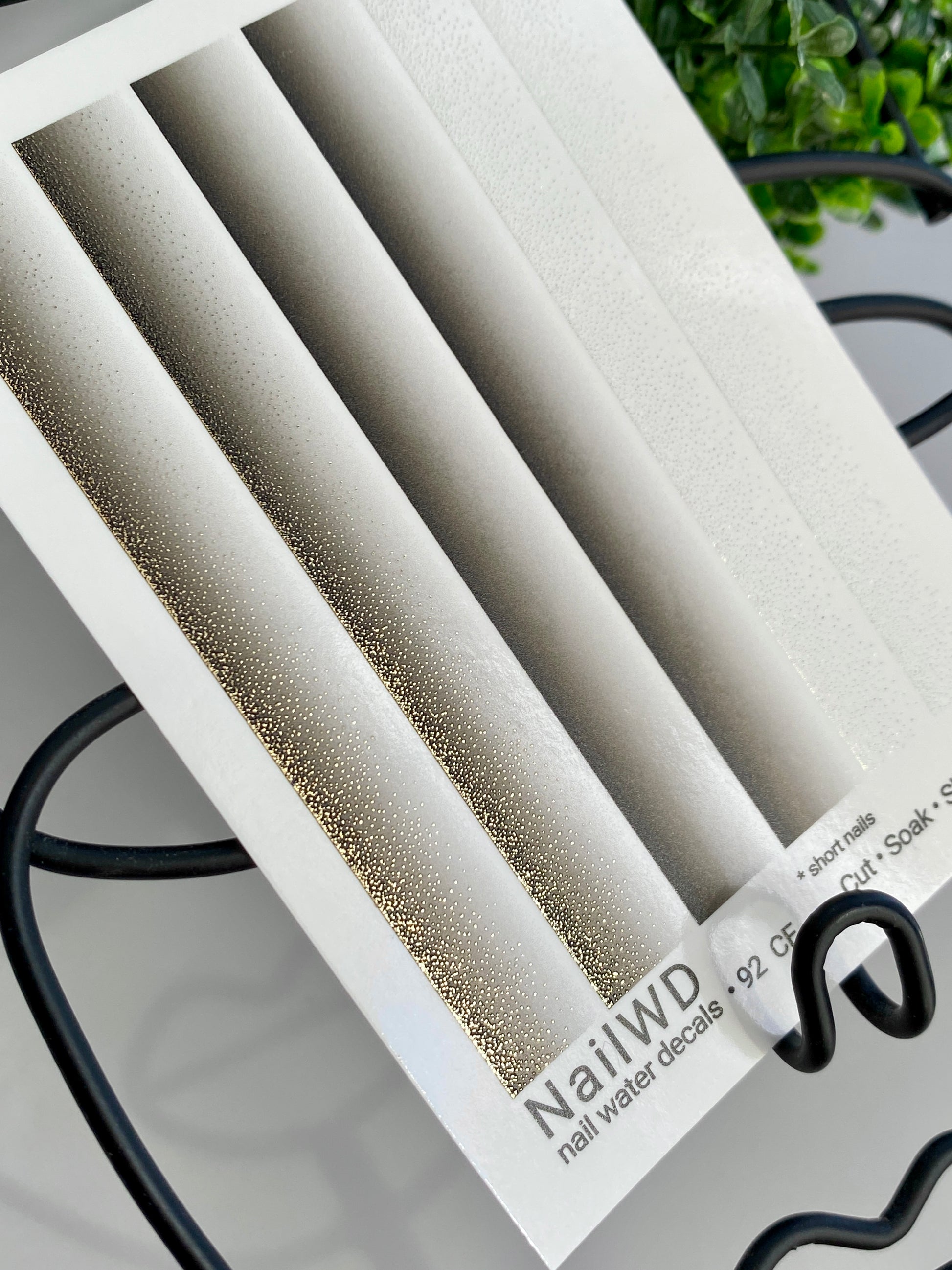 Elegant Water Slide Nail Decals with a beige-to-gold gradient effect, adding sophistication and subtle shimmer to your manicure. Perfect for French fade or ombre background nail art.