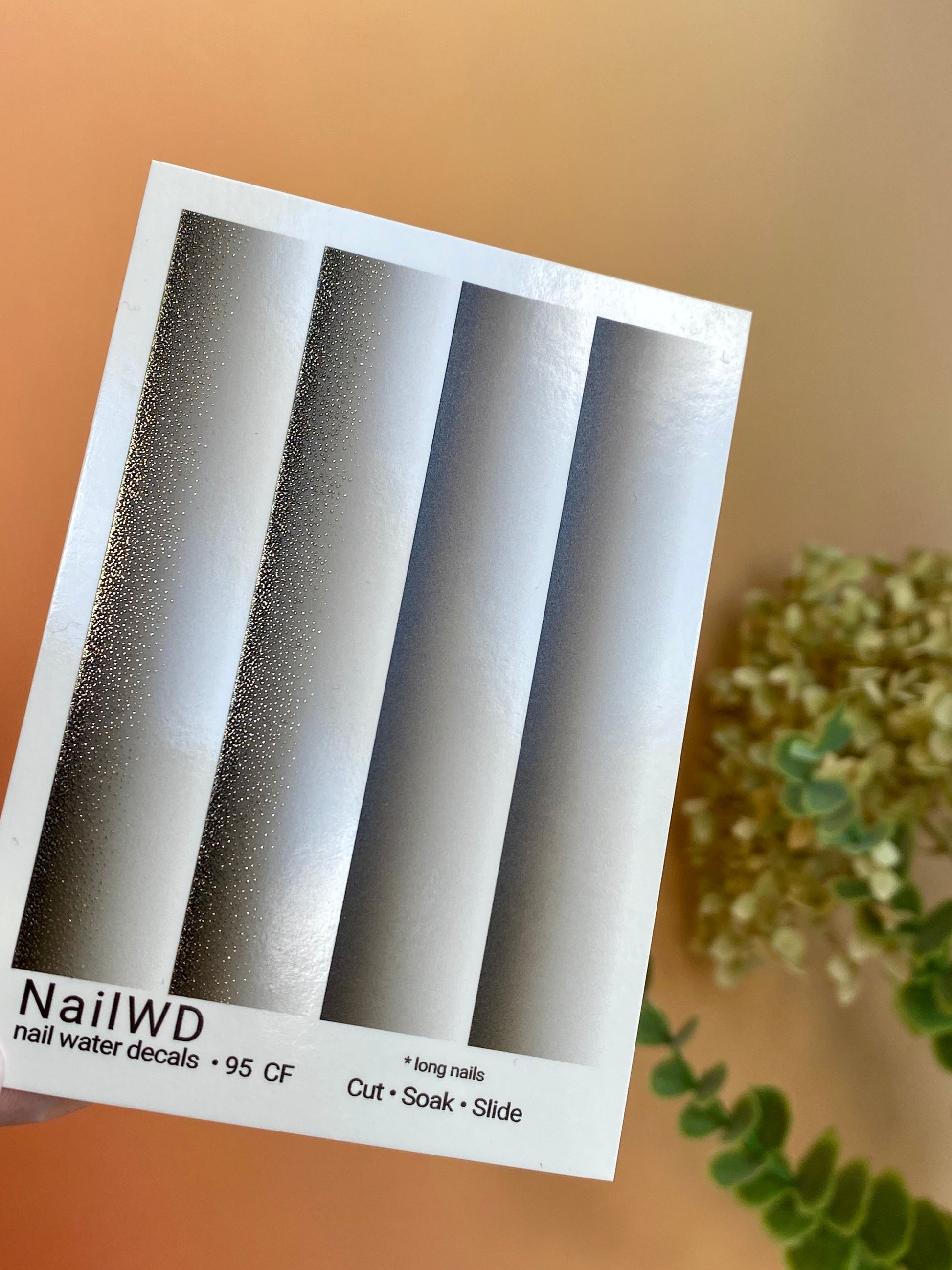 Nail Water Decal 95 NailWD | Water Slide Nail Decals White to Black Gradient with Gold | Luxury Ombre French