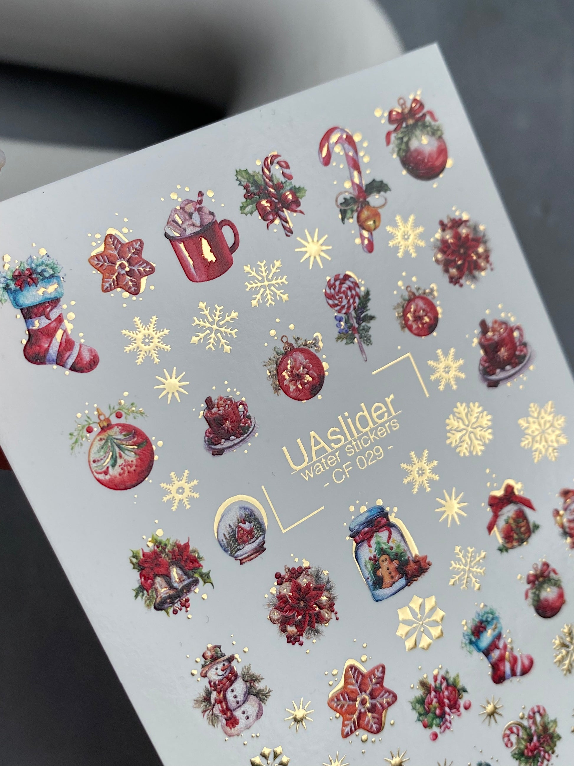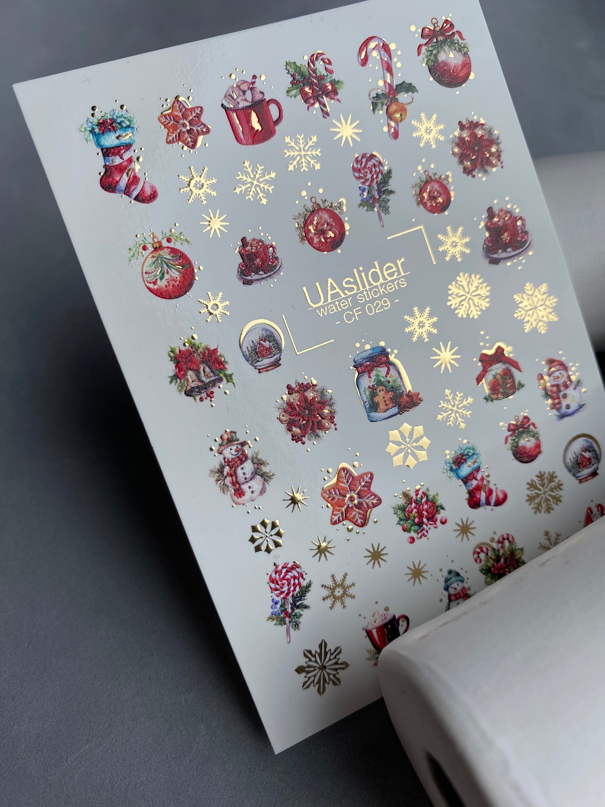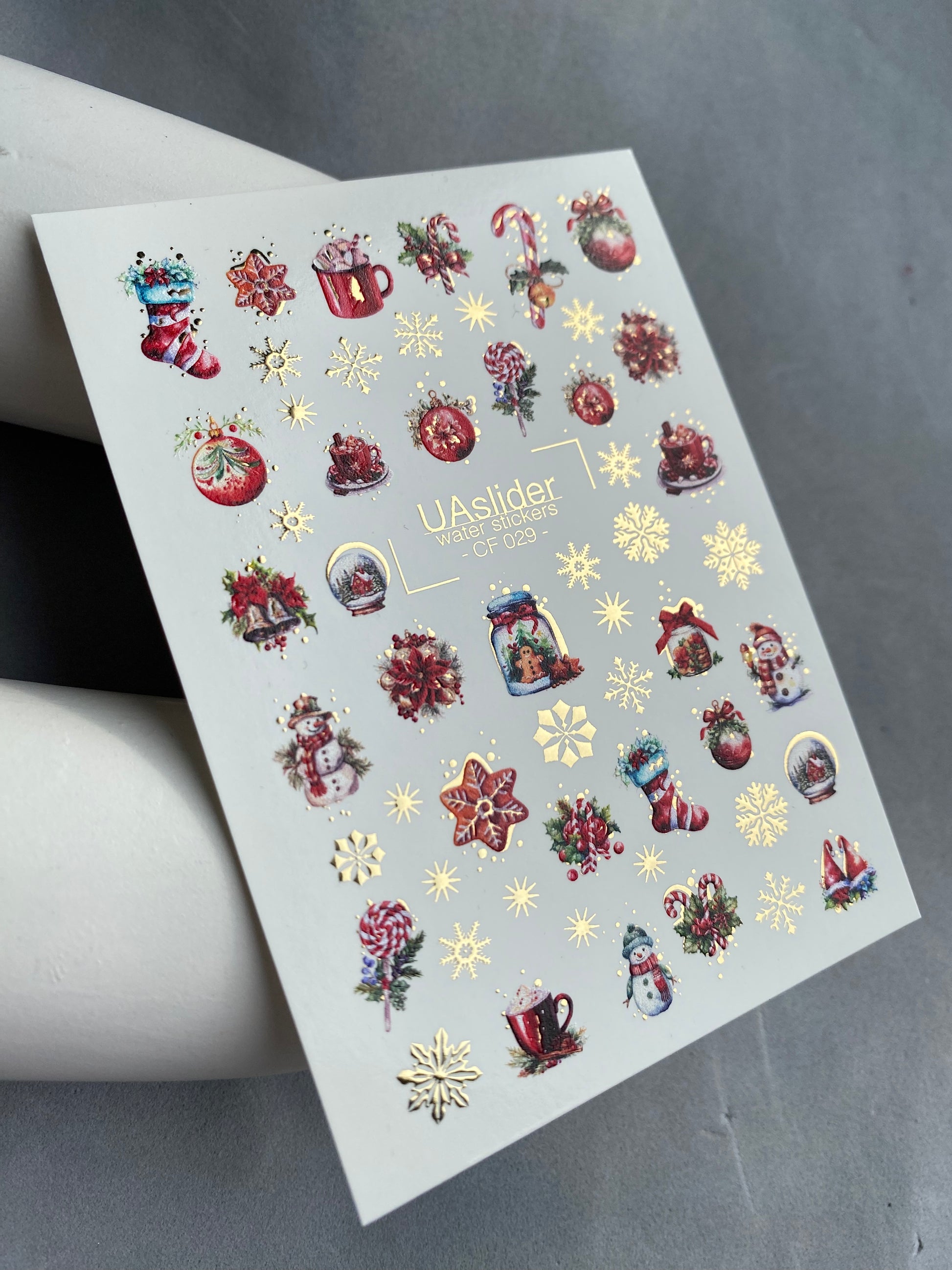 Nail Water Decal CF-029 | Festive Christmas Nail Water Decals with Gold Foil | Ornaments, Snowflakes and SweetsCF_029