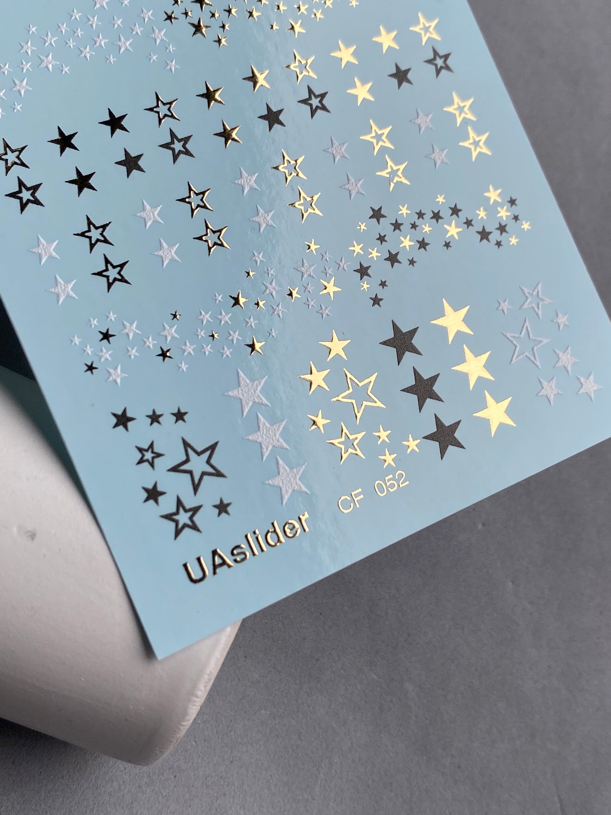 Nail Water Decal CF-052 | Star Nail Water Decals | Black, Gold & Silver Star PatternsCF_052
