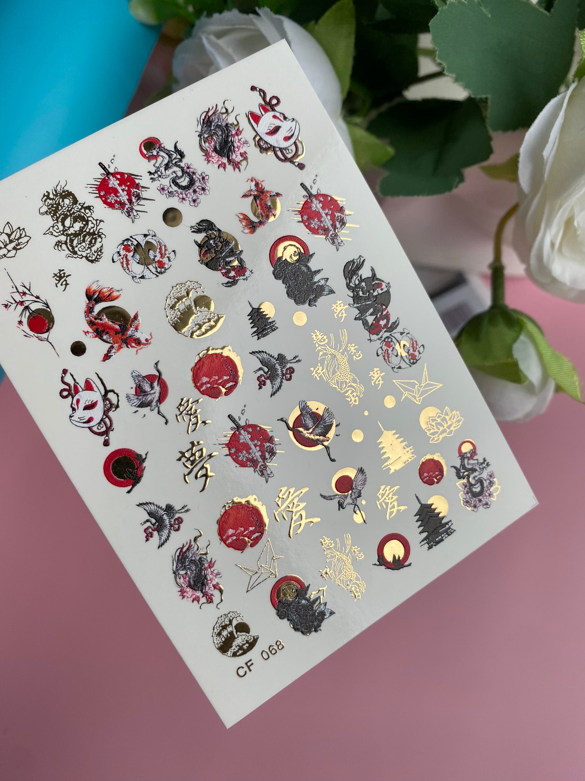 Nail Water Decal CF-068 | Japanese Nail Water Decals | Dragons, Cranes, Fox Mask, Kanji and Oriental Nail Art