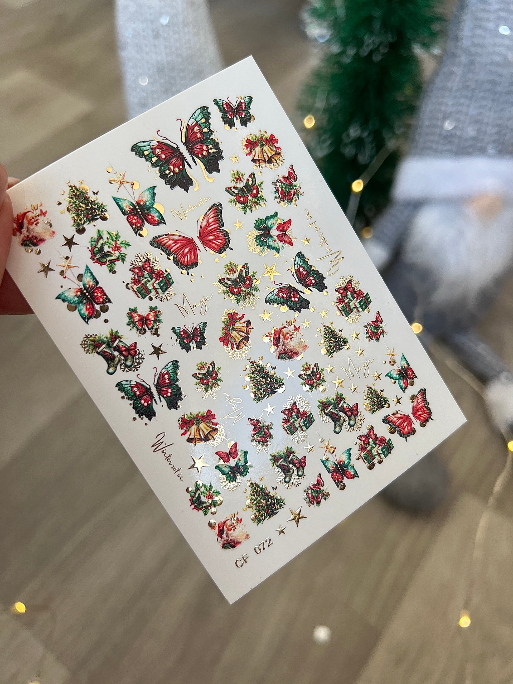 Nail Water Decal CF-072 | Christmas Nail Art Water Decals | Butterflies, Christmas Trees, Gifts and Festive Decorations