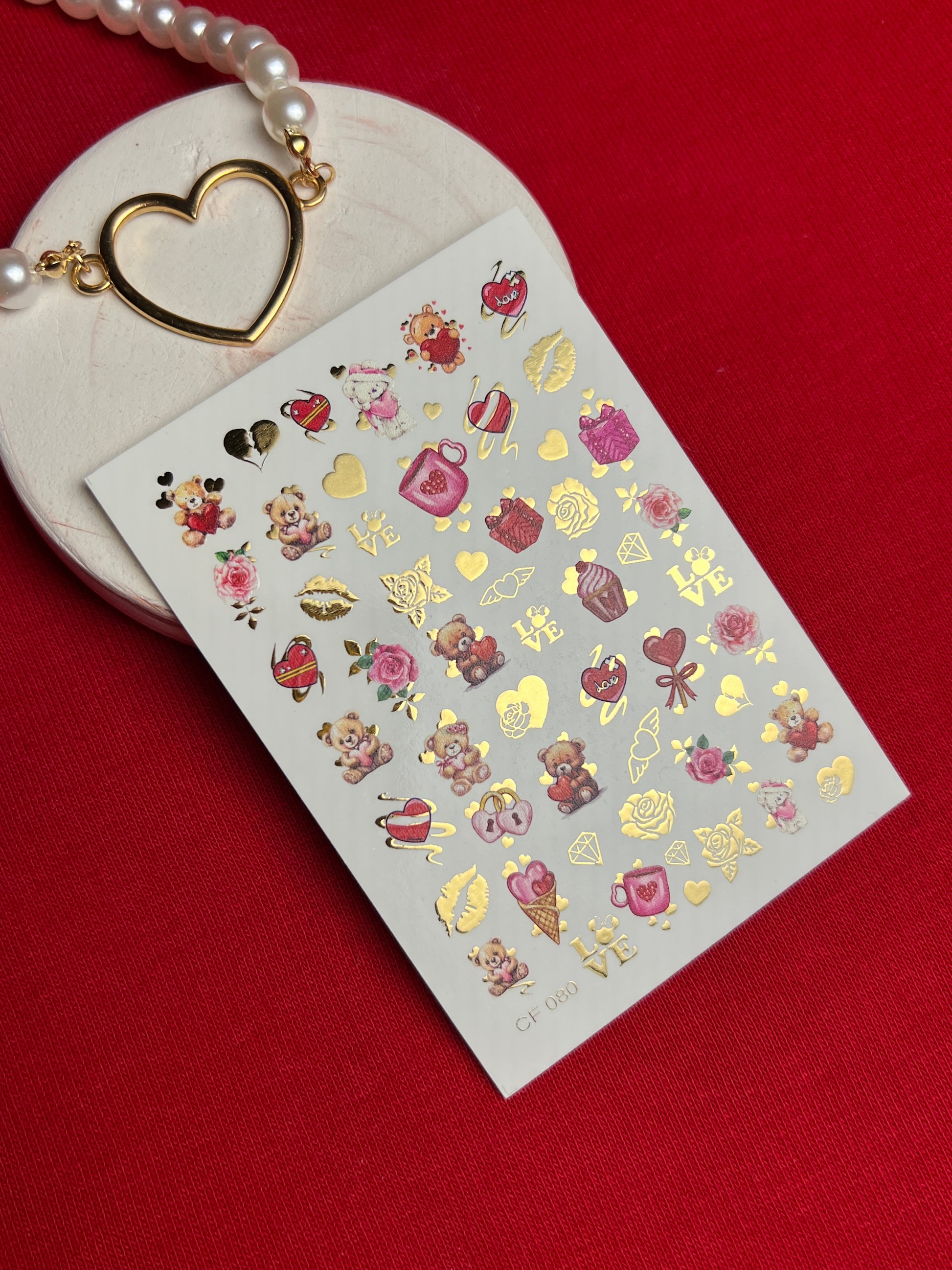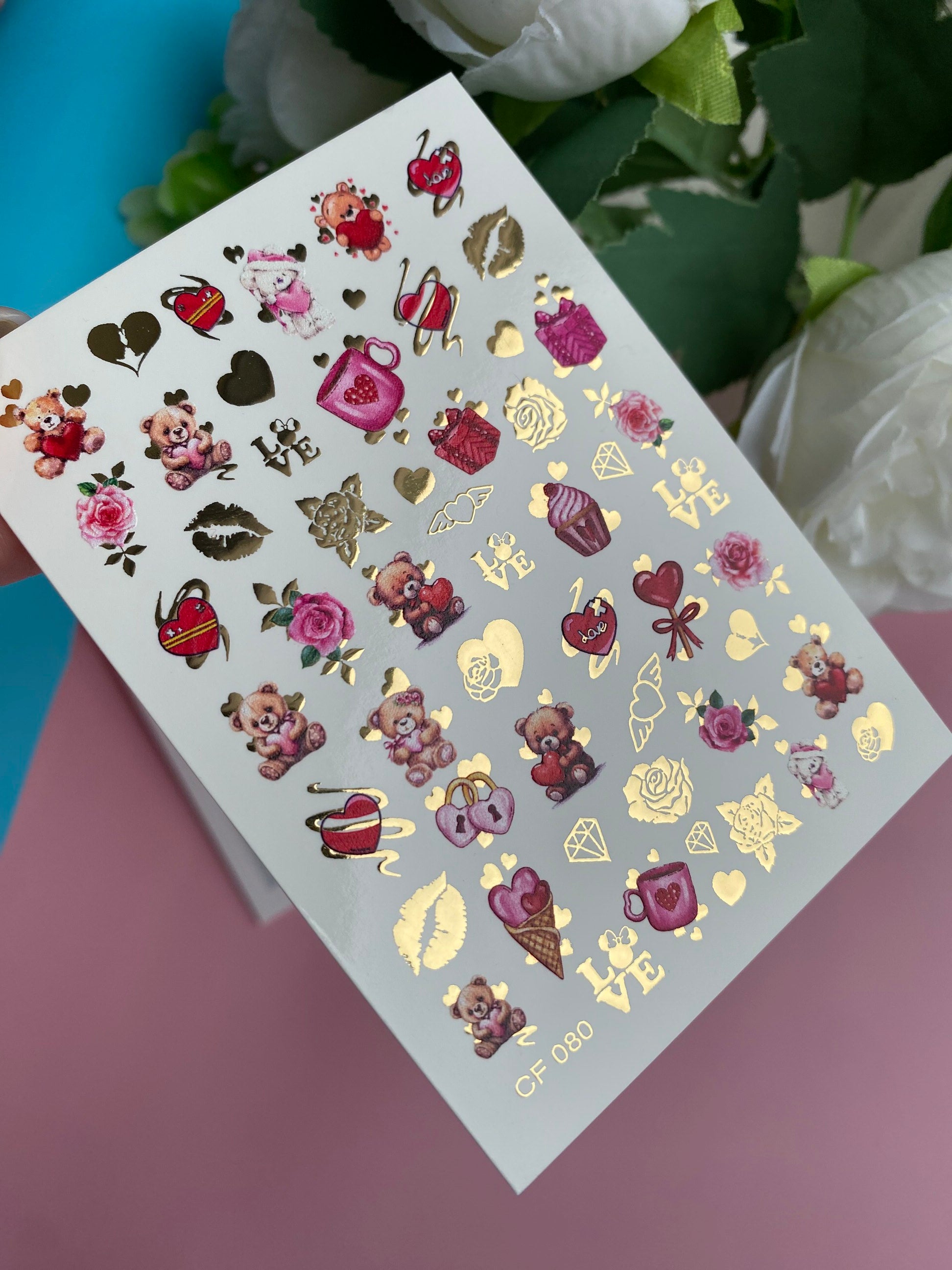 Cute and romantic “Love is” nail art water decals featuring cartoon couples in various poses, hearts, and wedding-inspired designs. A perfect choice for Valentine’s Day, anniversaries, or playful everyday manicures.