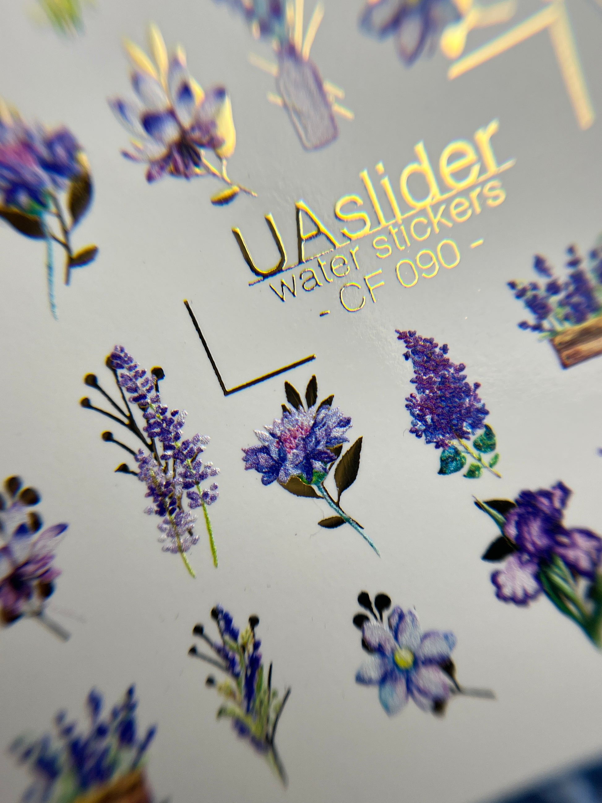 Nail Water Decal CF-090 | Lavender & Violet Floral Water Slide Nail Decals | Purple Flowers & ButterfliesCF_090