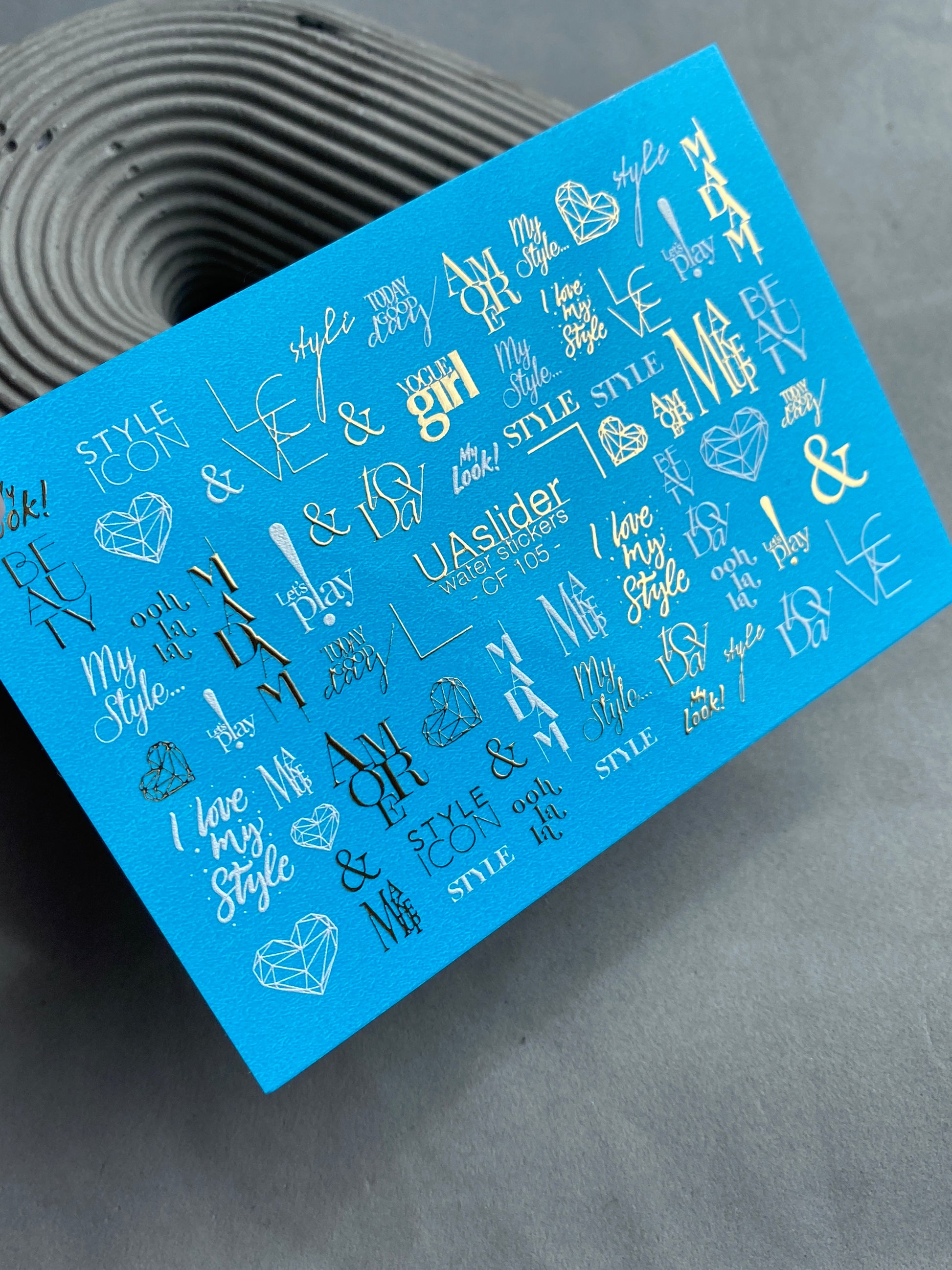 Nail Water Decal CF-105 | Minimalist Water Slide Nail Decals | Love & Style Lettering with Gold AccentsCF_105