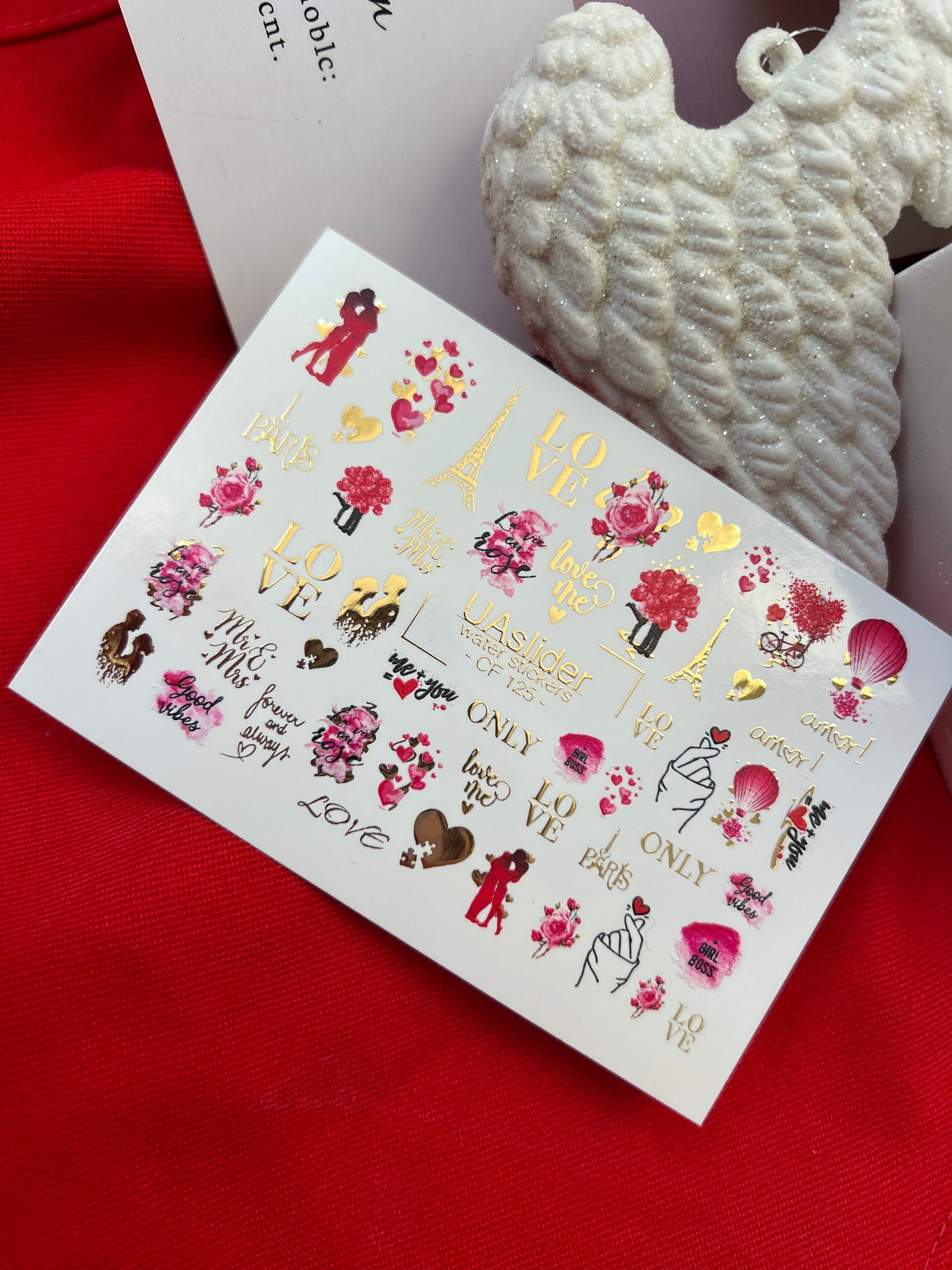 Nail Water Decal CF-125 | Romantic Nail Water Decals | Paris, Eiffel Tower, Roses & Love QuotesCF_125