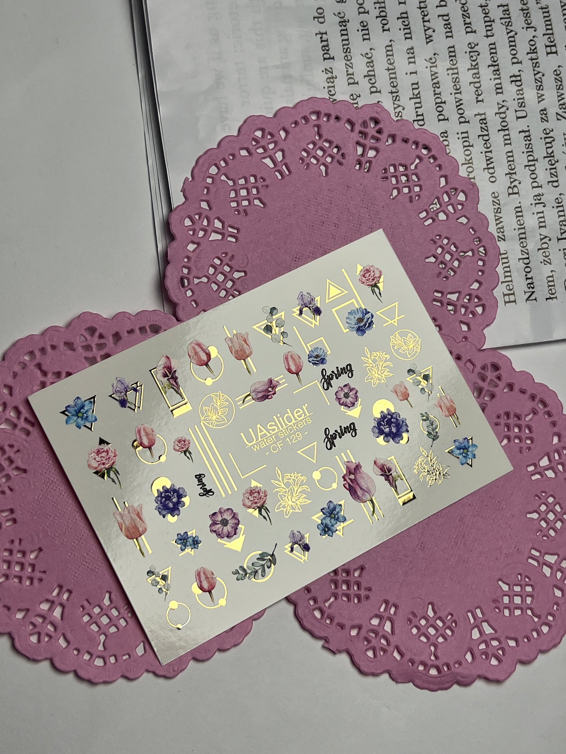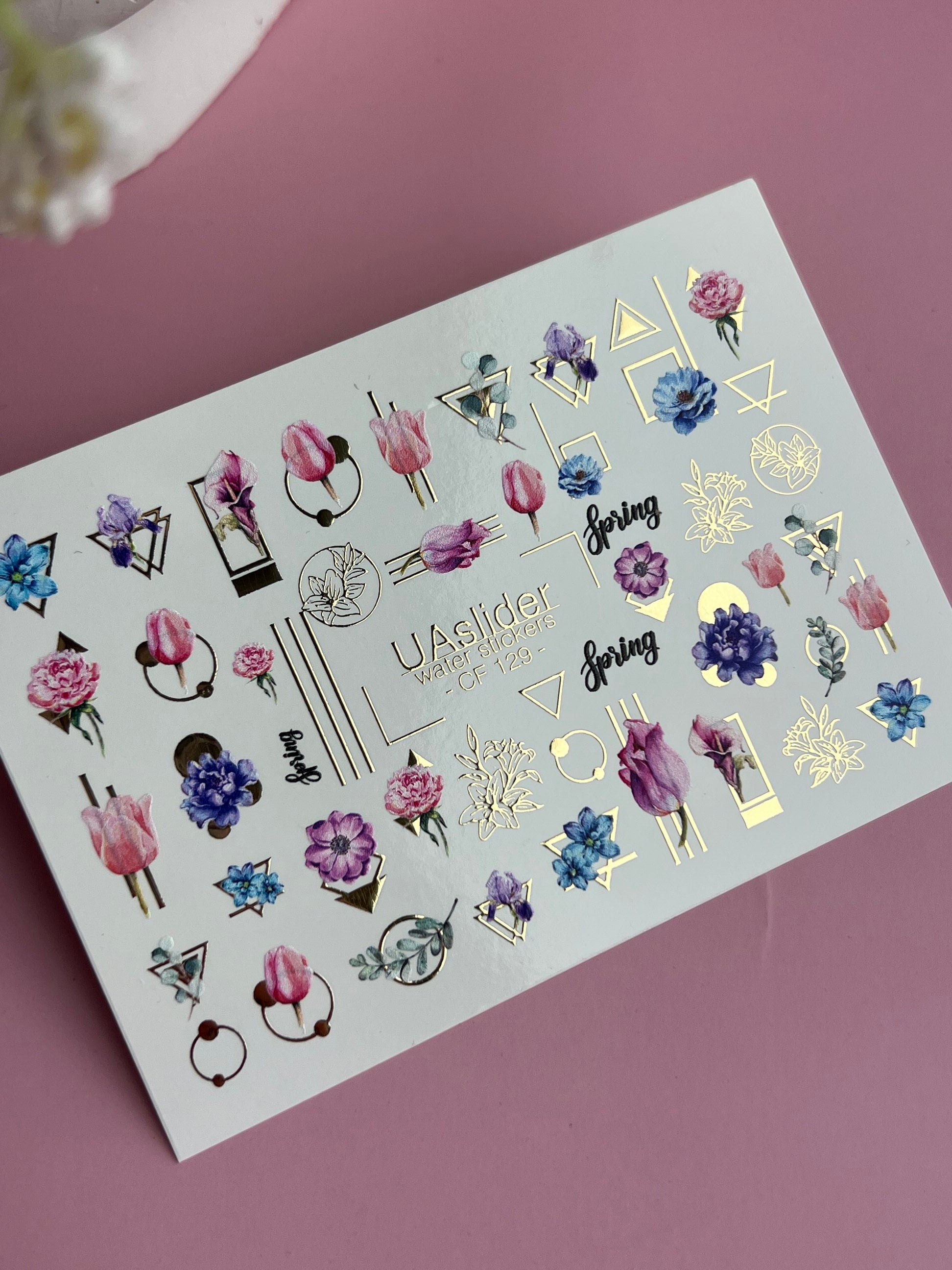 Nail Water Decal CF-129 | Floral Water Slide Nail Decals | Tulips, Peonies & Spring Flowers with Geometric Accents