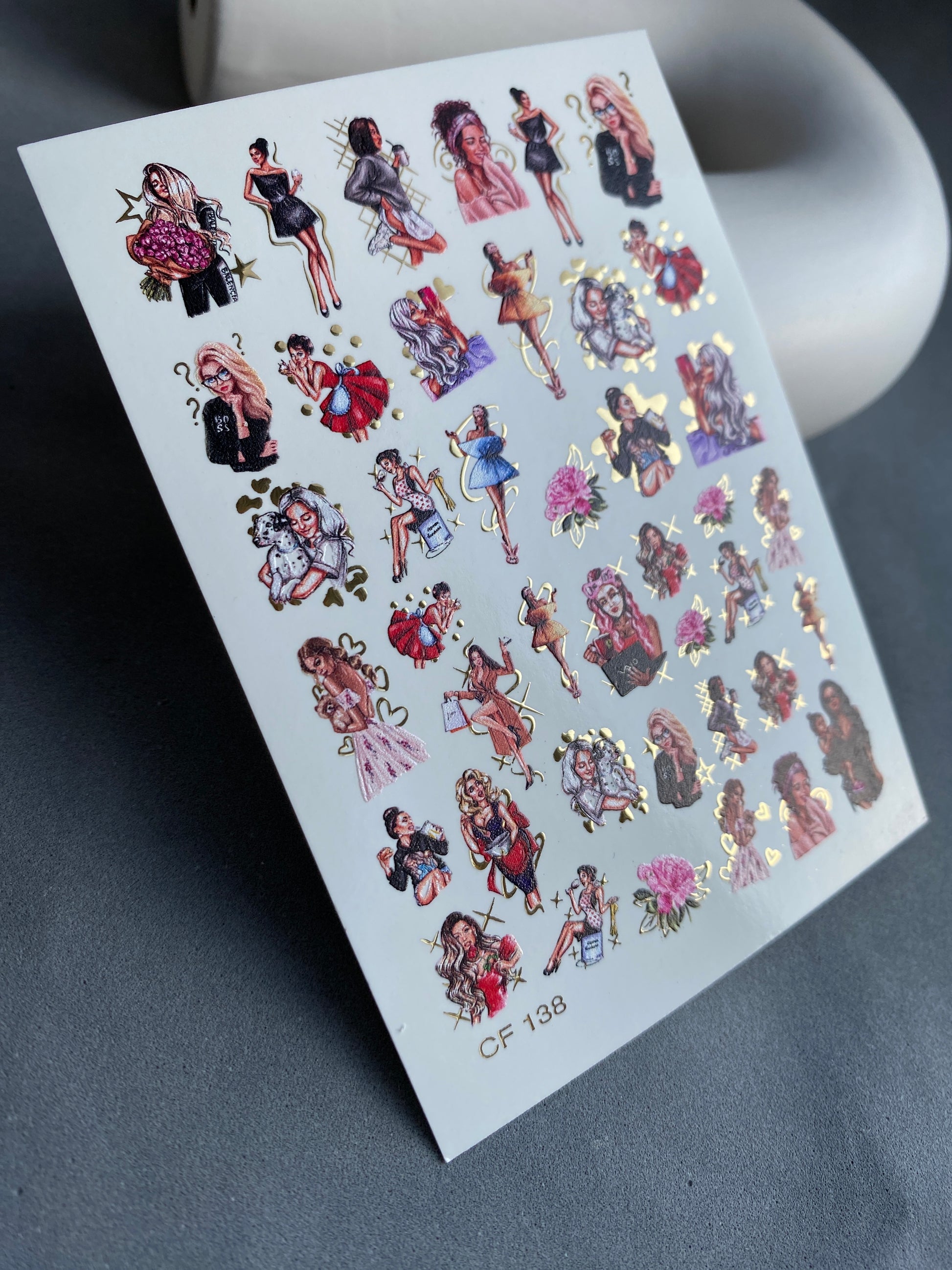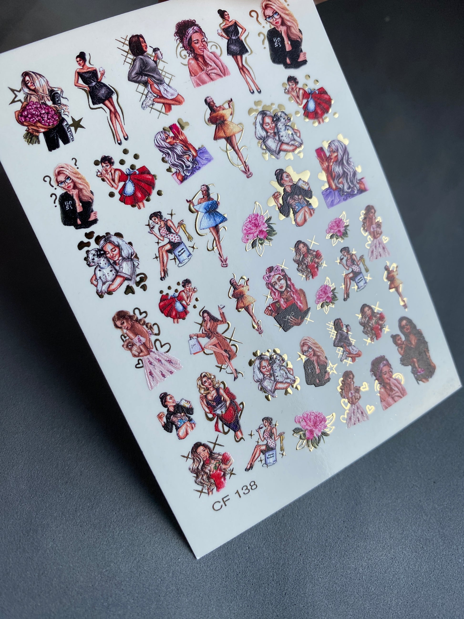 Nail Water Decal CF-138 | Fashion Girl Water Slide Nail Decals | Stylish Outfits & Gold AccentsCF_138
