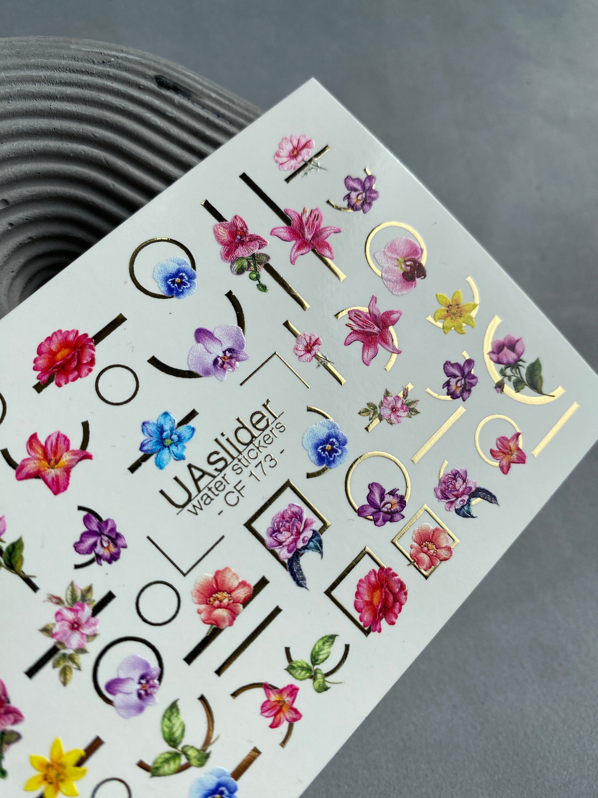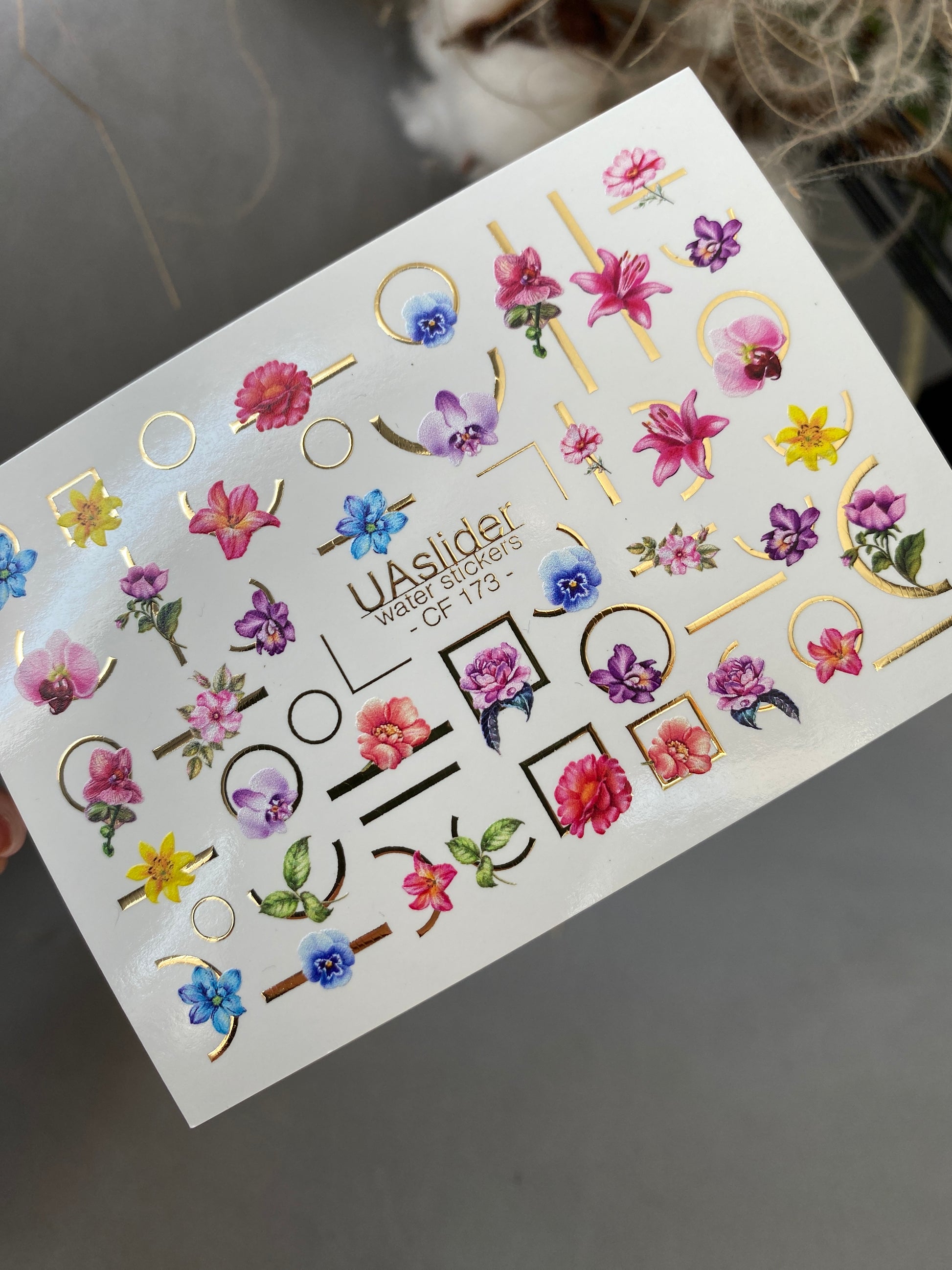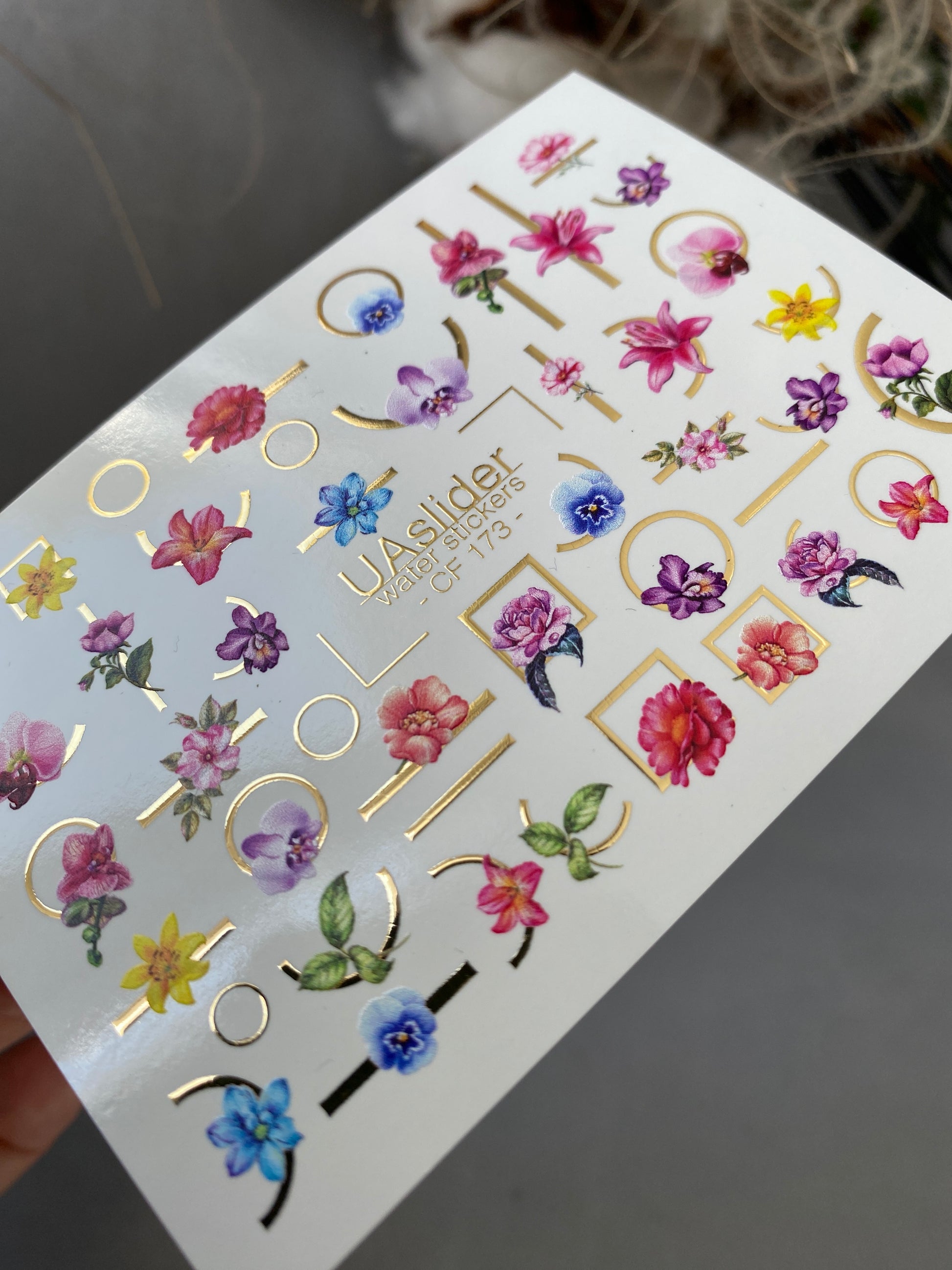 Nail Water Decal CF-173 | Colorful Floral Nail Water Decals | Orchids, Hibiscus & Geometric Accents