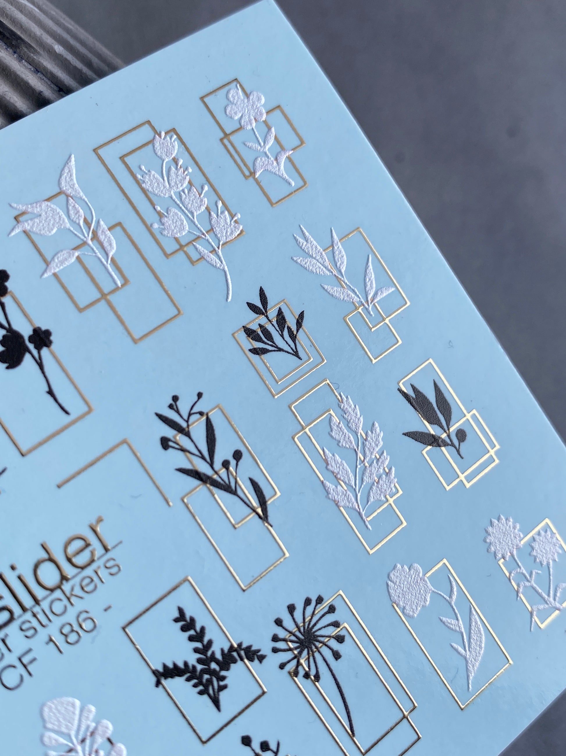 Nail Water Decal CF-186 | Nail Water Decals | Minimalist Botanical Silhouettes with Golden Frames