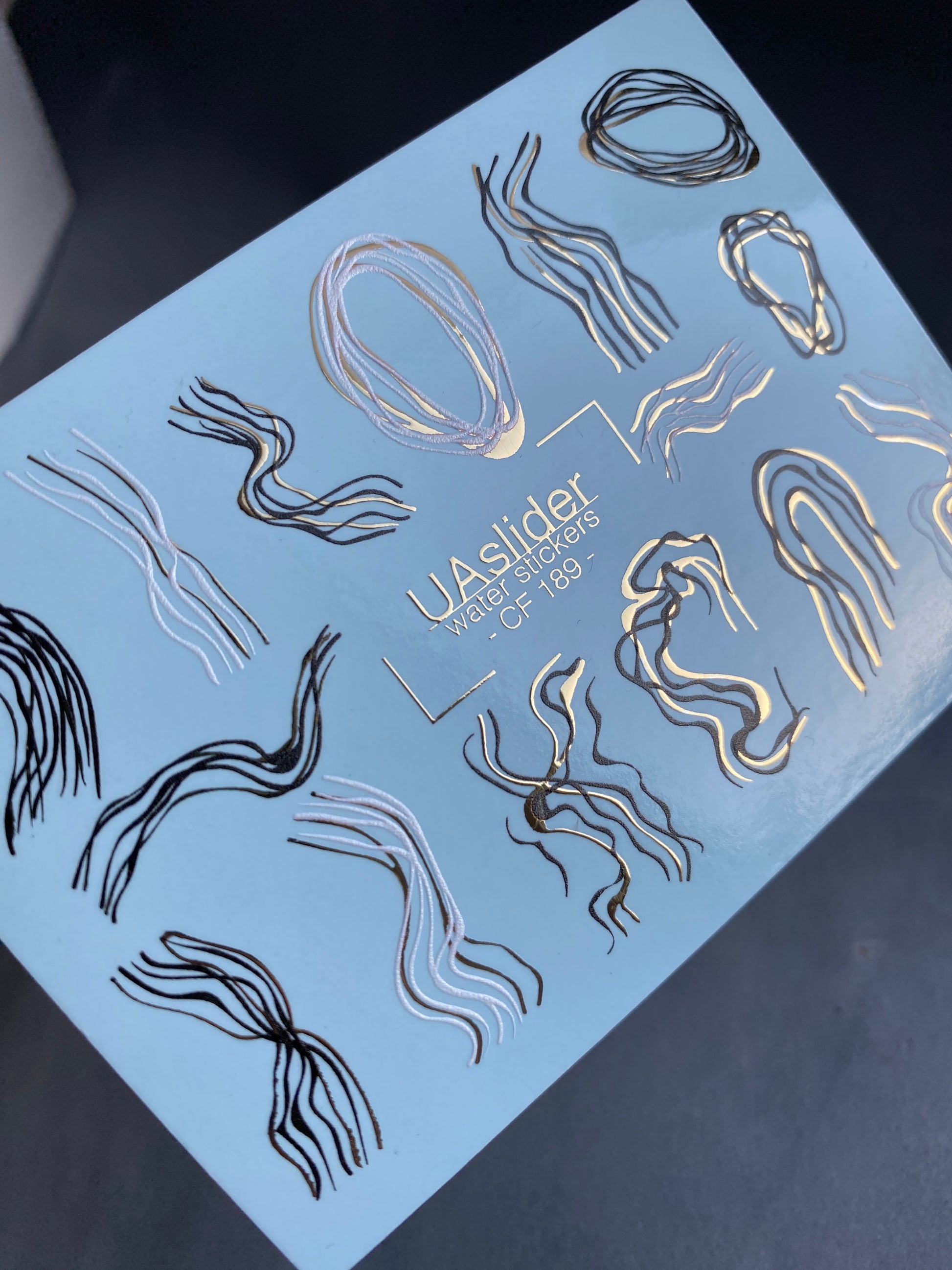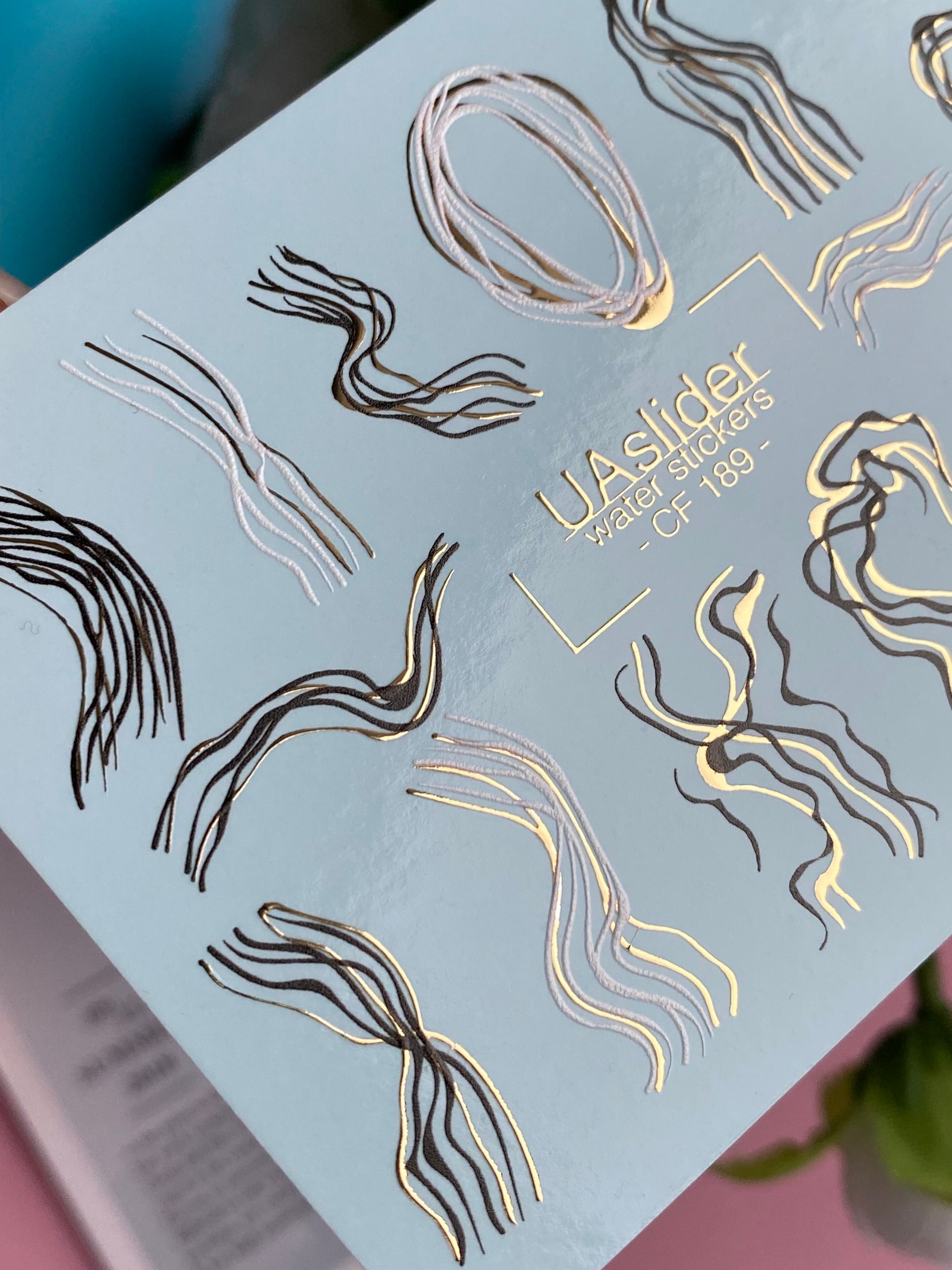 Nail Water Decal CF-189 | Nail Water Decals | Abstract Line Art with Golden Accents