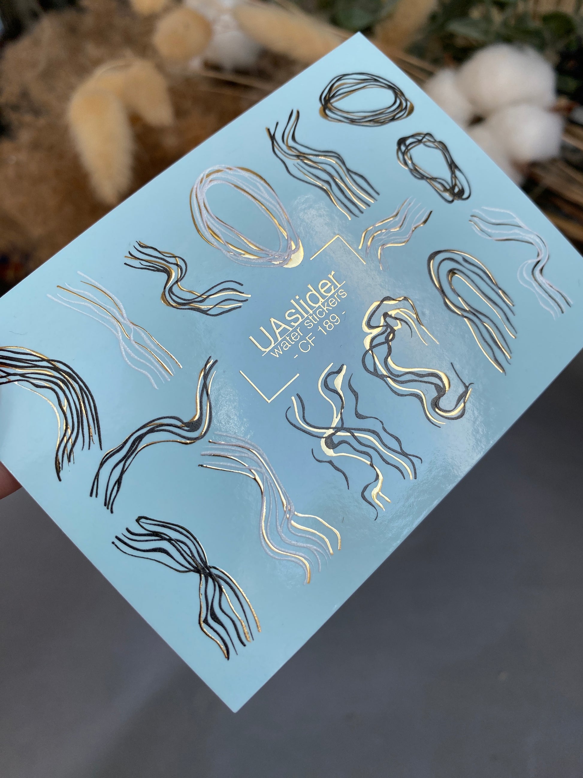 Nail Water Decal CF-189 | Nail Water Decals | Abstract Line Art with Golden AccentsCF_189