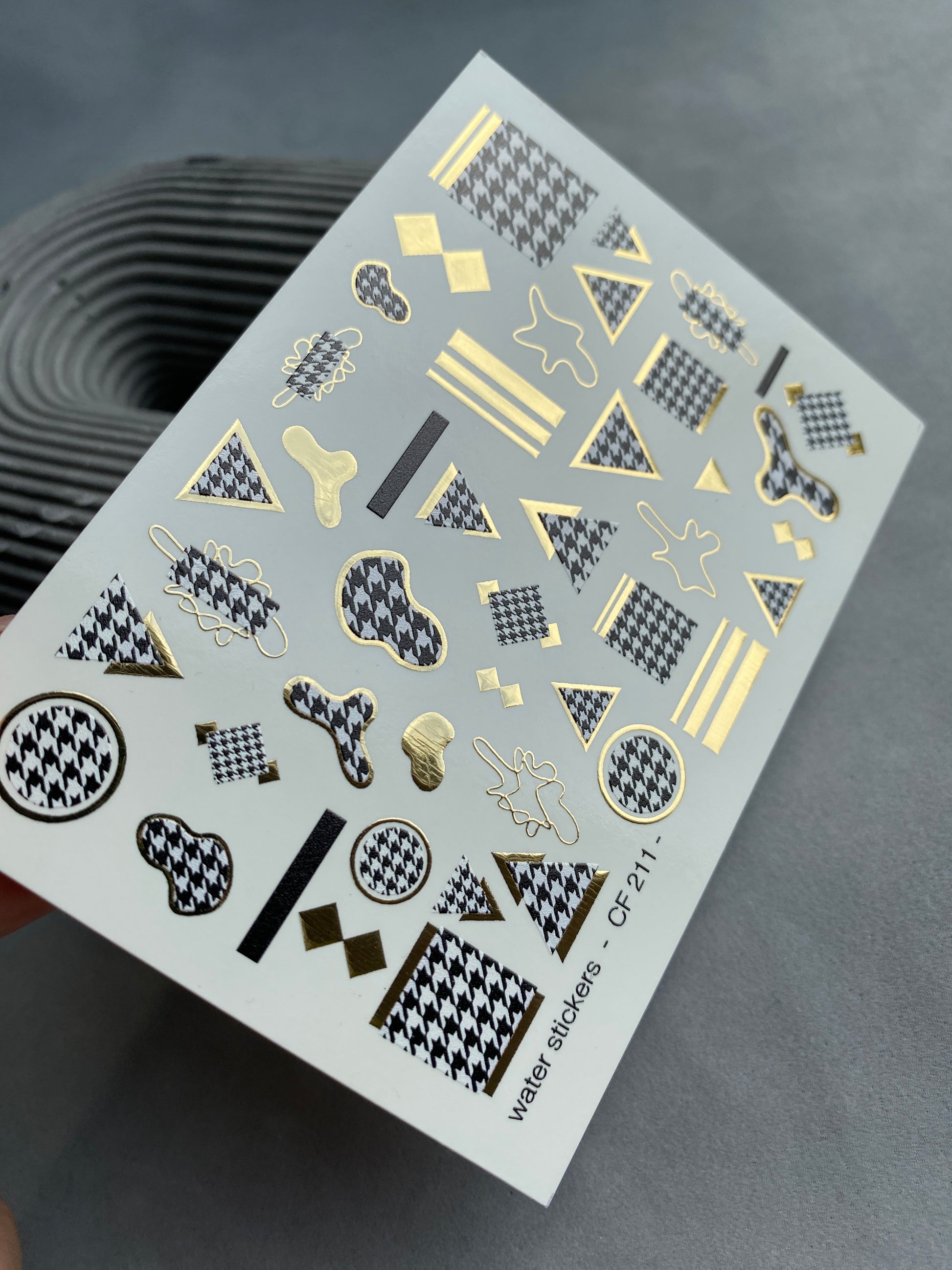 Nail Water Decal CF-211 | Nail Water Decals | Geometric Houndstooth & Gold Foil ShapesCF_211