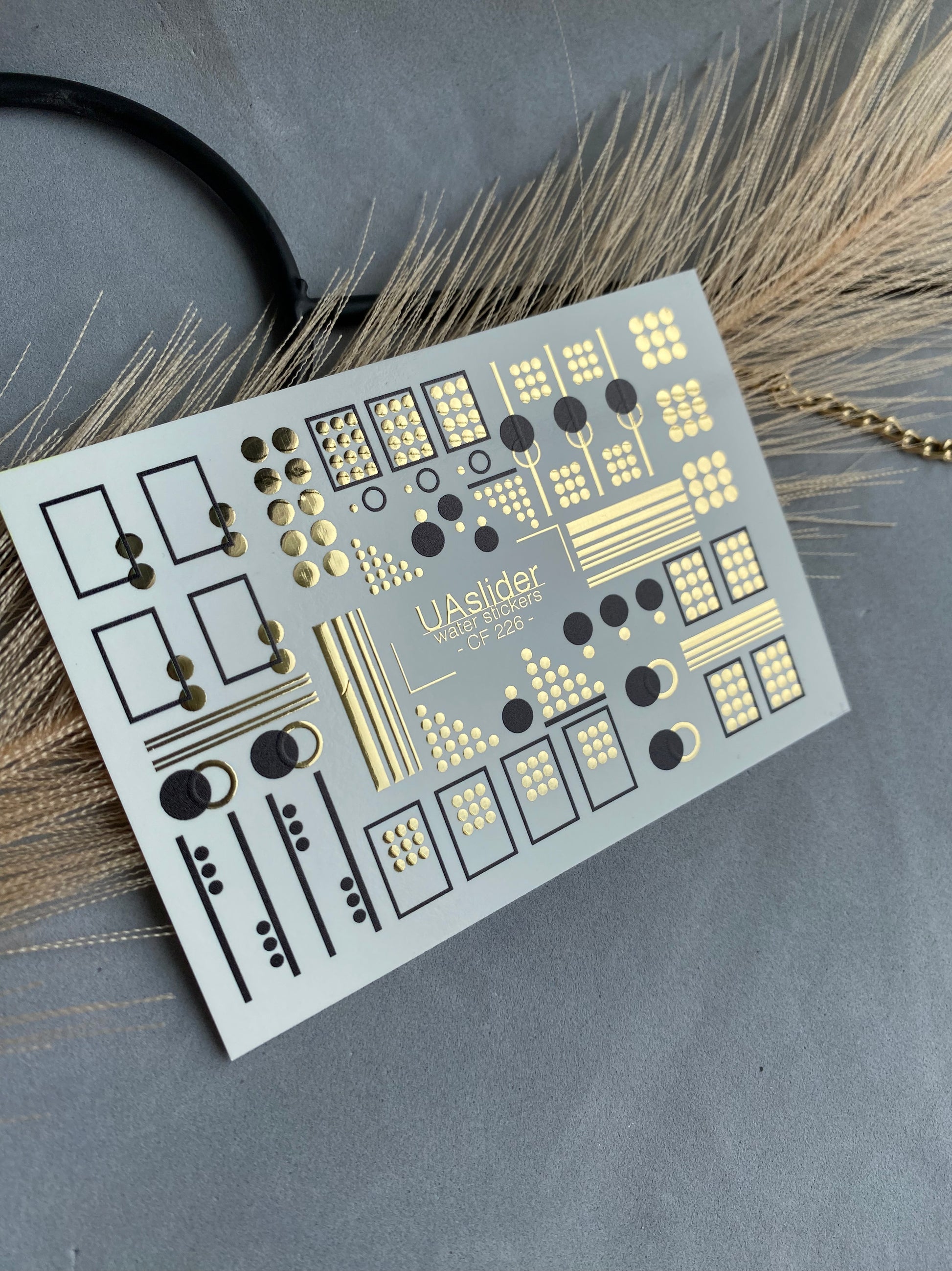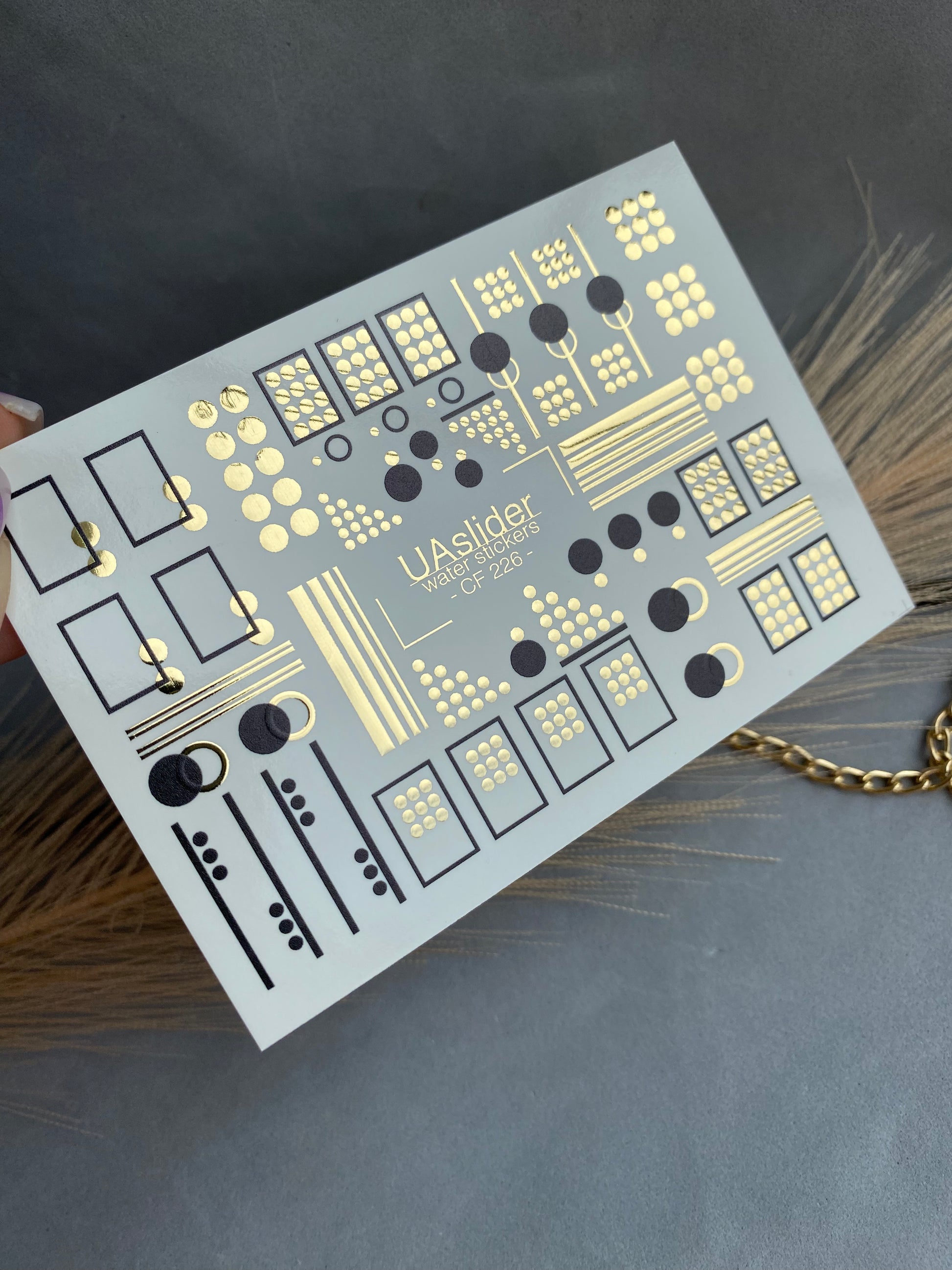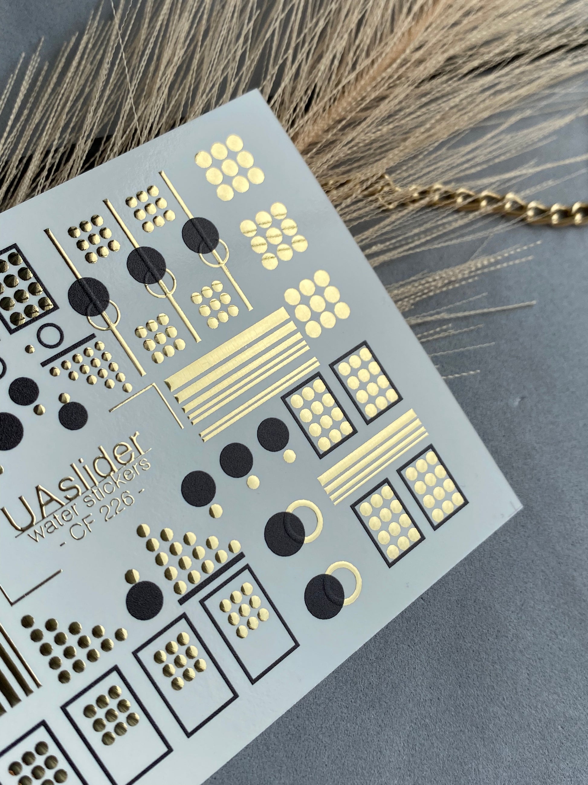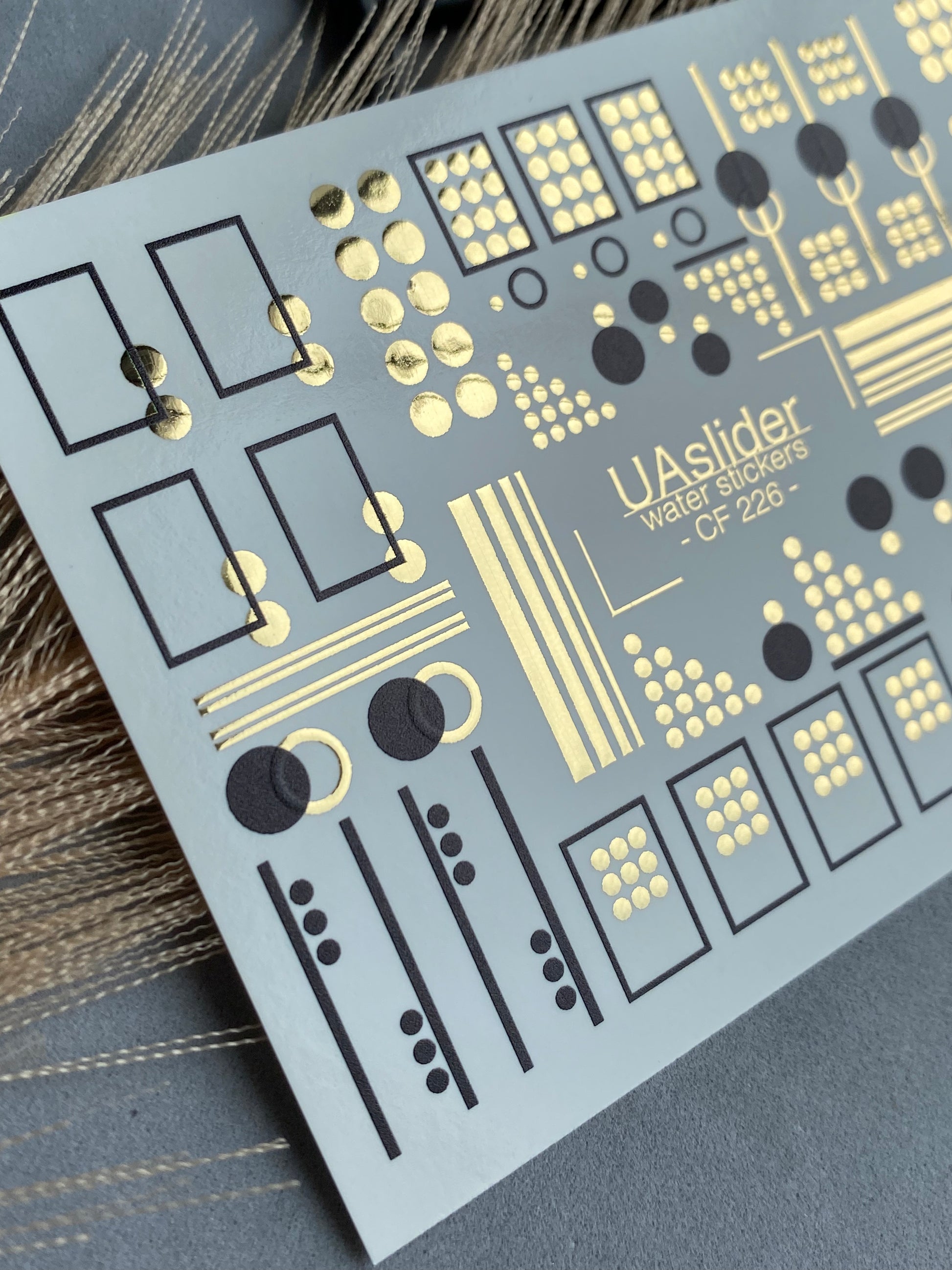 Nail Water Decal CF-226 | Geometric Water Slide Nail Decals | Black & Gold Minimalist DesignCF_226