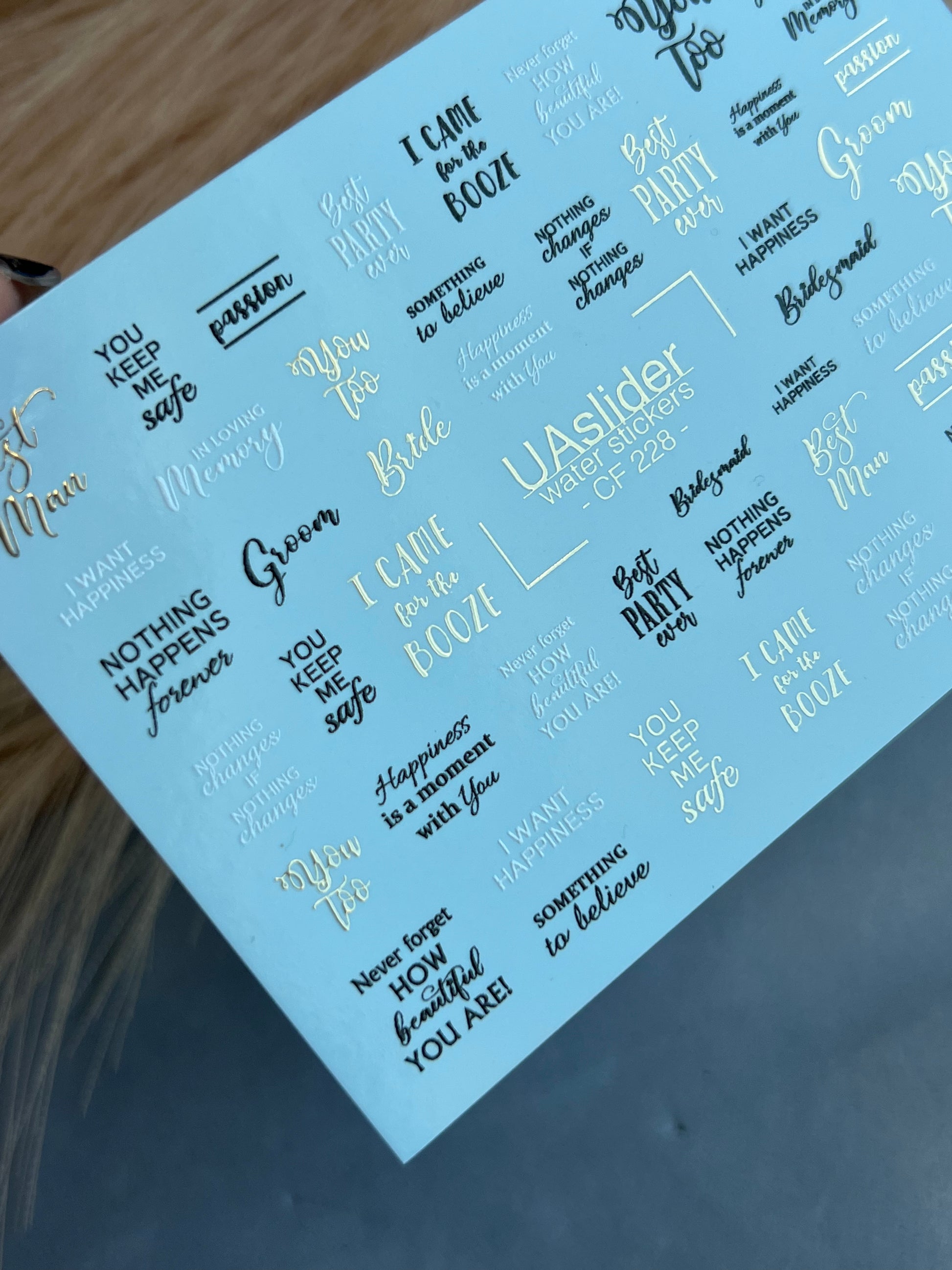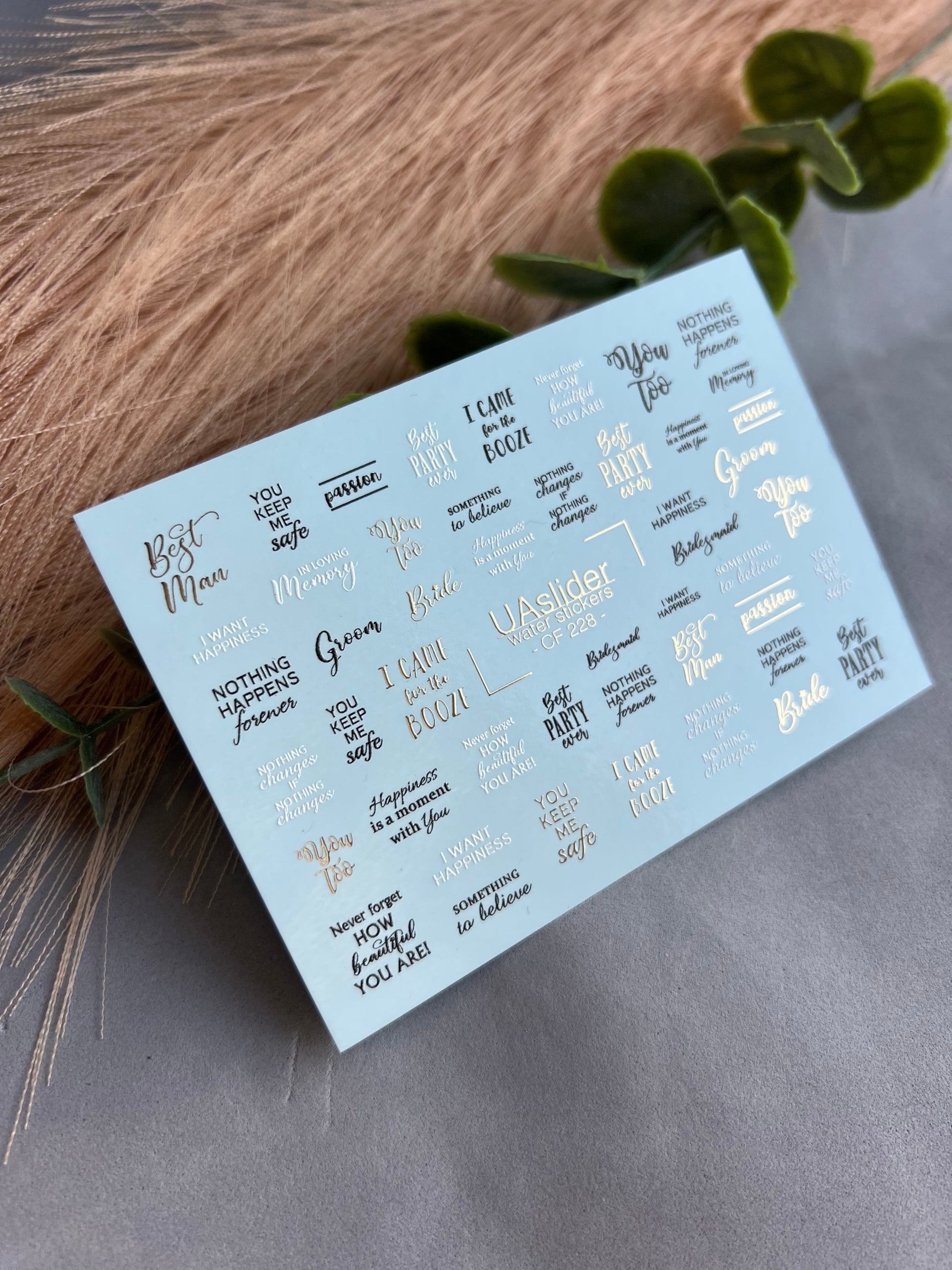 Nail Water Decal CF-228 | Lettering Water Slide Nail Decals | Wedding Quotes & Gold Accents