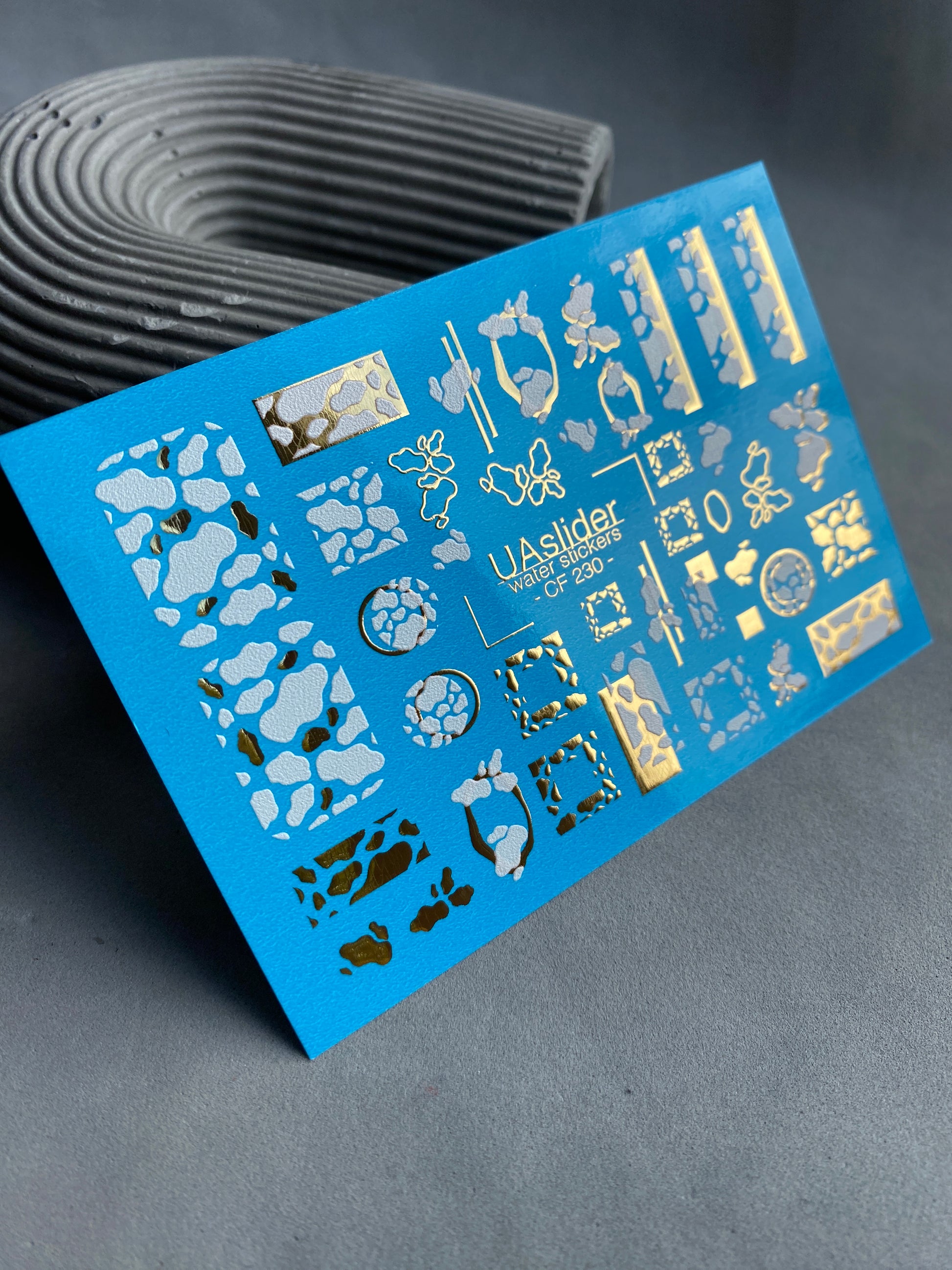Nail Water Decal CF-230 | Cow Print Water Slide Nail Decals | White & Gold Geometric DesignCF_230