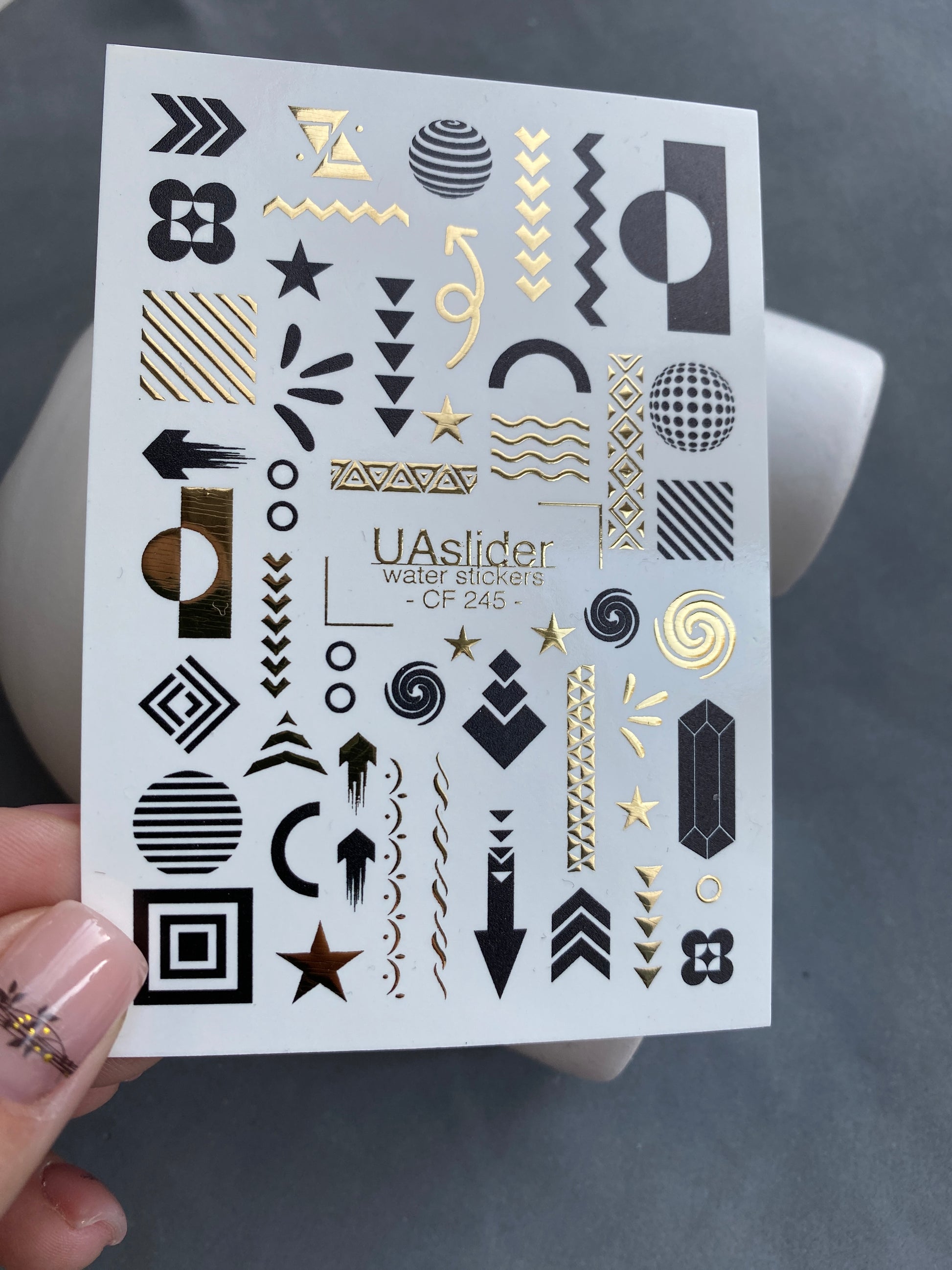 Nail Water Decal CF-245 | Geometric Abstract Nail Water Decals | Black & Gold Modern ShapesCF_245