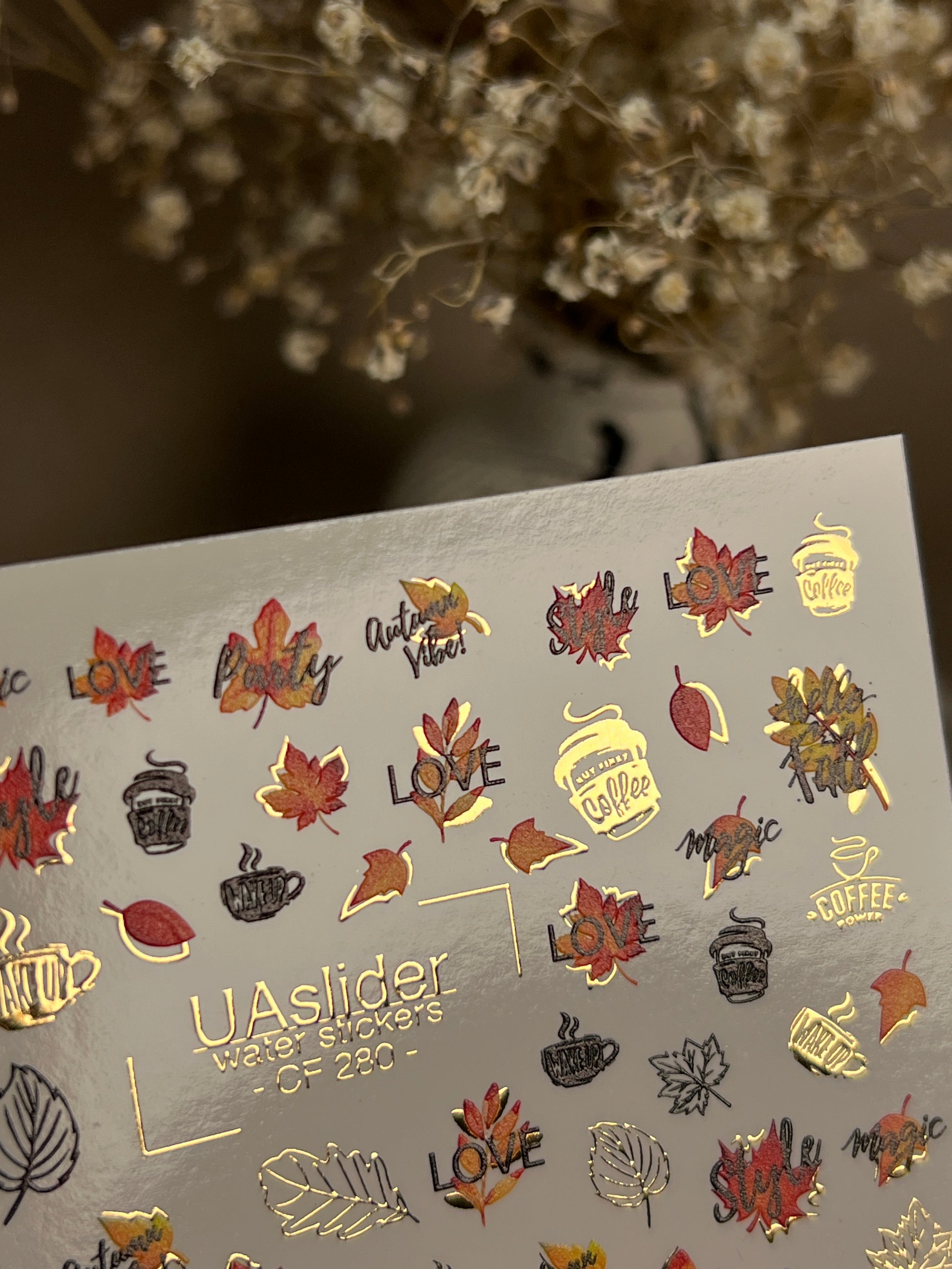 Nail Water Decal CF-280 | Autumn Water Slide Nail Decals | Fall Leaves, Coffee & QuotesCF_280