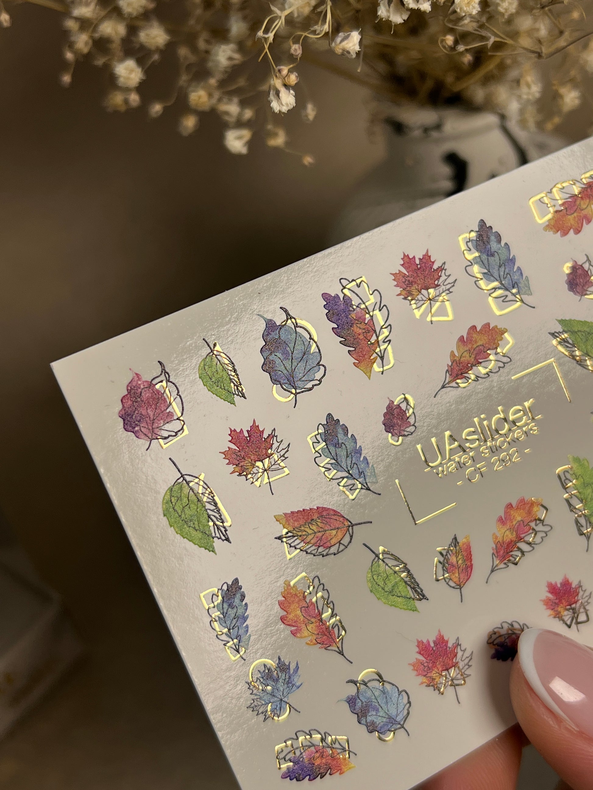 These Nail Water Decals are water-activated — simply soak to apply. Each element releases in water and slides off smoothly for effortless transfer. Cut out the selected design before soaking. Warm water is preferable.