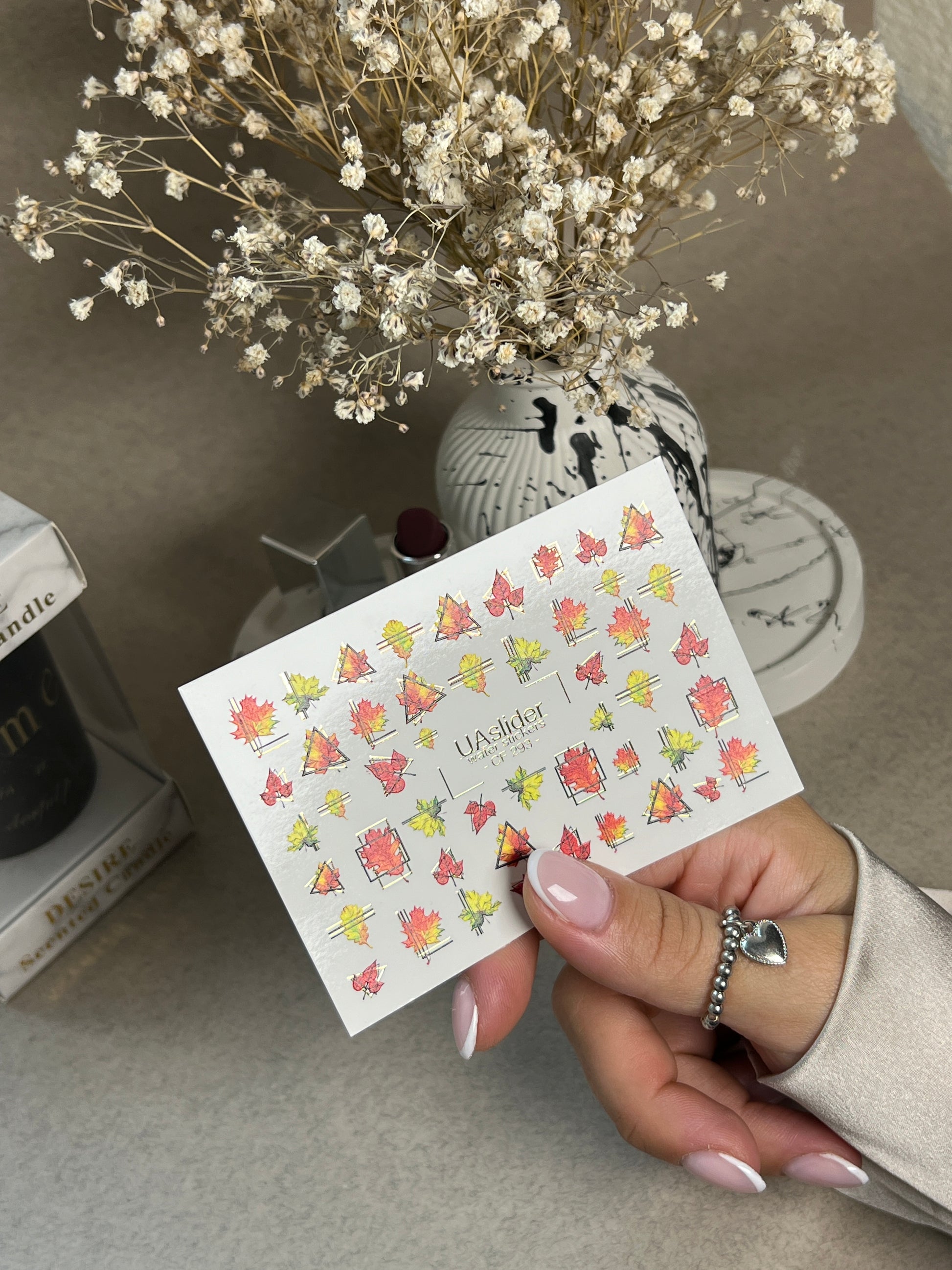 These Nail Water Decals are water-activated — simply soak to apply. Each design releases in water and slides off smoothly for an easy transfer. Cut out the chosen element before soaking. Warm water is preferable.