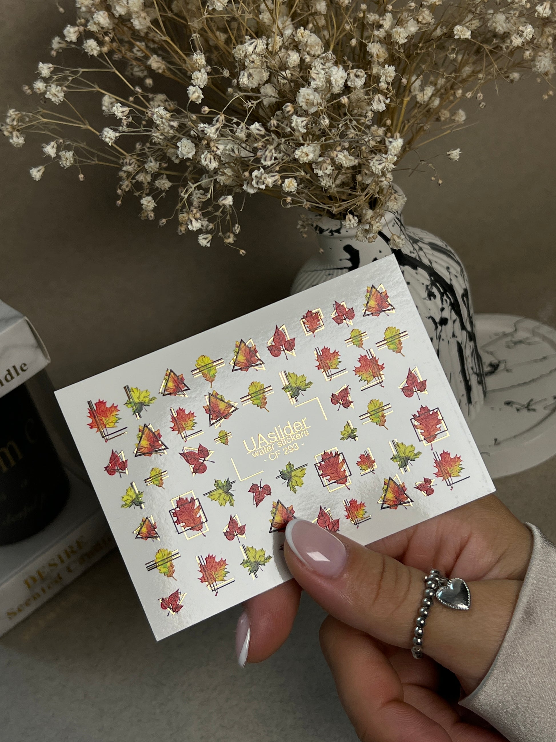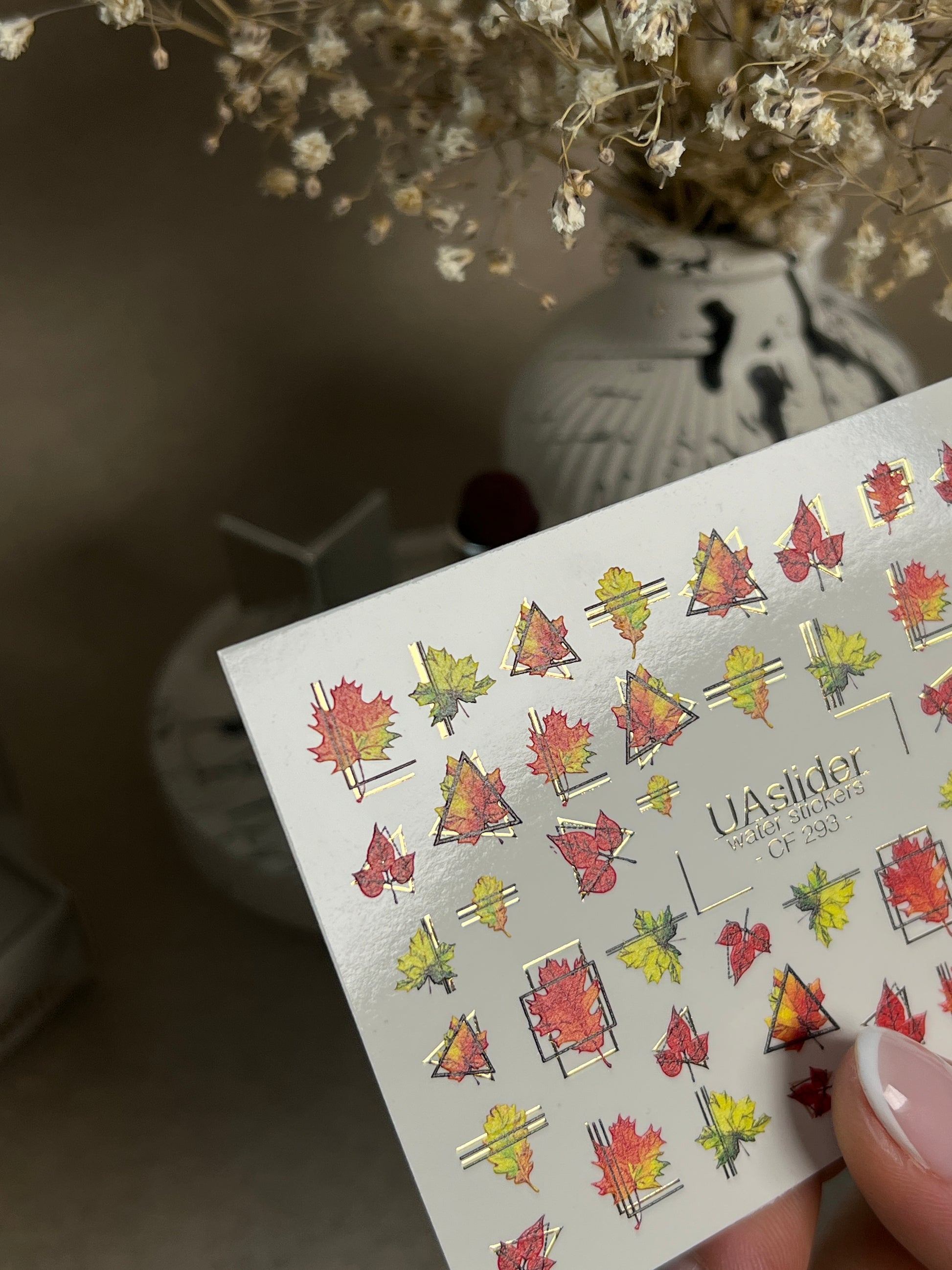 Nail Water Decal CF-293 | Autumn Water Slide Nail Decals | Fall Leaves & Geometric FramesCF_293
