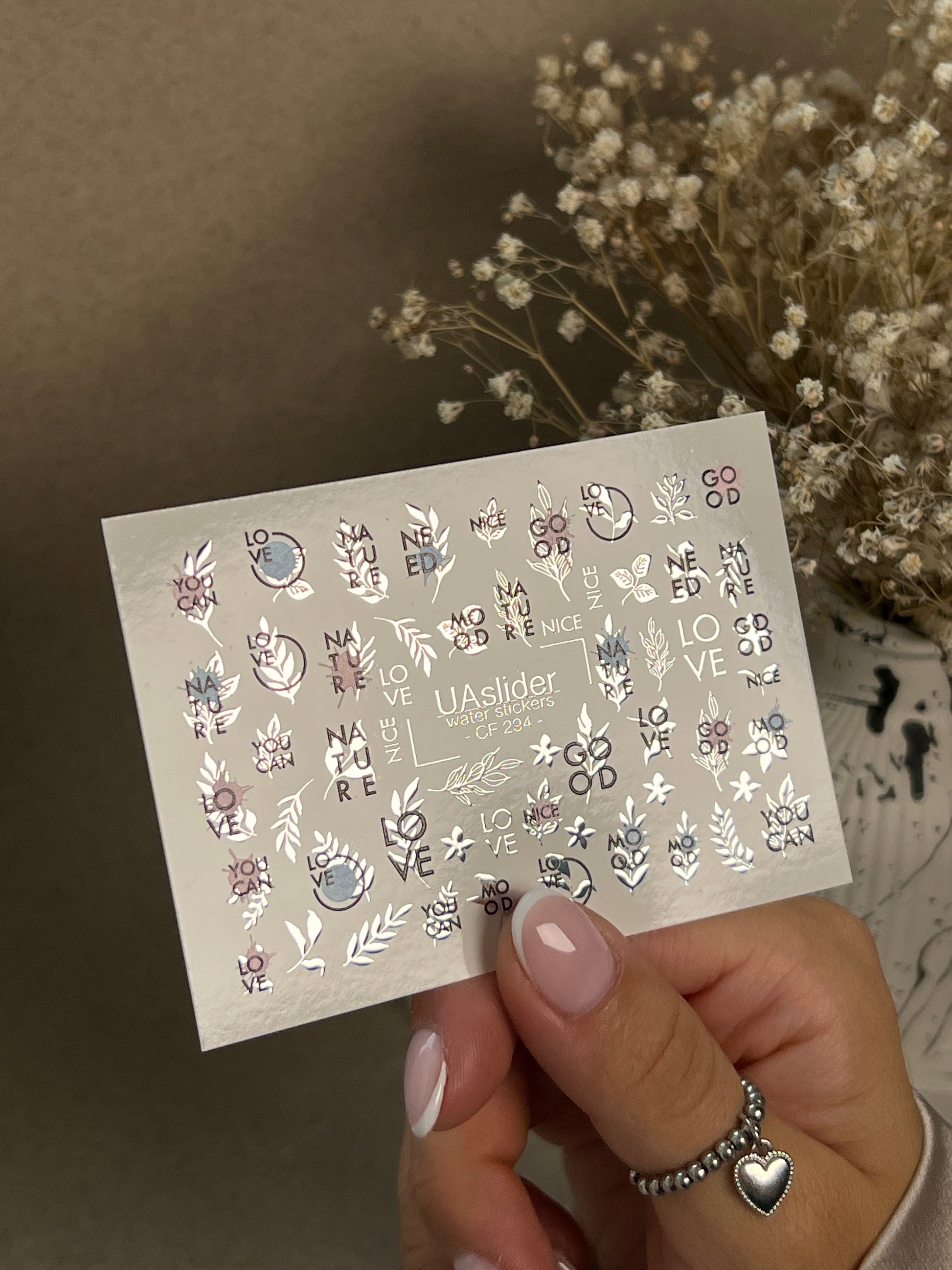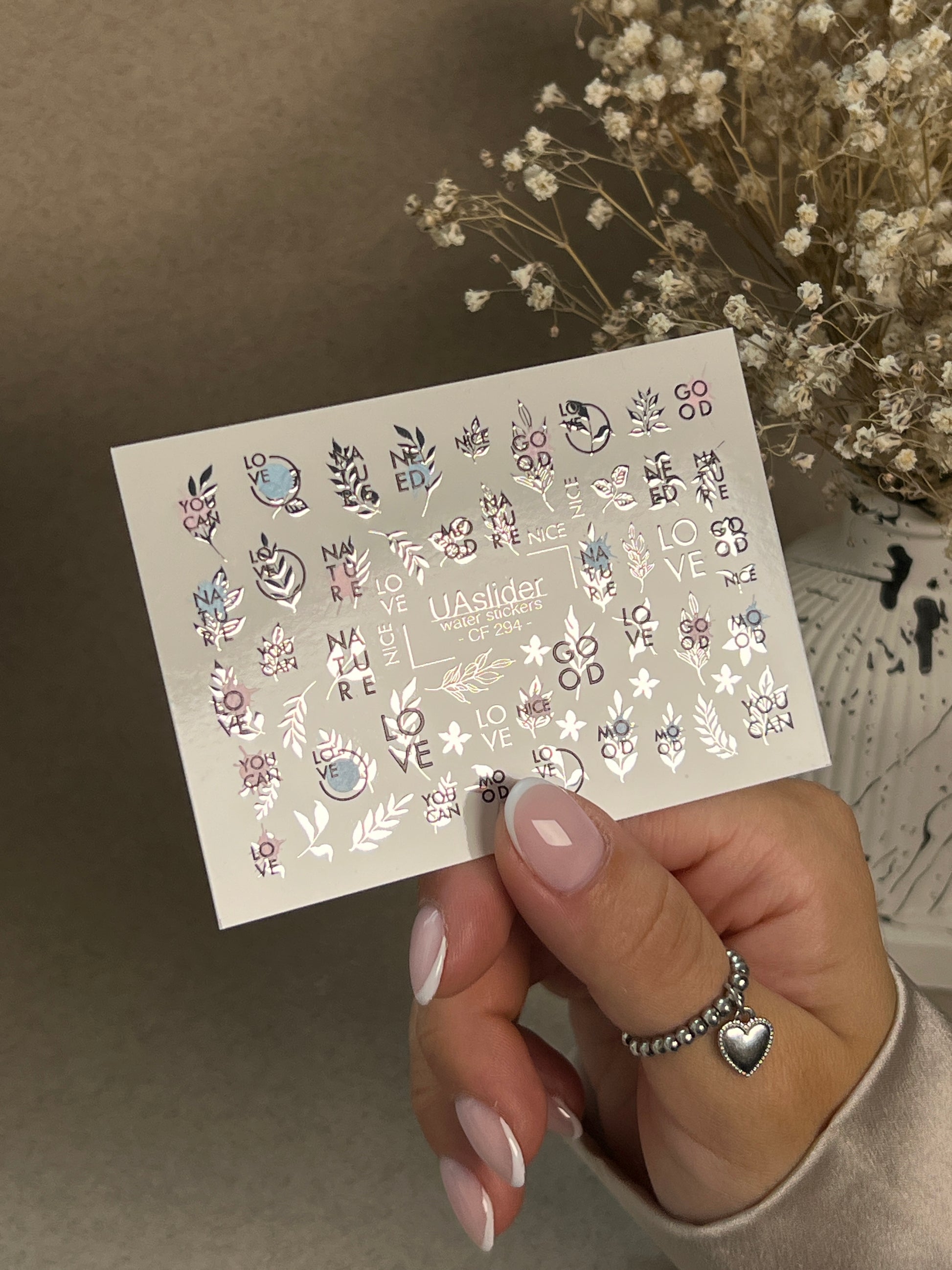 Nail Water Decal CF-294 | Minimalist Water Slide Nail Decals | Love, Nature & Quote Accents