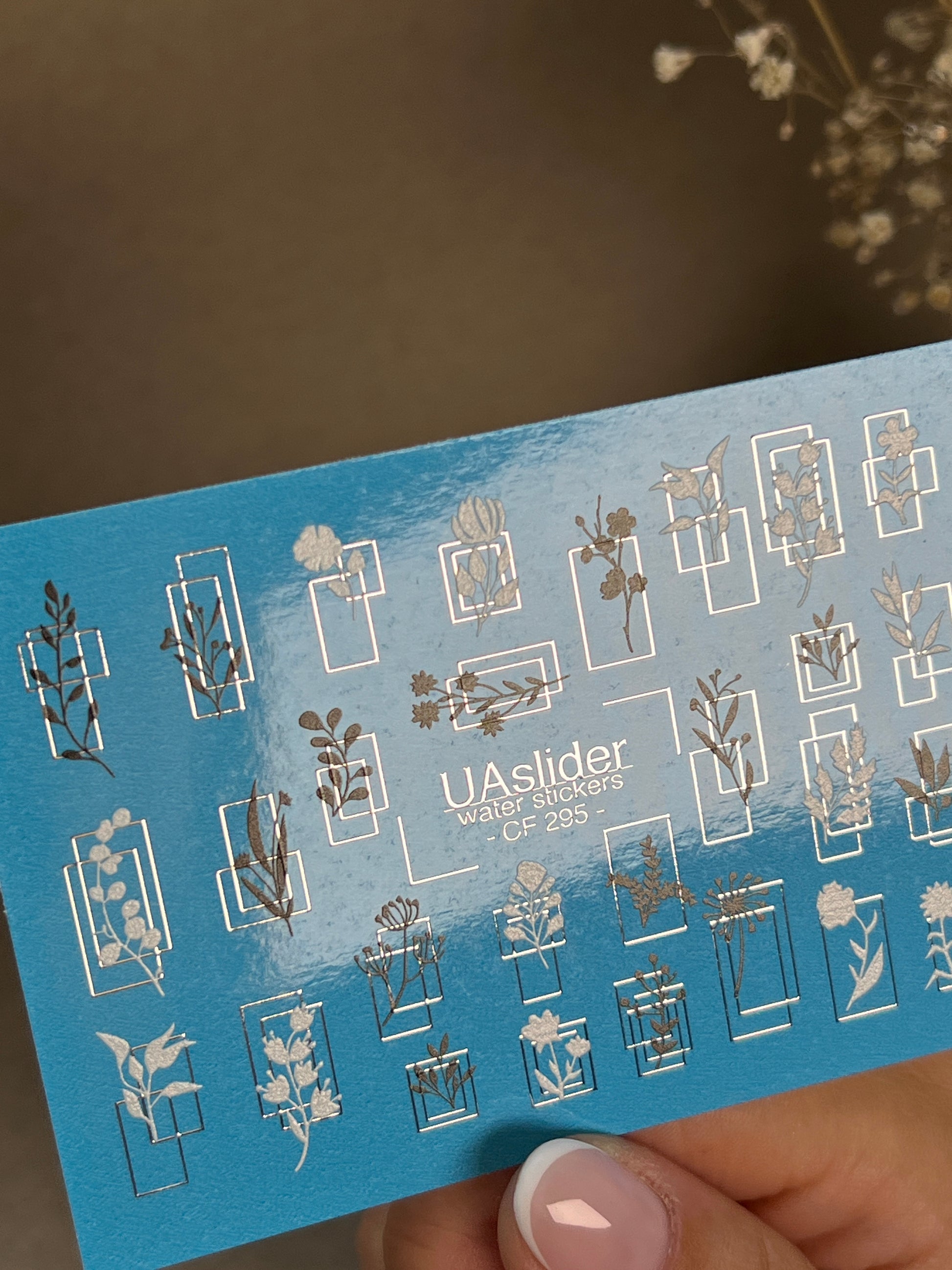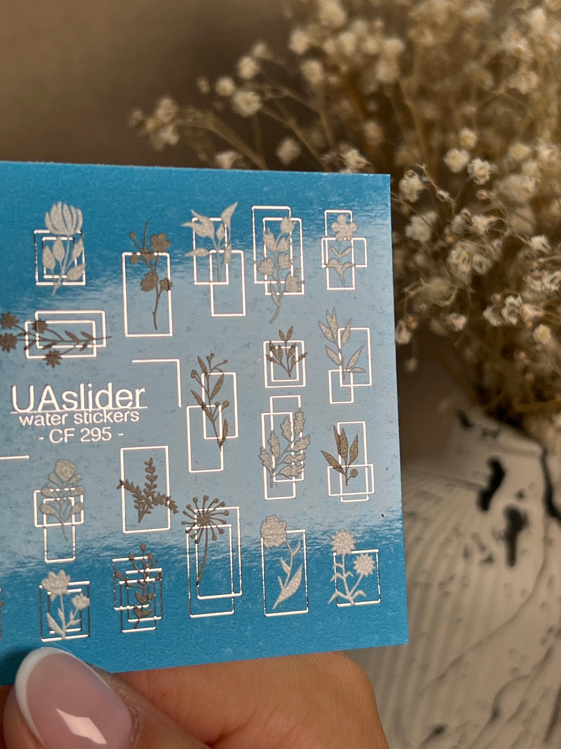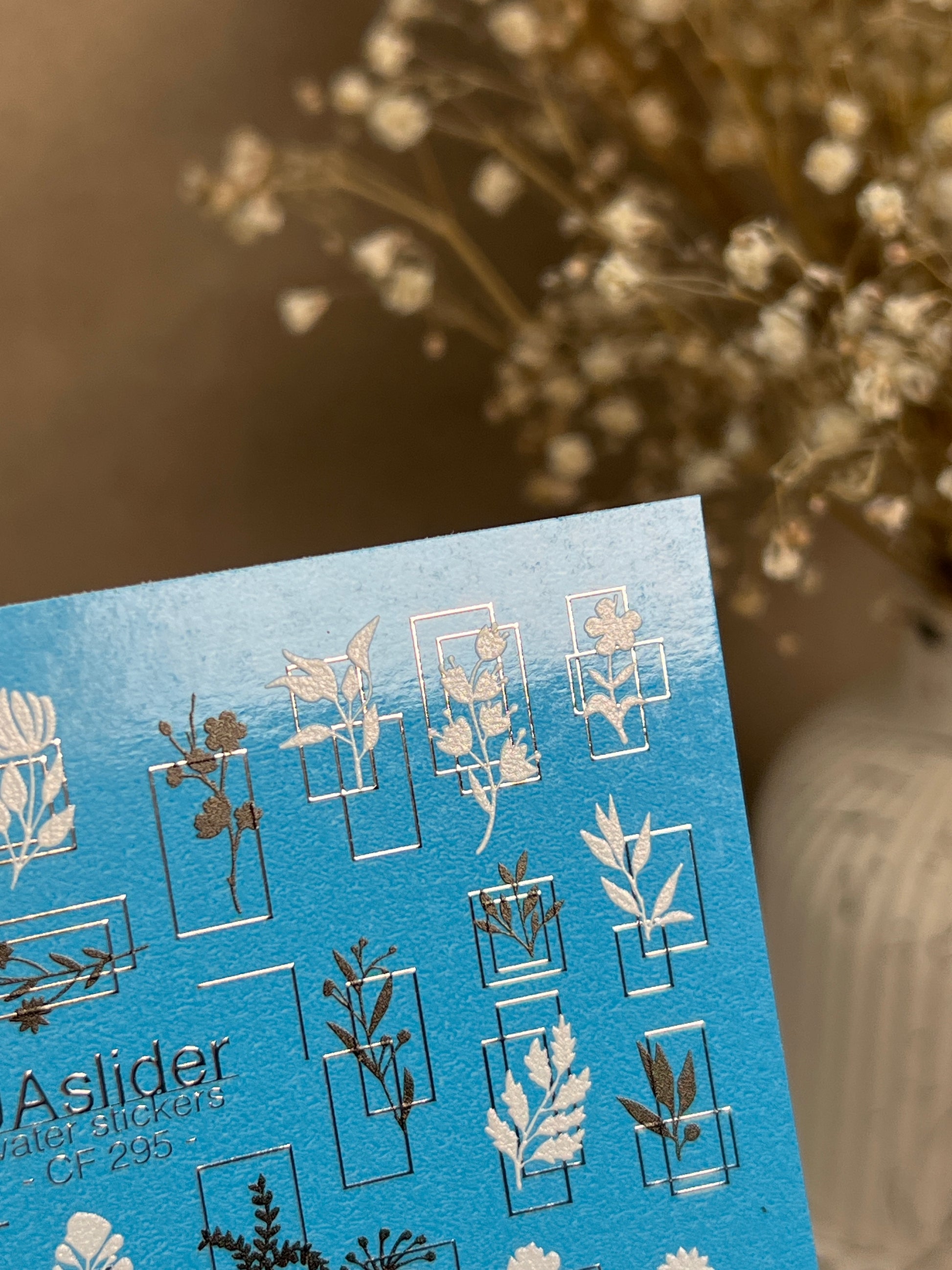 Nail Water Decal CF-295 | Minimalist Botanical Water Slide Nail Decals | Flowers & Geometric FramesCF_295