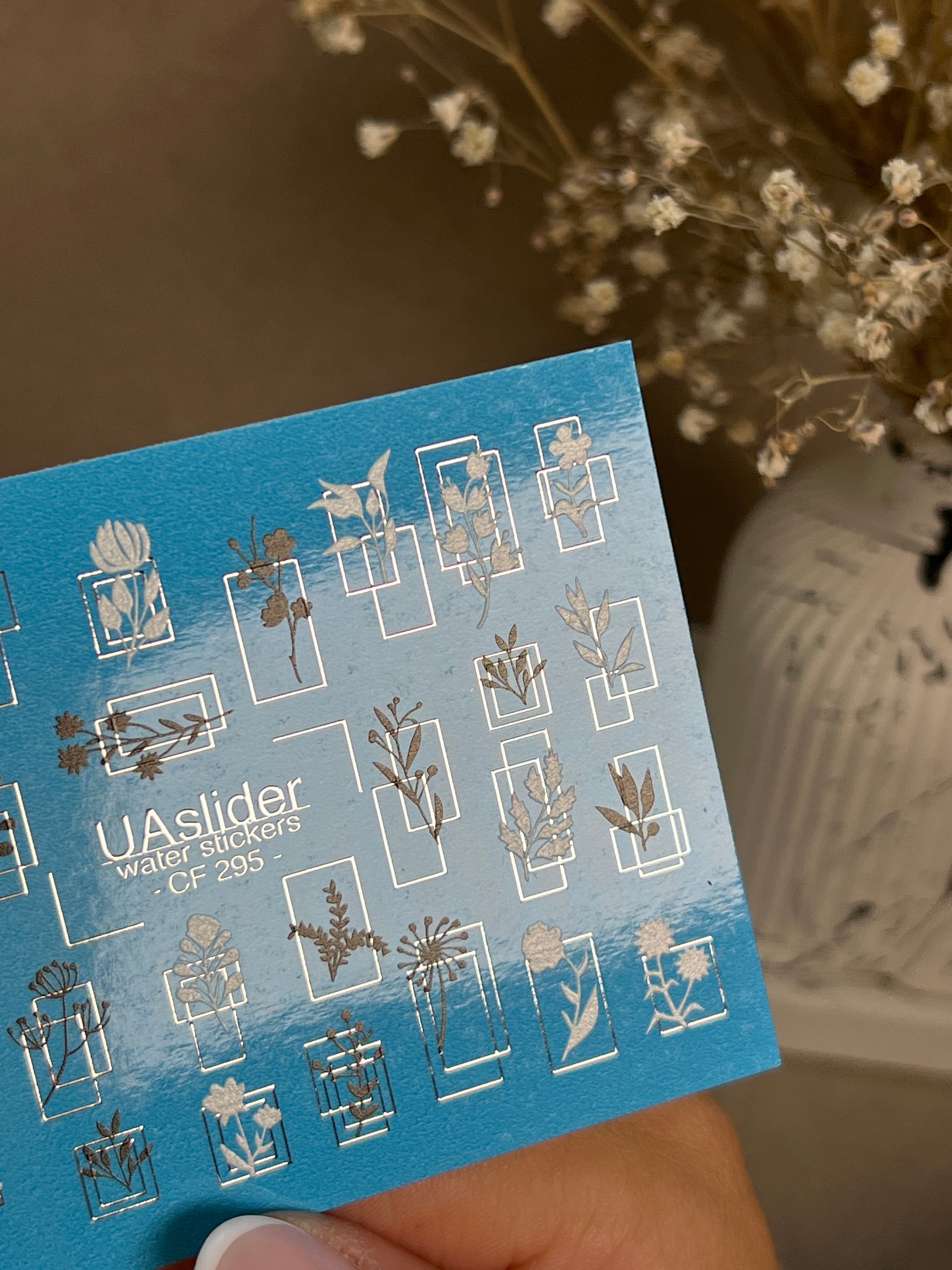 These Nail Water Decals are water-activated — simply soak to apply. Each element releases in water and slides off smoothly for precise placement. Cut out the chosen motif before soaking. Warm water is preferable.