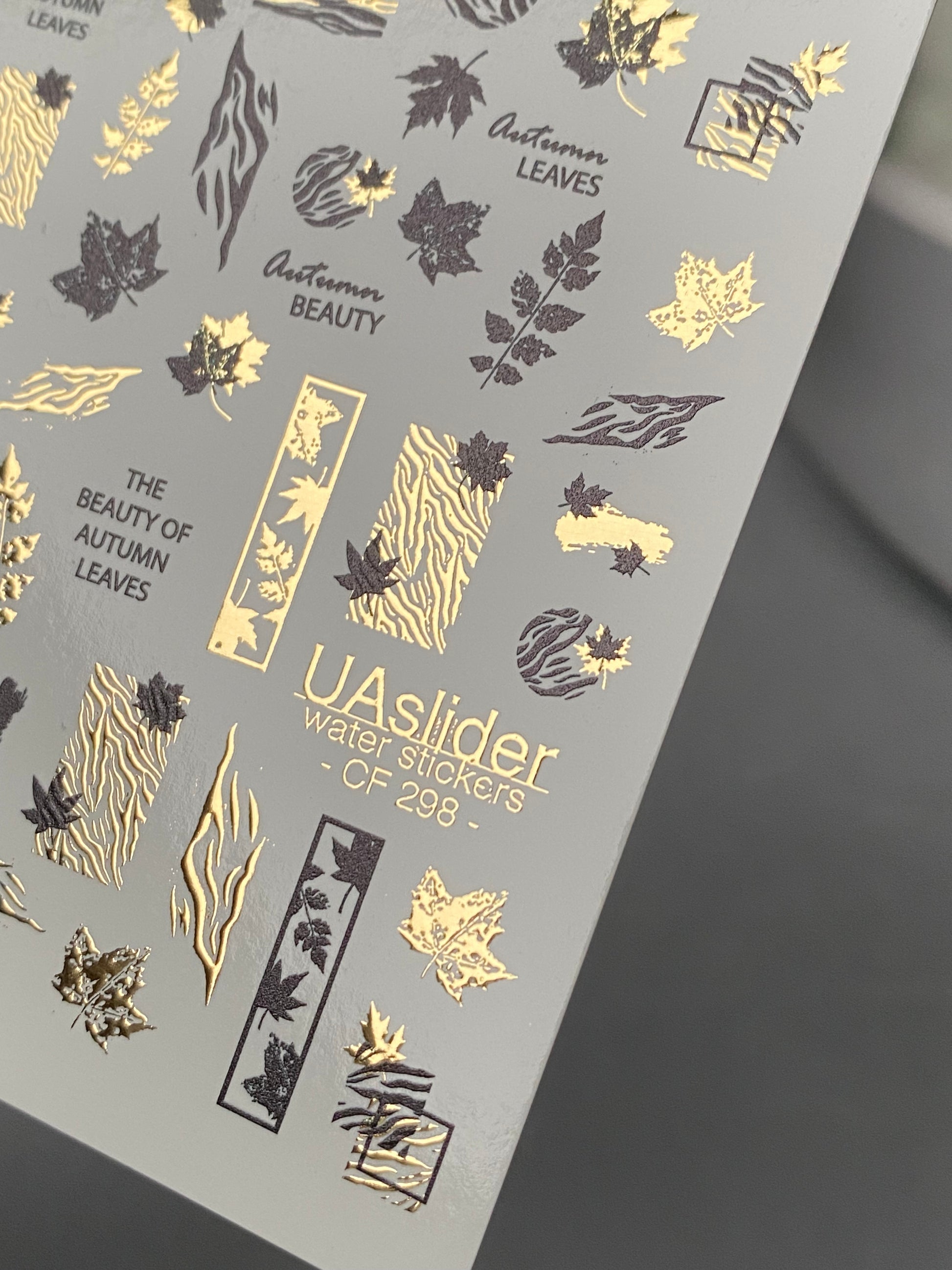 Nail Water Decal CF-298 | Autumn Water Slide Nail Decals | Leaves, Zebra Print & Gold Accents