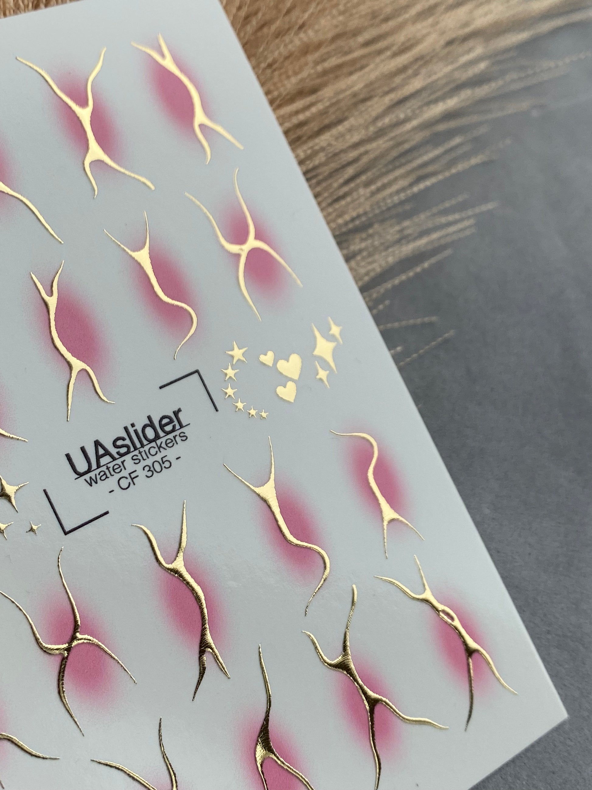 Nail Water Decal CF-305 | Abstract Gold Water Slide Nail Decals | Pink Shadows, Stars & Hearts