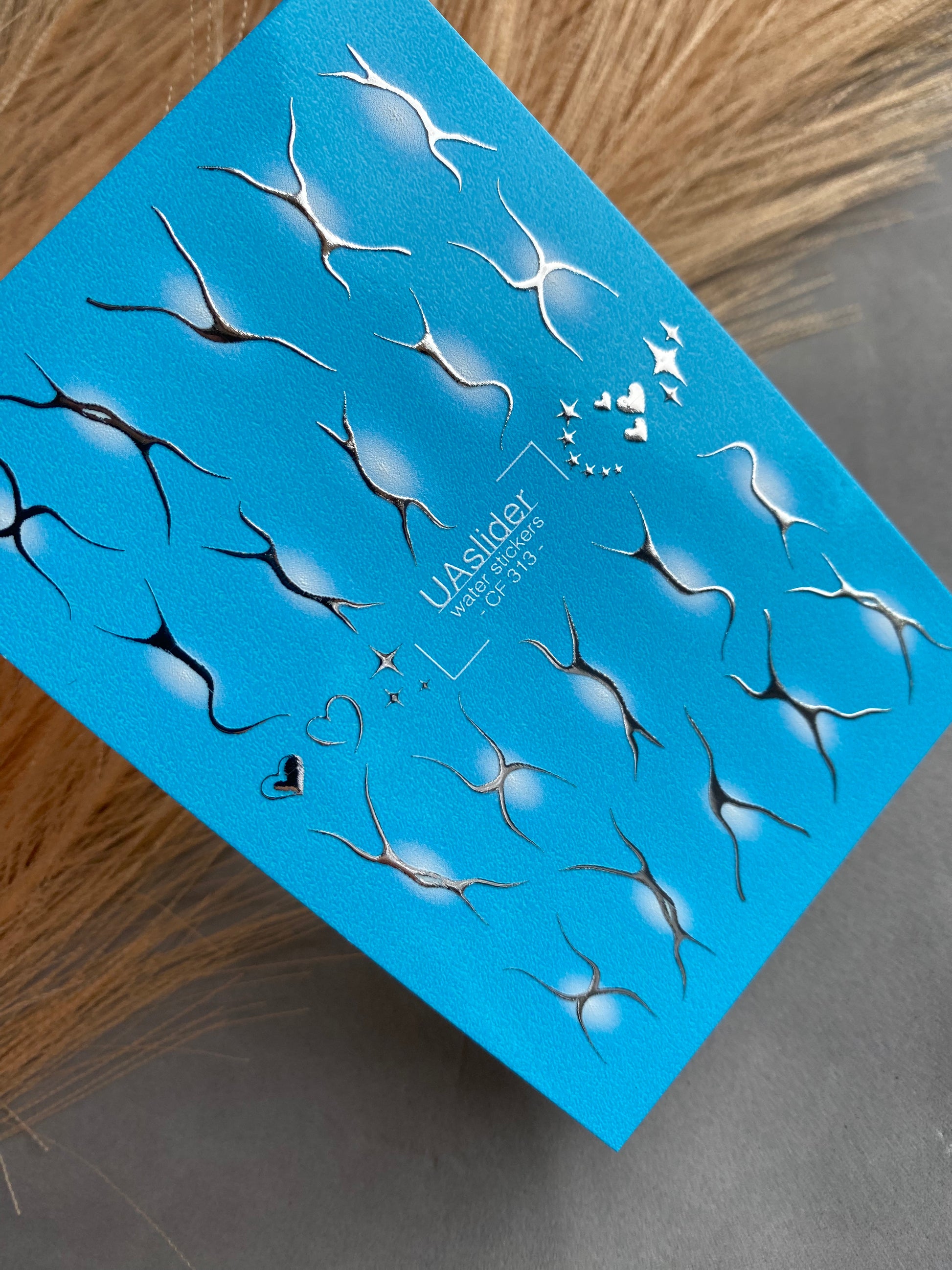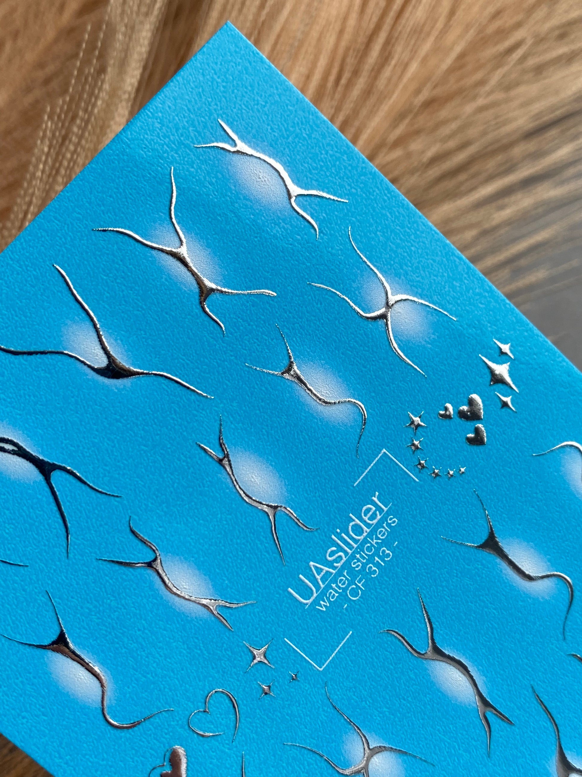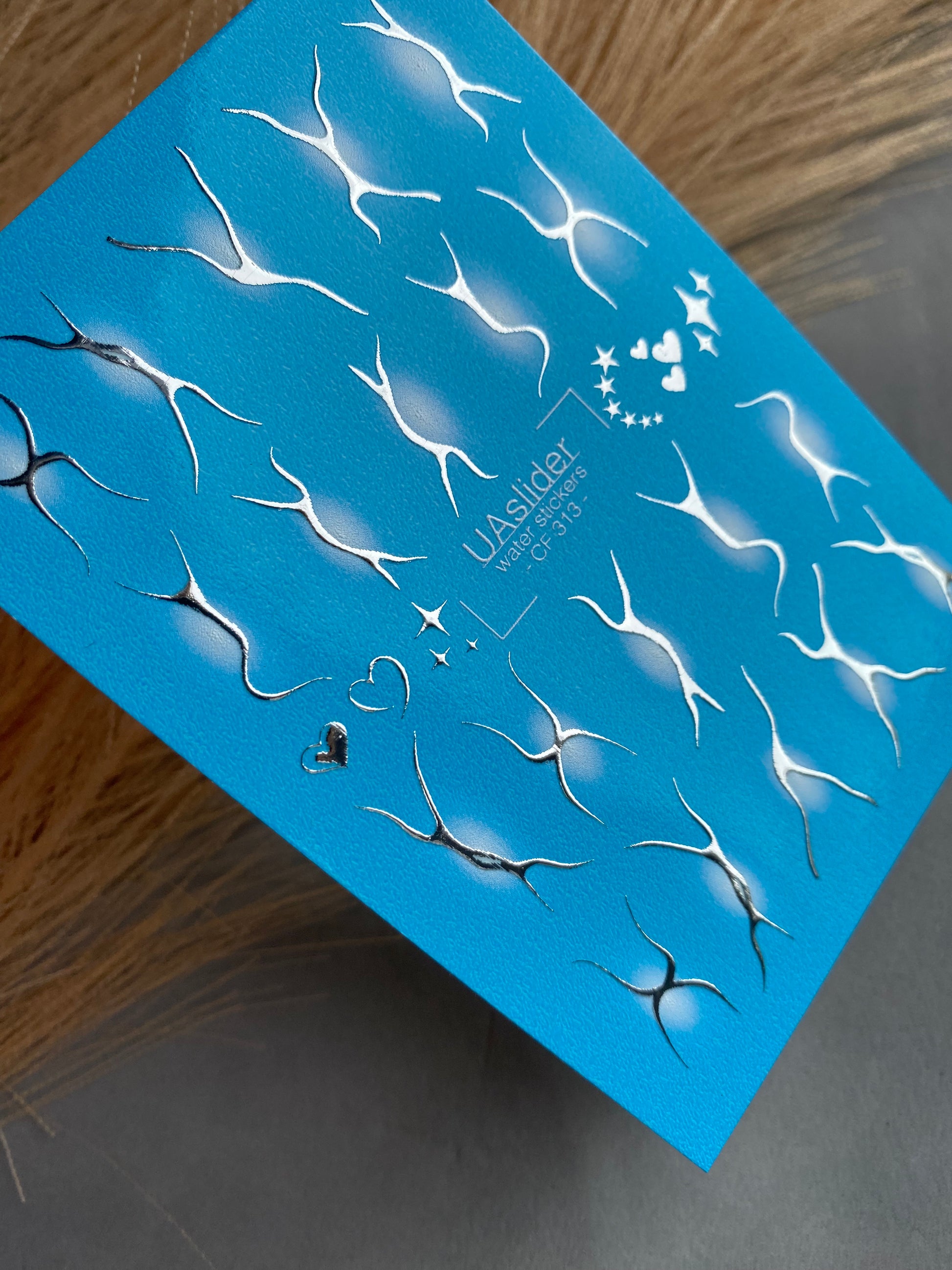 Nail Water Decal CF-313 | Abstract Silver Water Slide Nail Decals | White Glow, Hearts & StarsCF_313