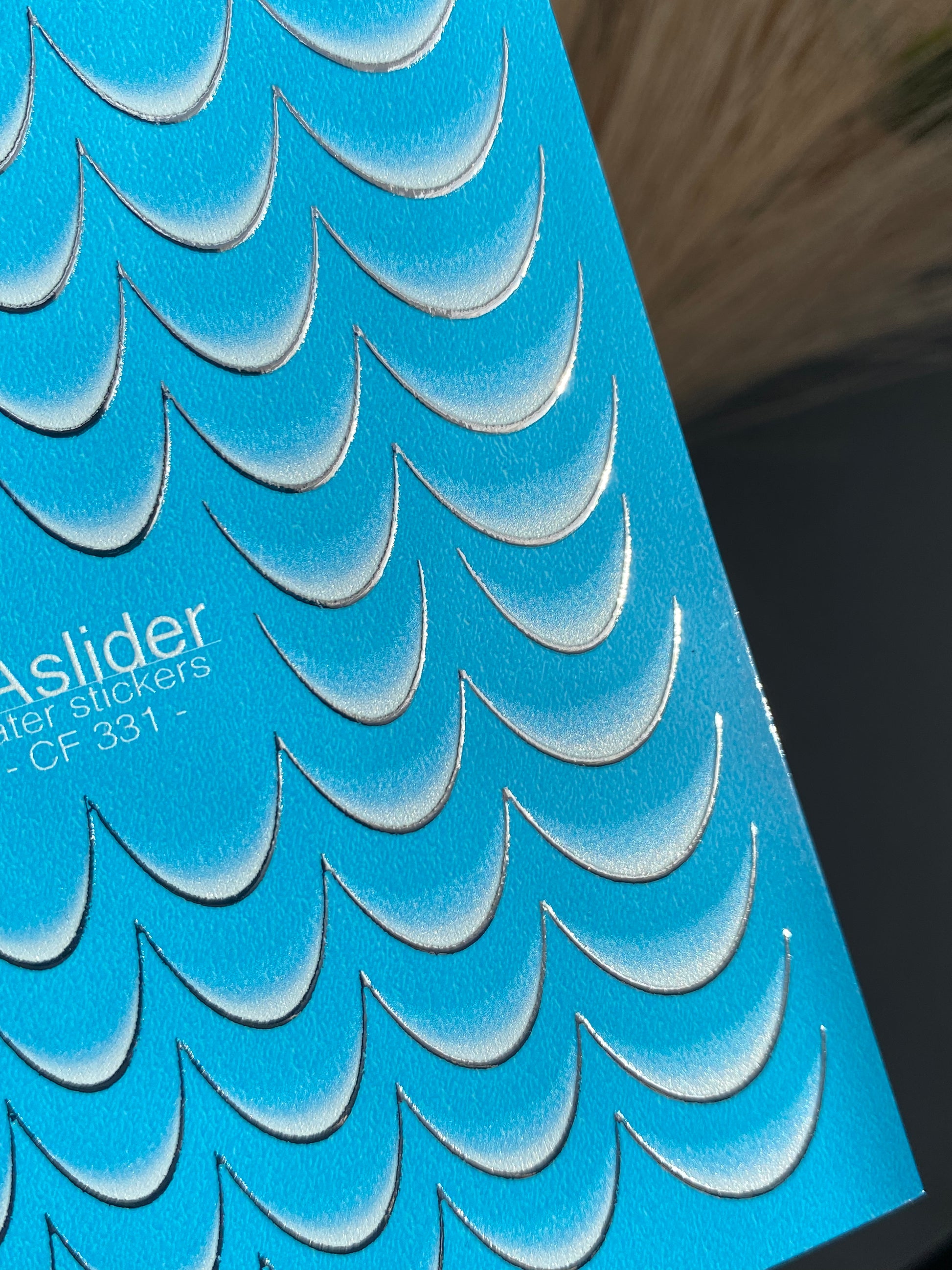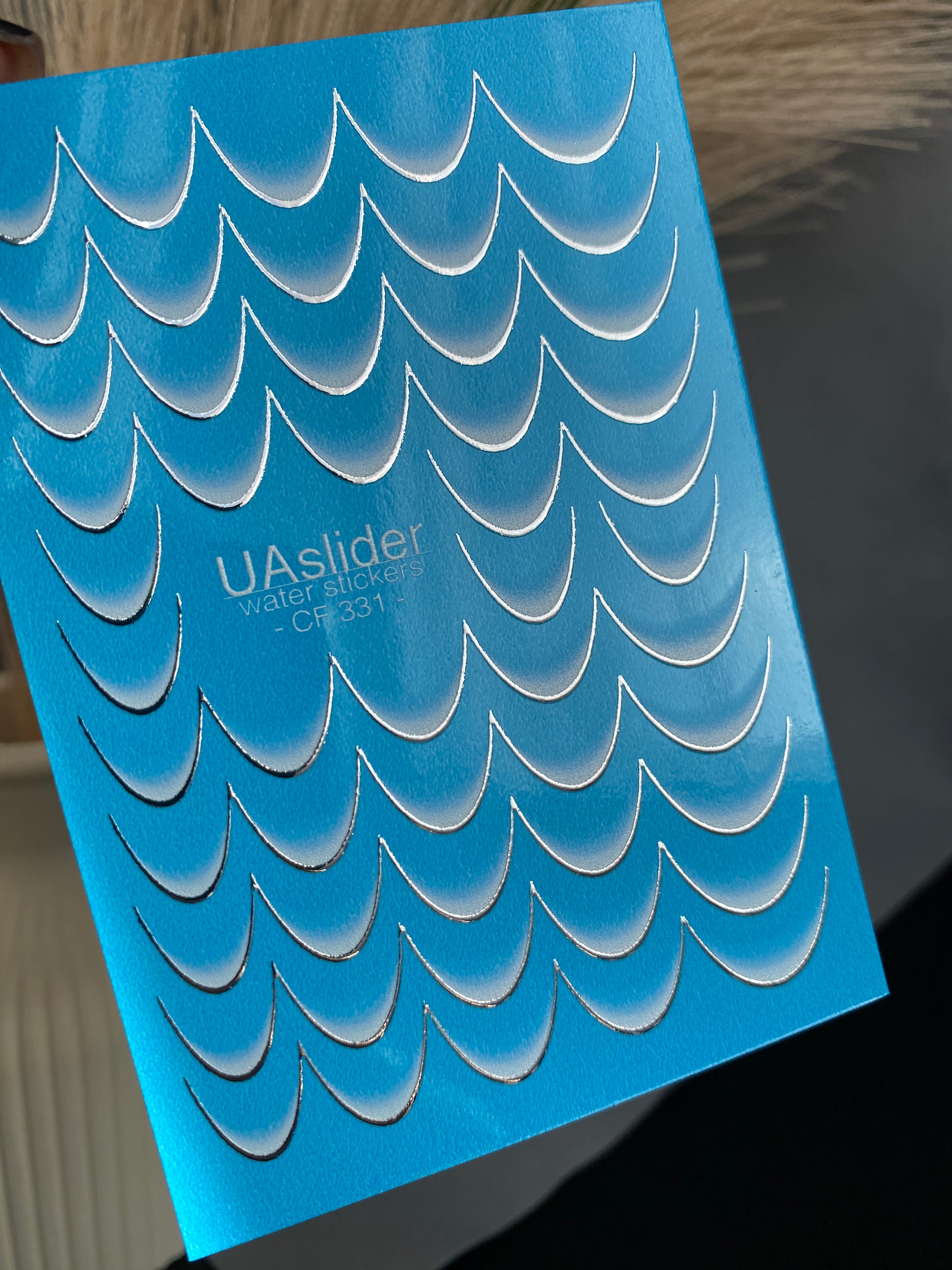 Classic French water slide nail decals with a soft white gradient and elegant silver outlines. Perfect for timeless French manicures with a refined, salon-quality finish.