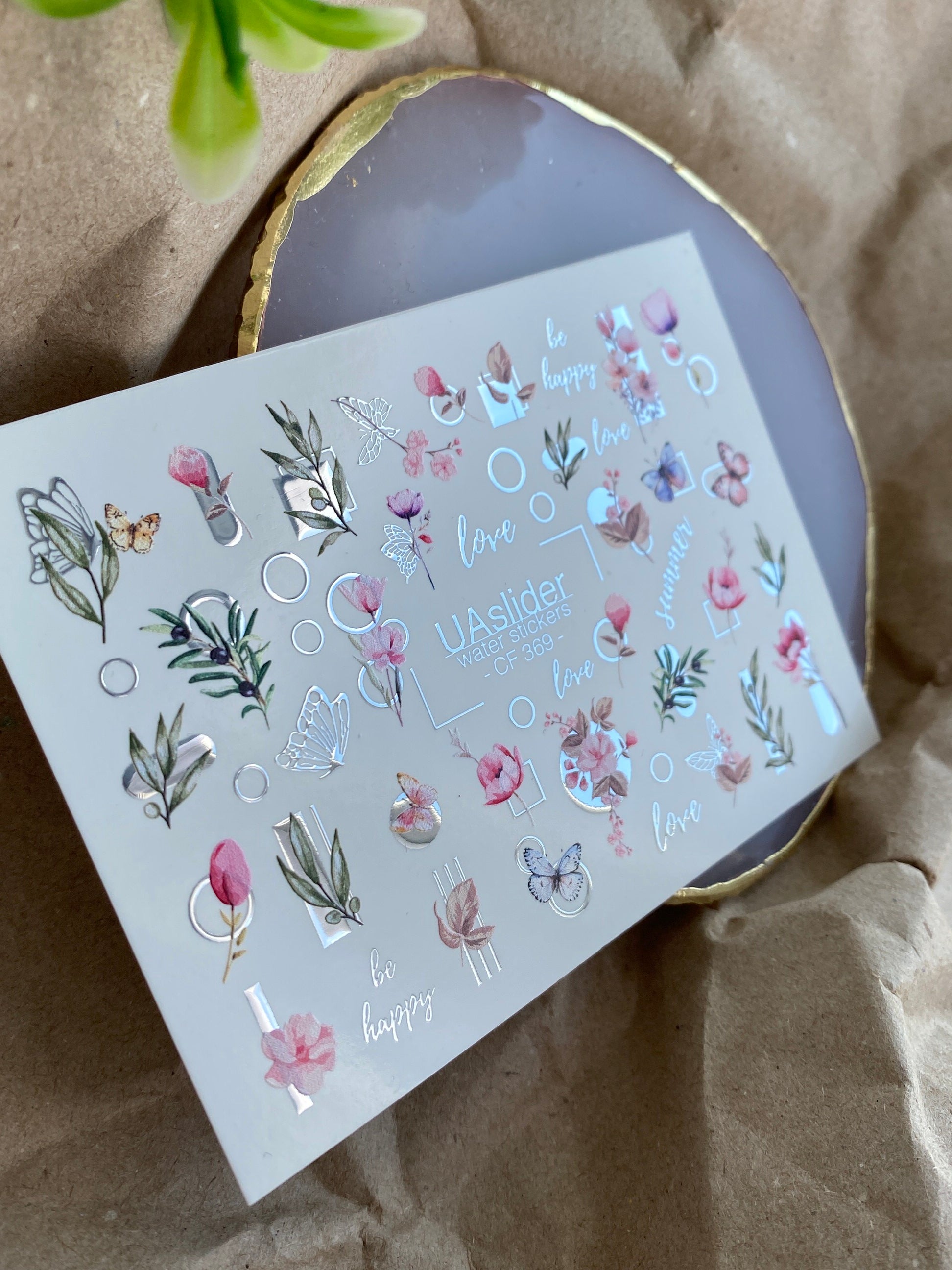 Nail Water Decal CF-369 | Water Slide Nail Decals | Flowers, Butterflies & Geometric Designs | Love & Be Happy QuotesCF_369