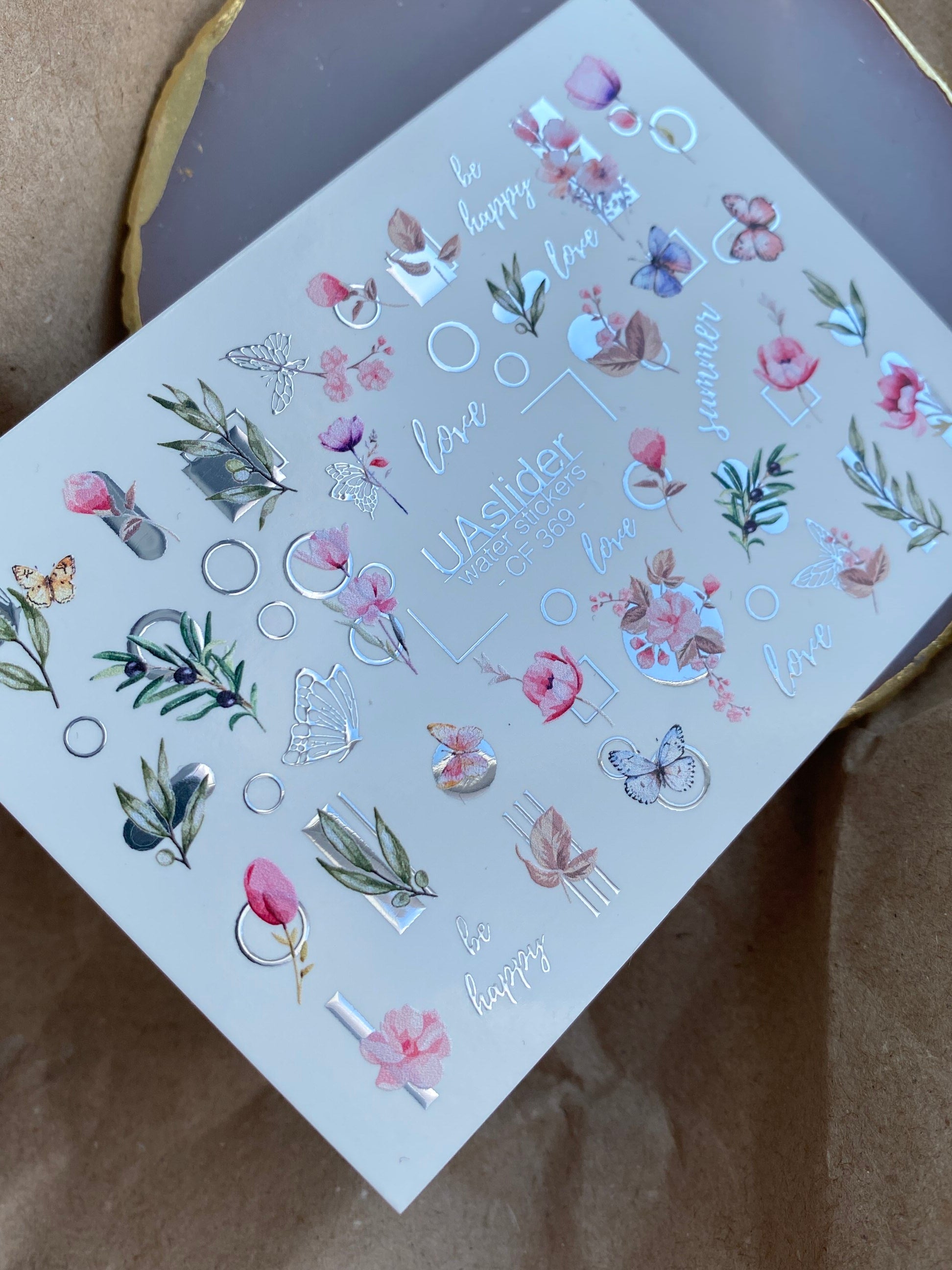 Nail Water Decal CF-369 | Water Slide Nail Decals | Flowers, Butterflies & Geometric Designs | Love & Be Happy Quotes