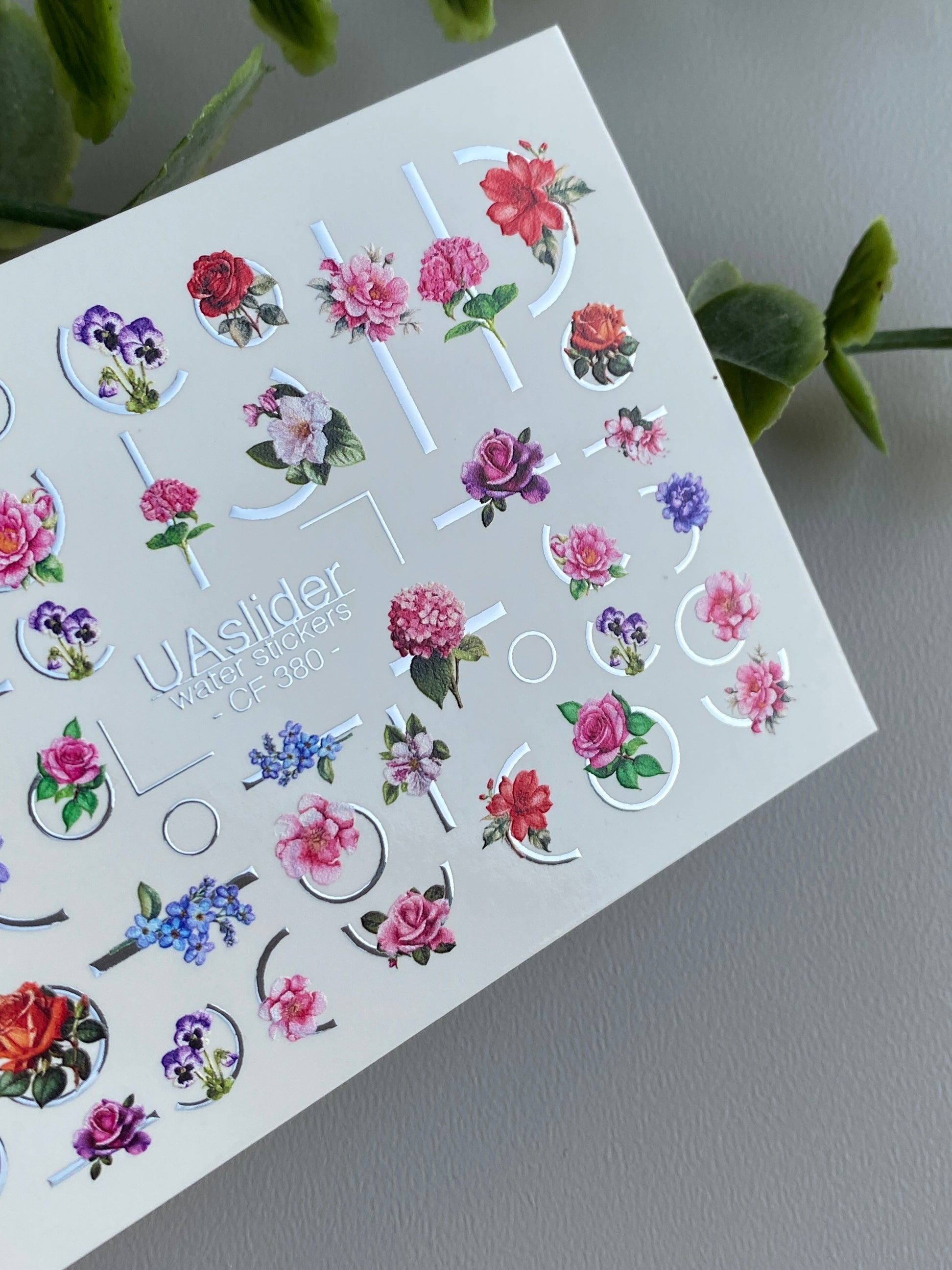 Nail Water Decal CF-380 | Rose Water Slide Nail Decals | Floral Designs with Geometric Accents