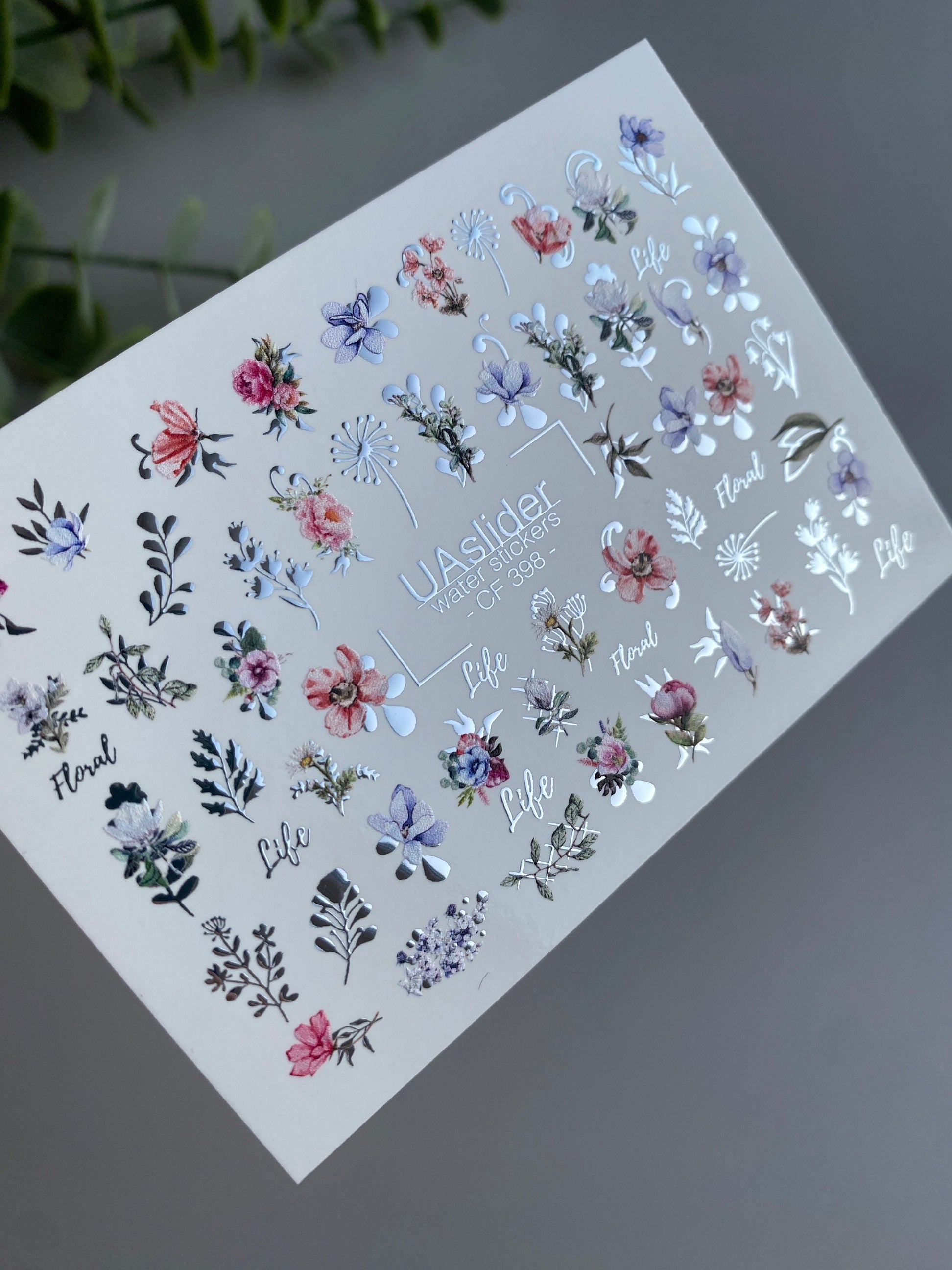 Nail Water Decal CF-398 | Colorful Floral Water Slide Nail Decals | Botanical Flowers and LetteringCF_398